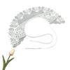 1 px de organza blanca bordada con flores onduladas, delicado chal de encaje, doble cuello falso informal