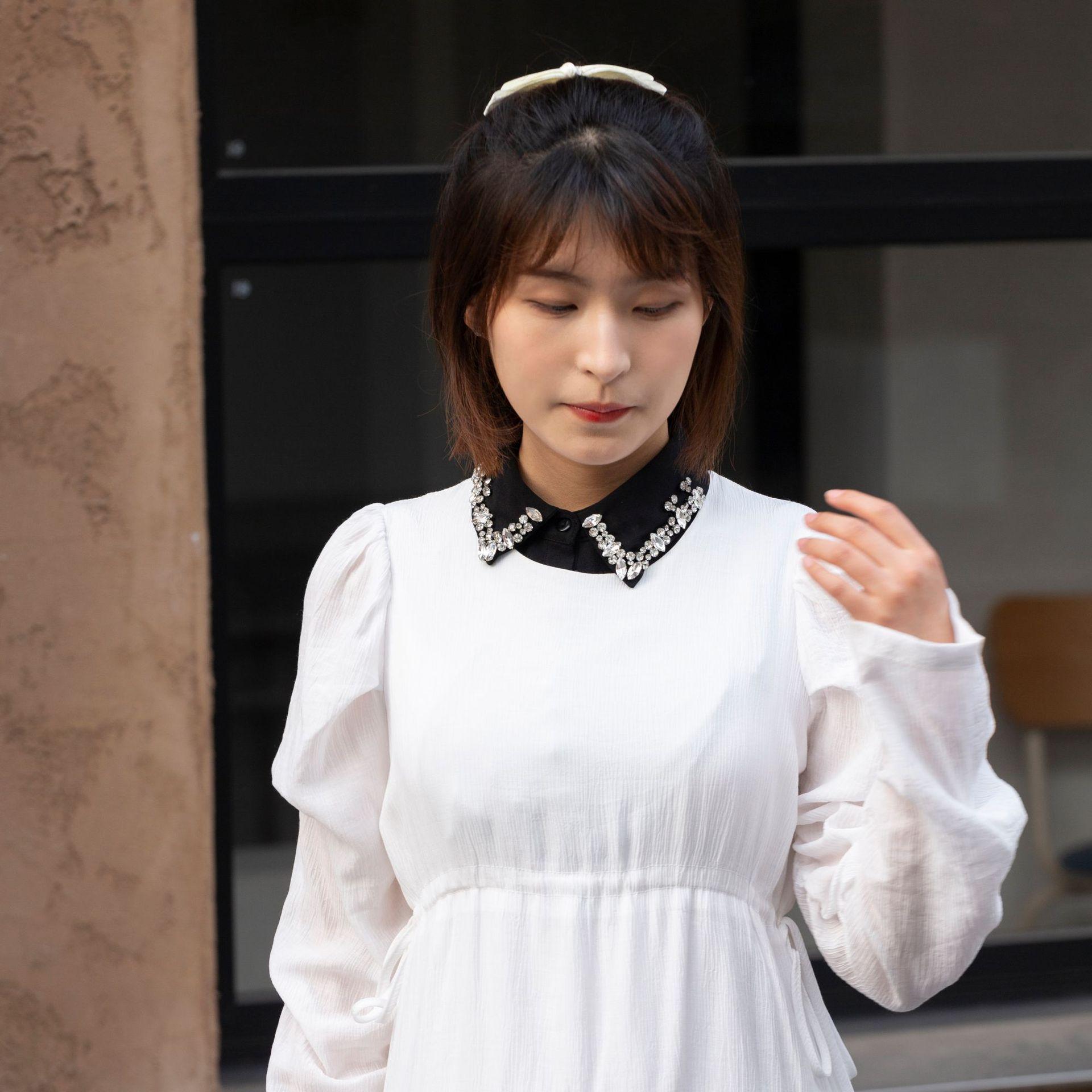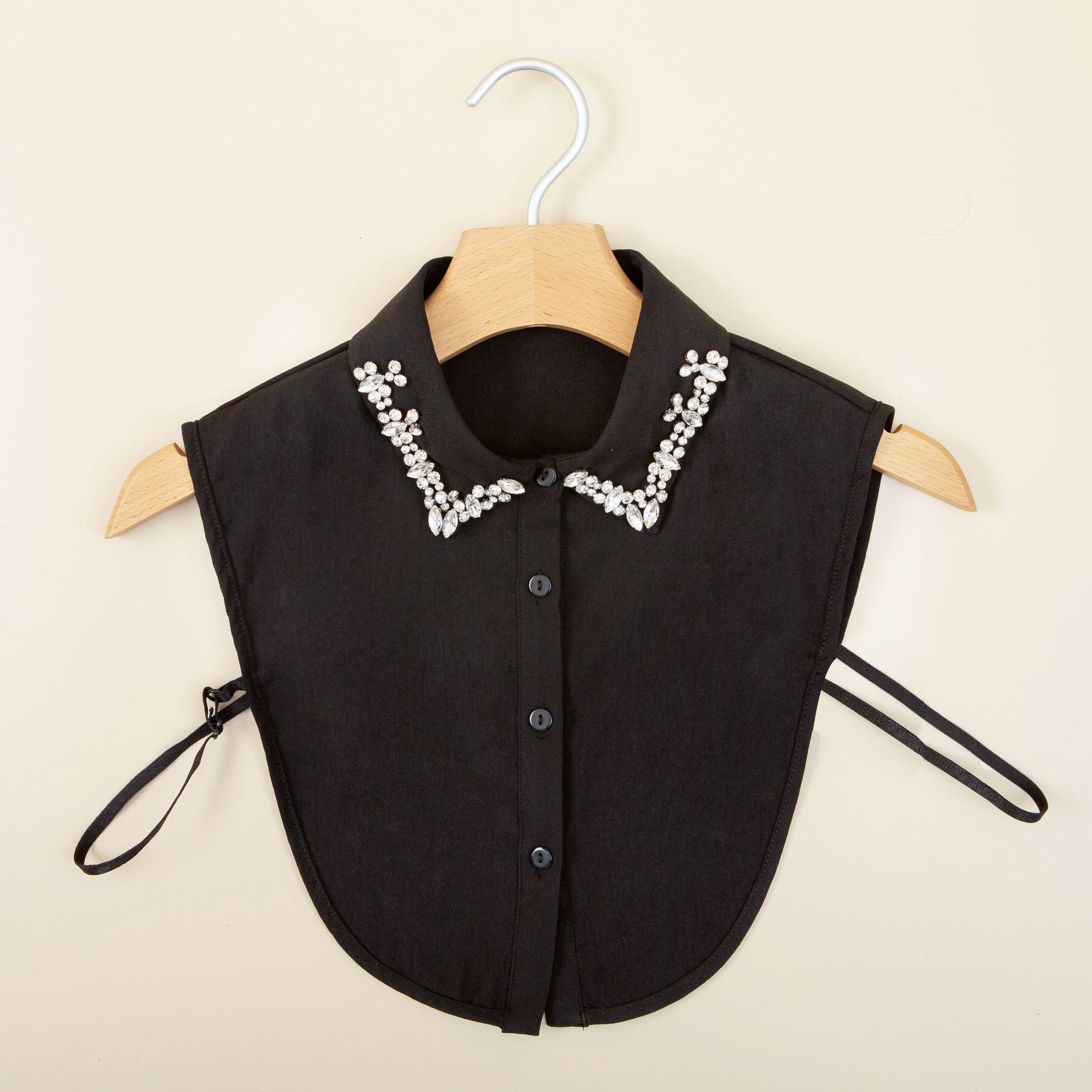 Boutique Otoño e Invierno Popular Estilo Coreano Diamante de Cristal Moda Ropa de Mujer Versátil Cuello Falso Camisa de Media Manga Cuello Falso para Mujer
