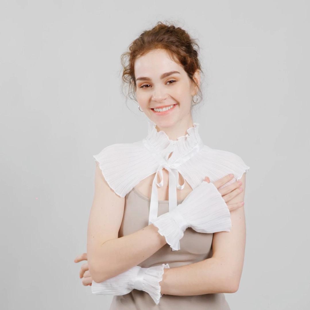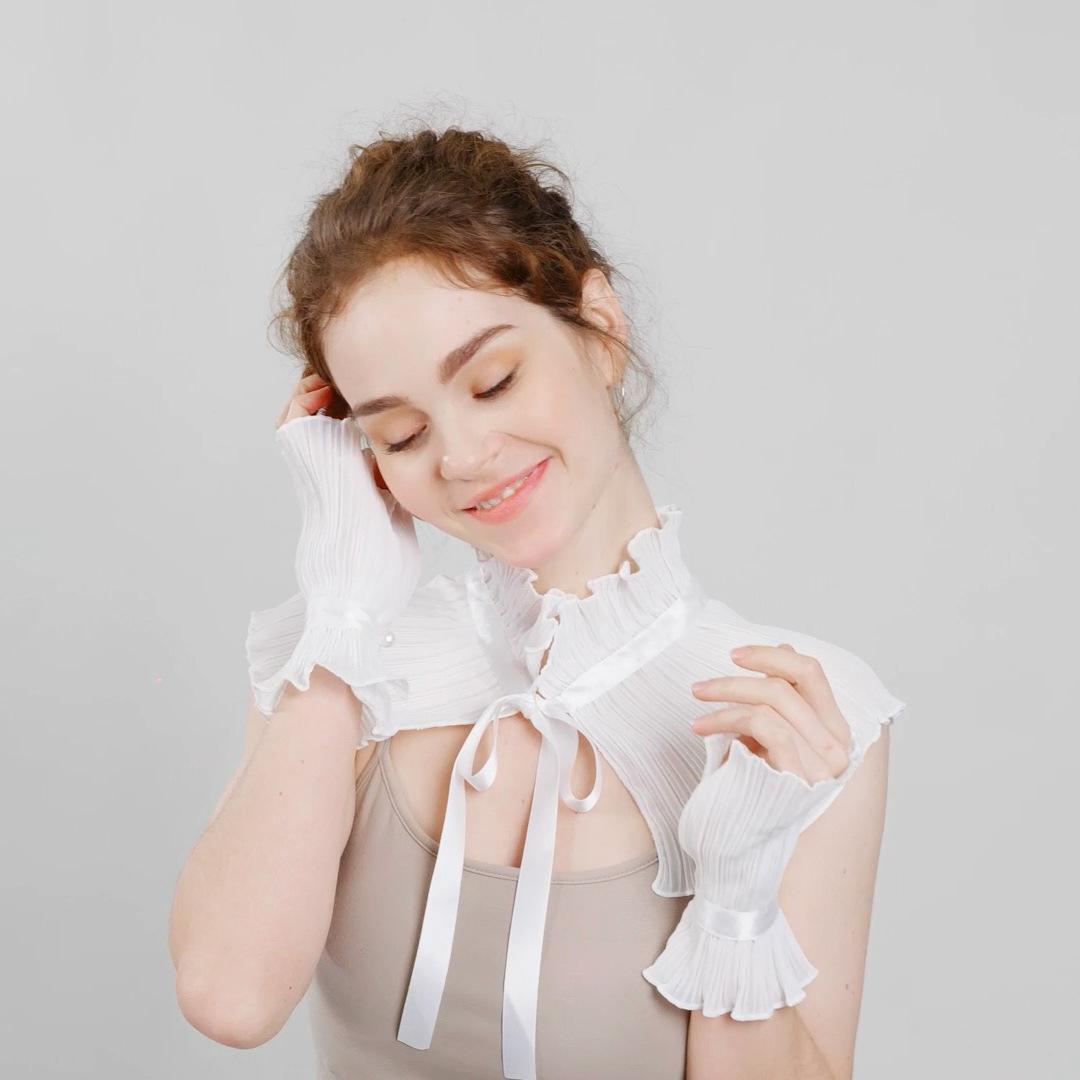 Estilo Francés Simple Blanco Plisado Boutique Costuras Romántico Chal Exterior