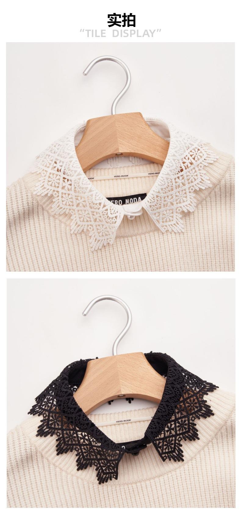 Cuello falso al por mayor, otoño e invierno, nuevo, soluble en agua, patrón hueco, negro, para dama, encaje de pestañas, cuello de solapa versátil