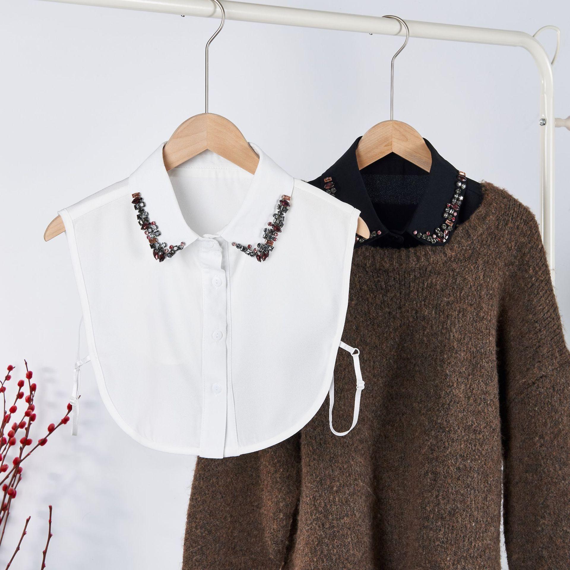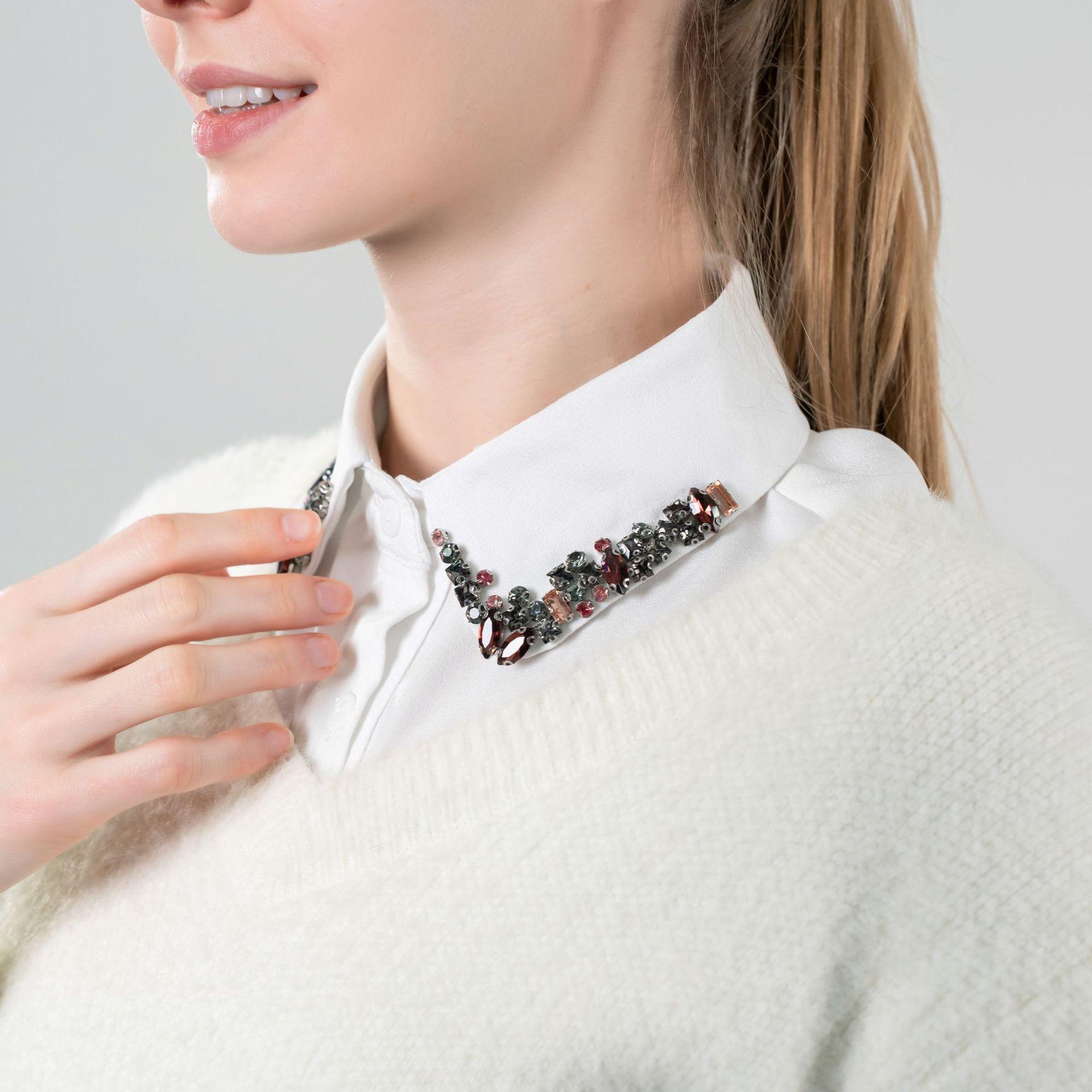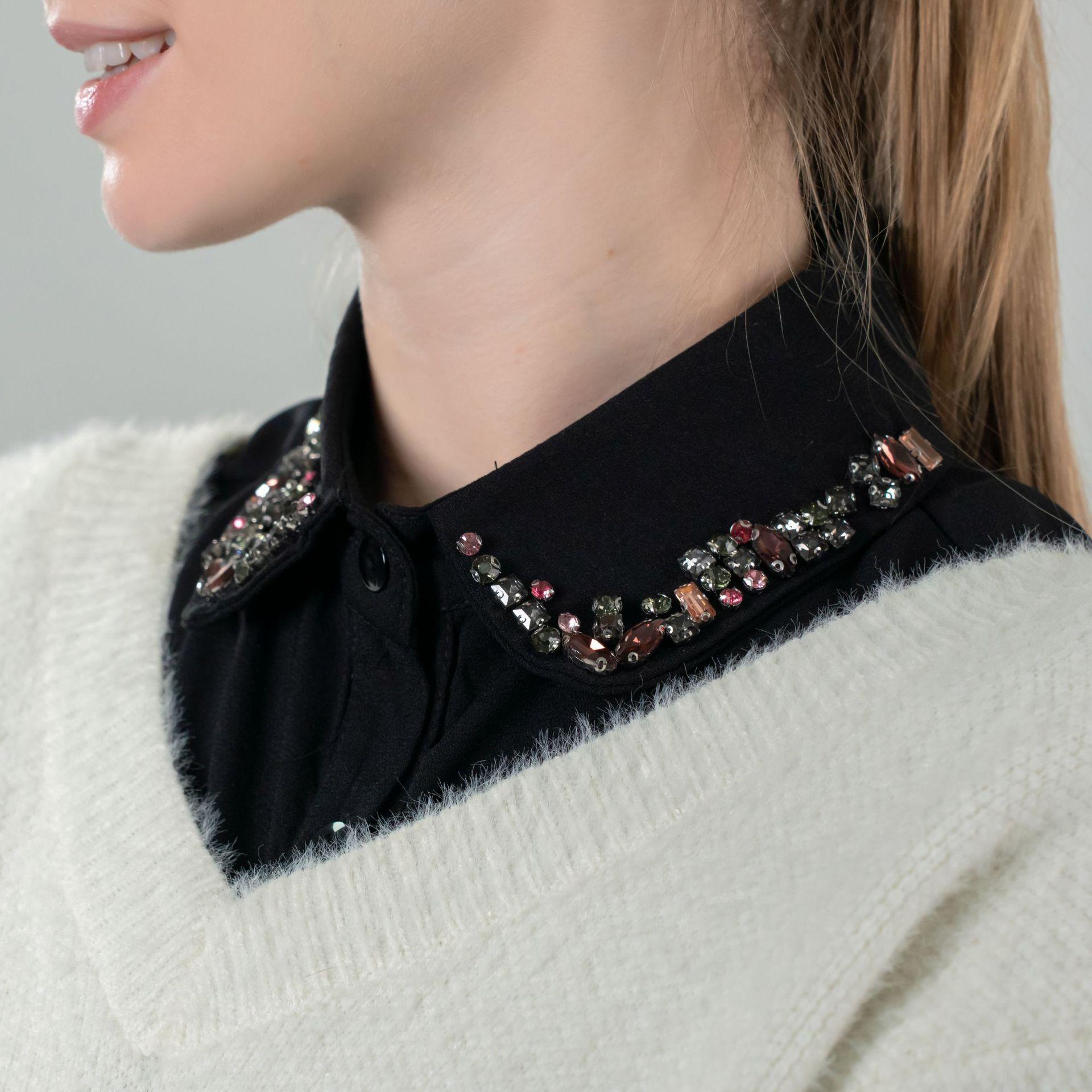 Tejido de Gasa de Alta Gama Colorido Diamante de Cristal Cuello Falso Tendencia Europea y Americana Elegante Cuello Puntiagudo para Mujer