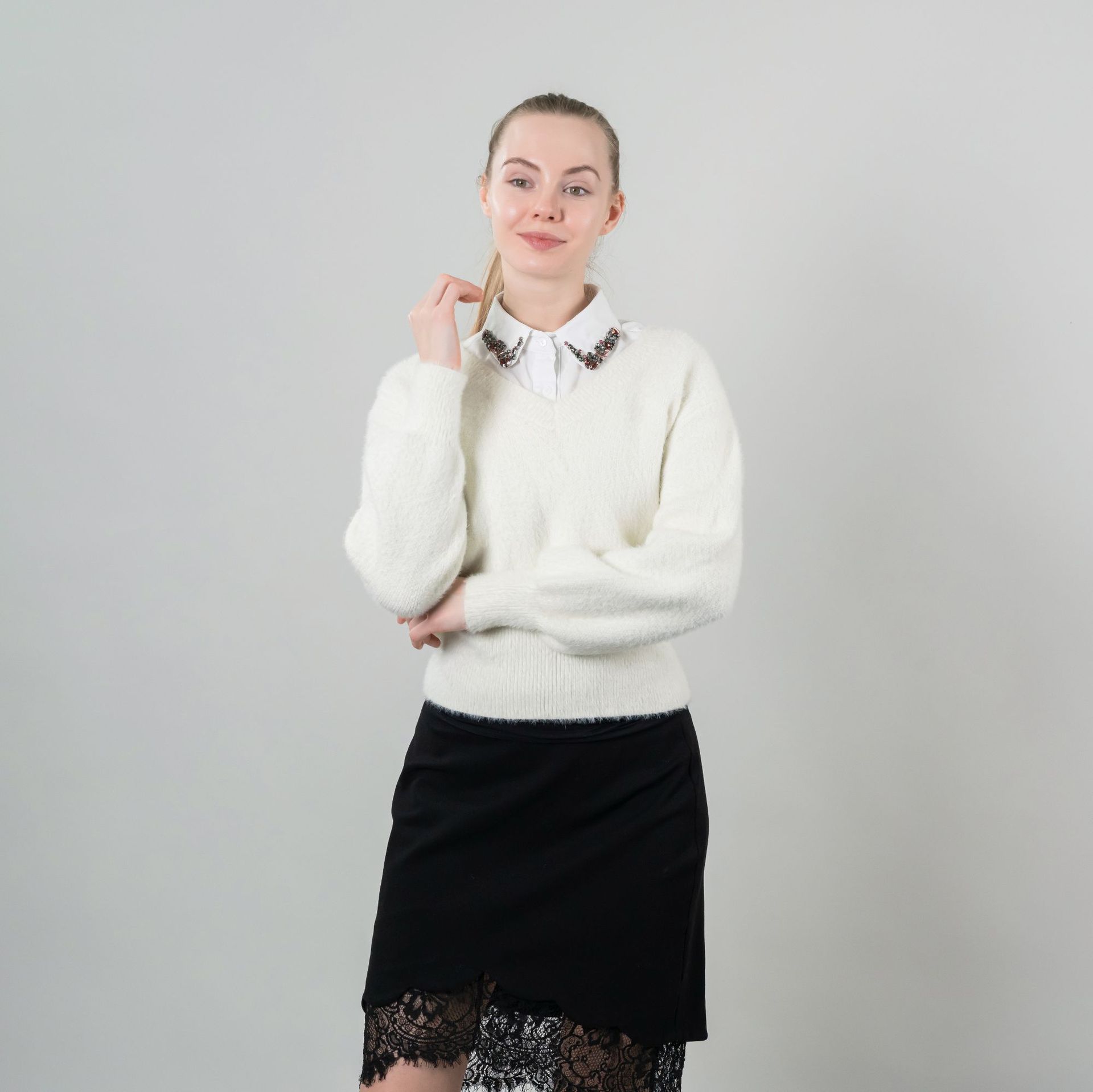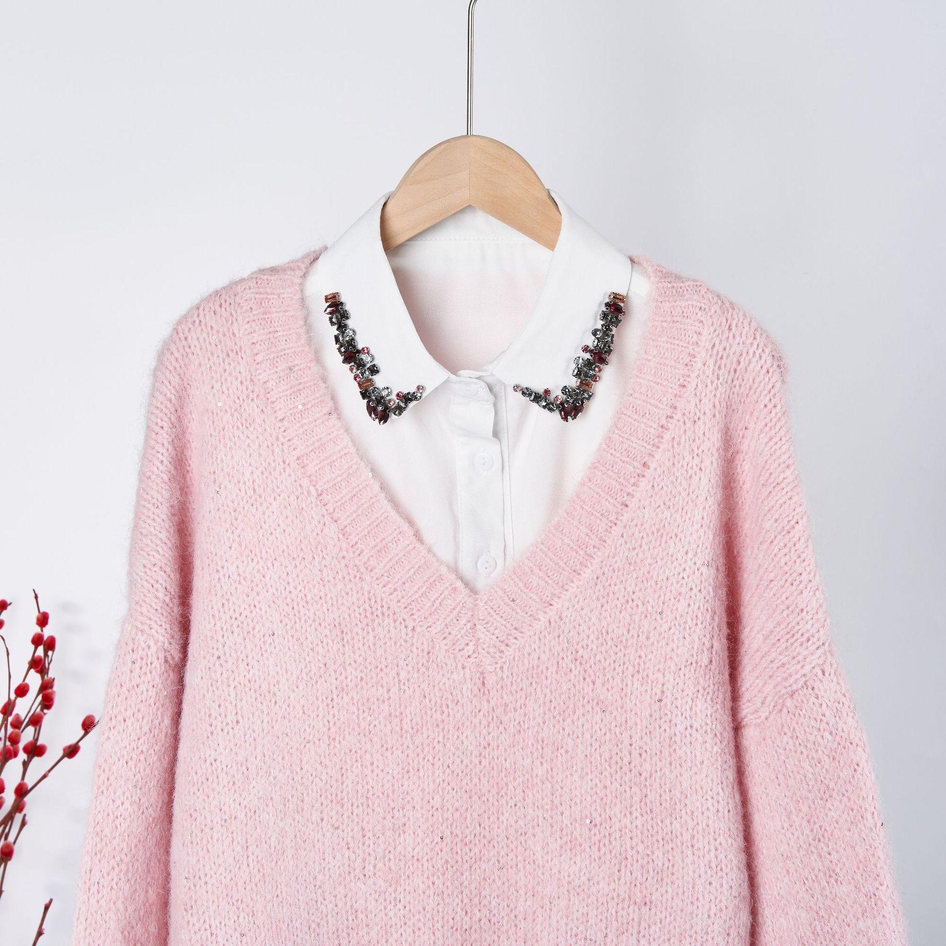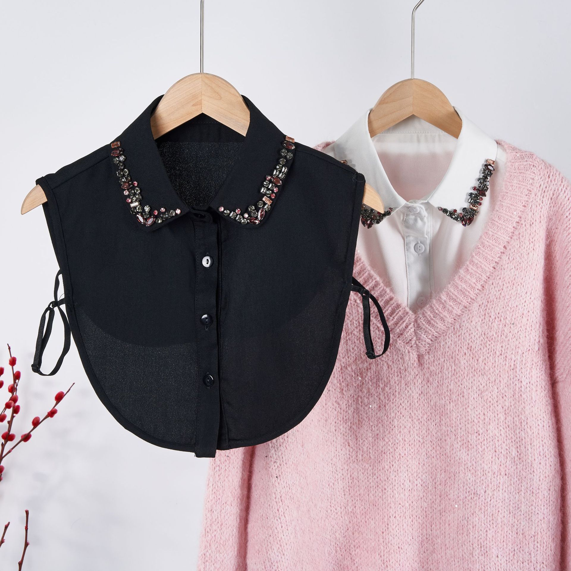 Tejido de Gasa de Alta Gama Colorido Diamante de Cristal Cuello Falso Tendencia Europea y Americana Elegante Cuello Puntiagudo para Mujer