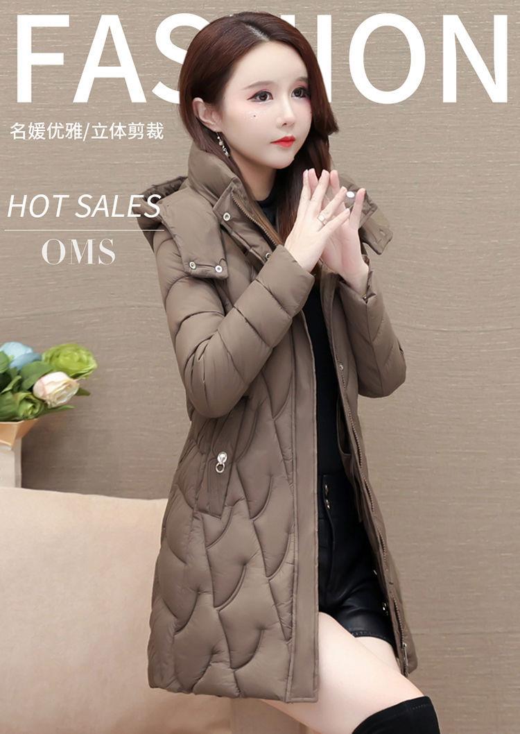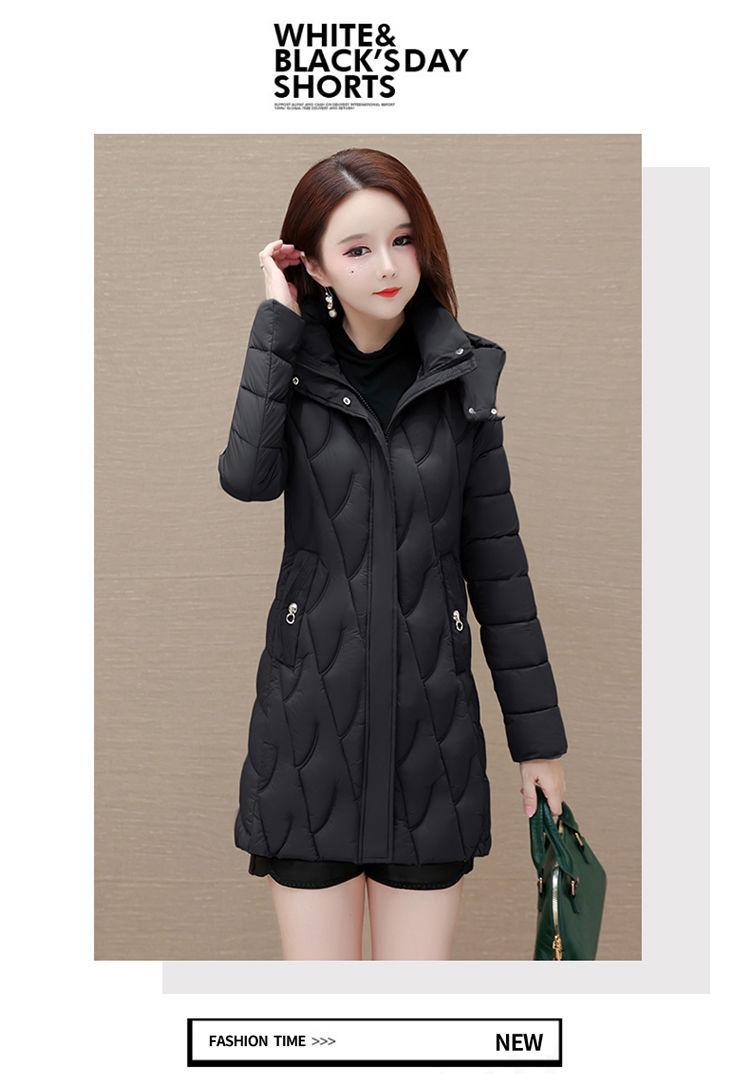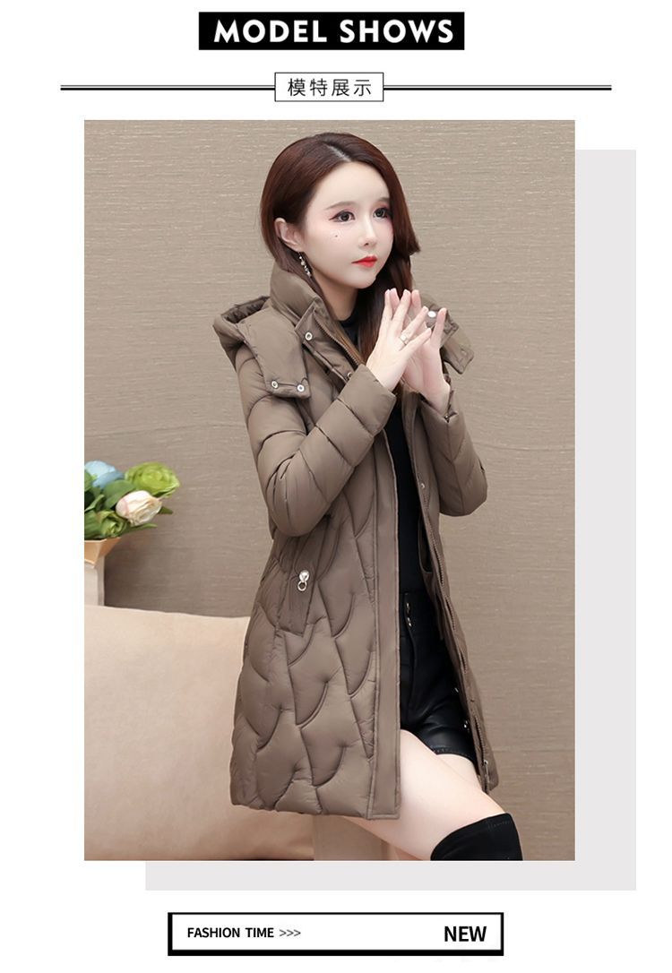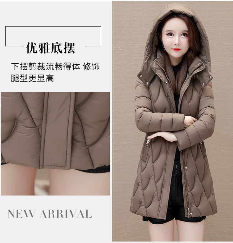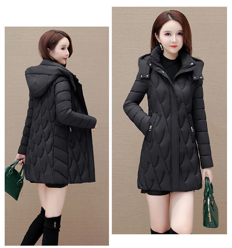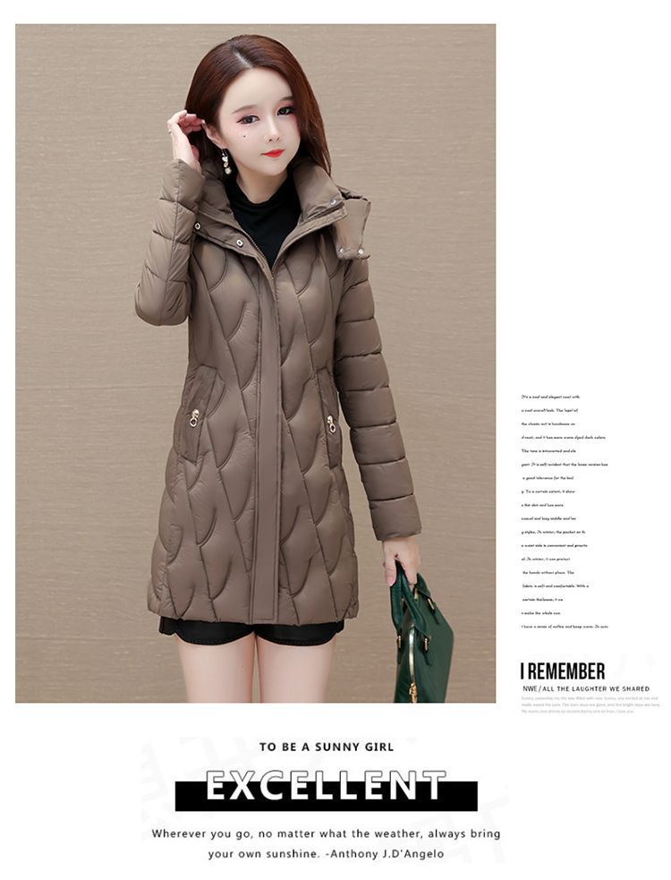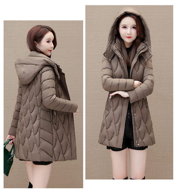 Abrigo informal de algodón acolchado liso para mujer, chaqueta de invierno 2023, cálida, con capucha y largo medio.