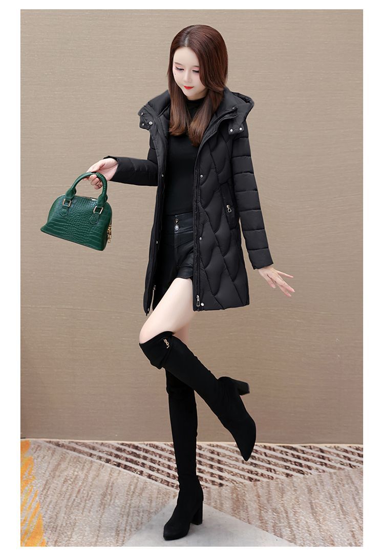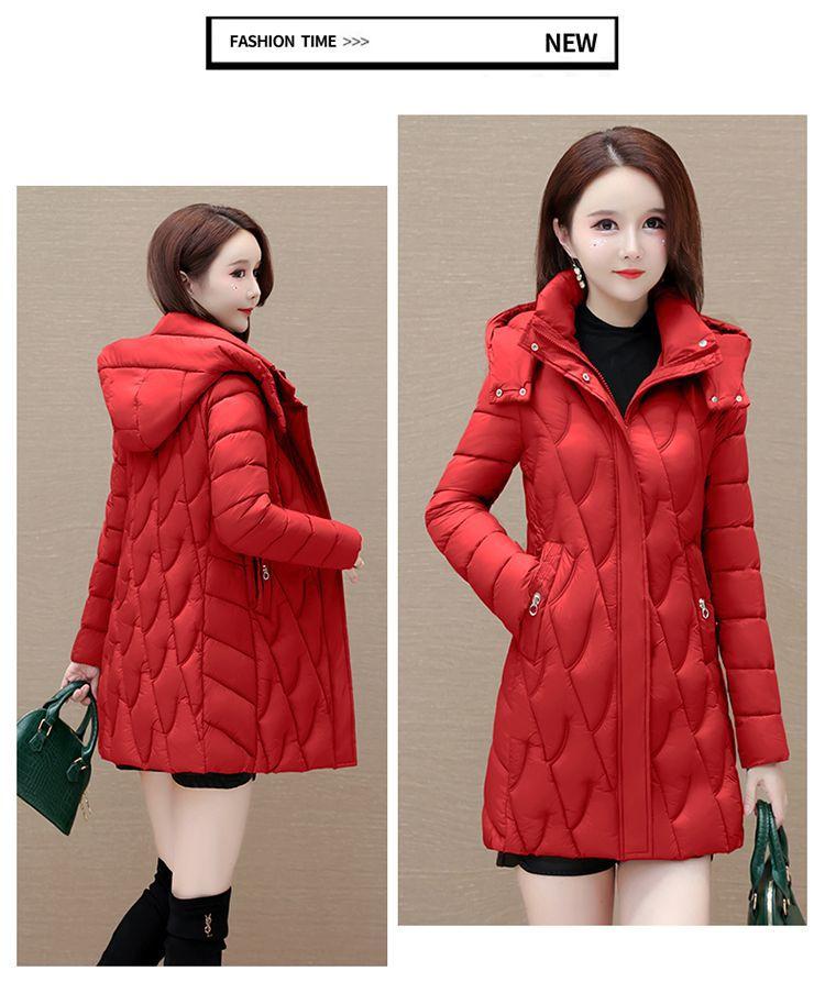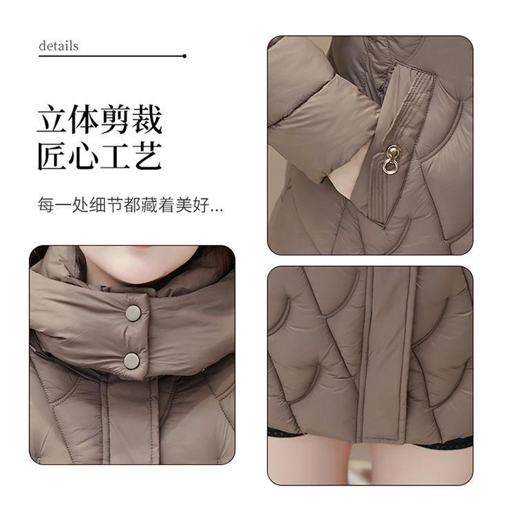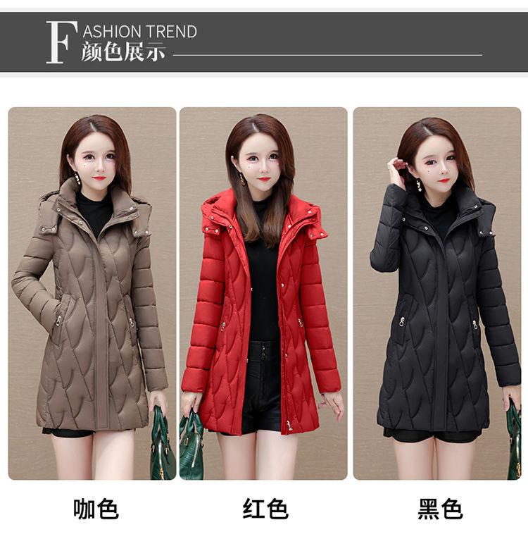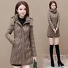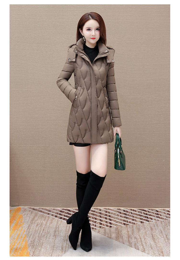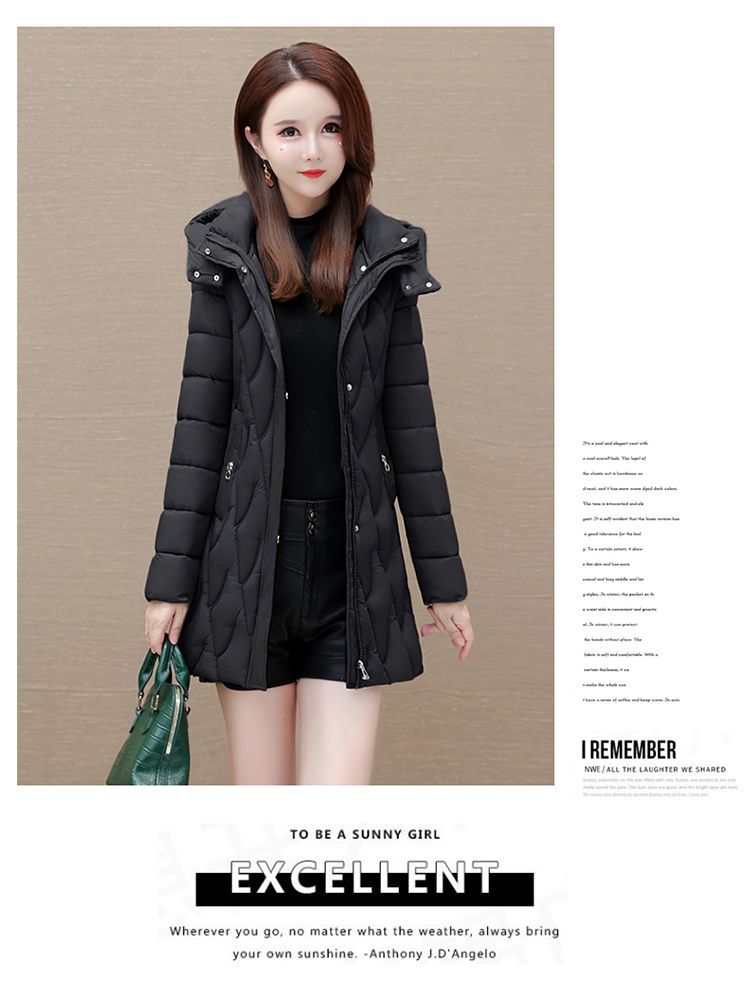 Abrigo informal de algodón acolchado liso para mujer, chaqueta de invierno 2023, cálida, con capucha y largo medio.