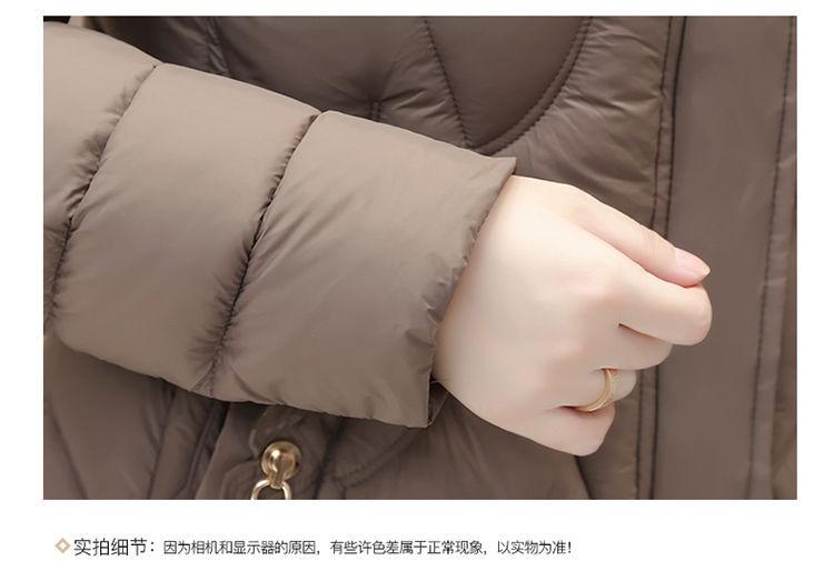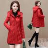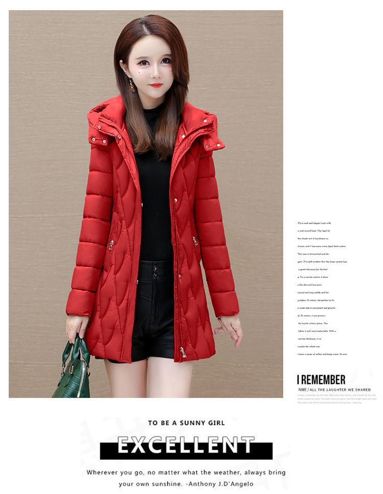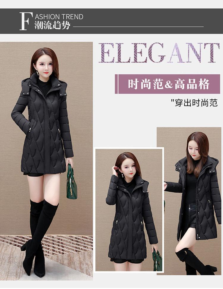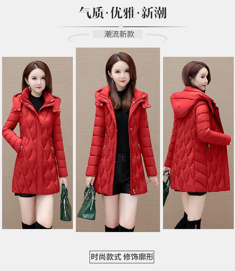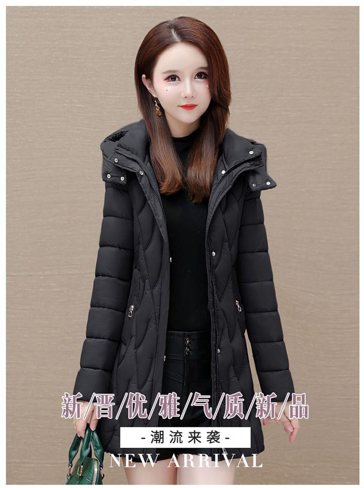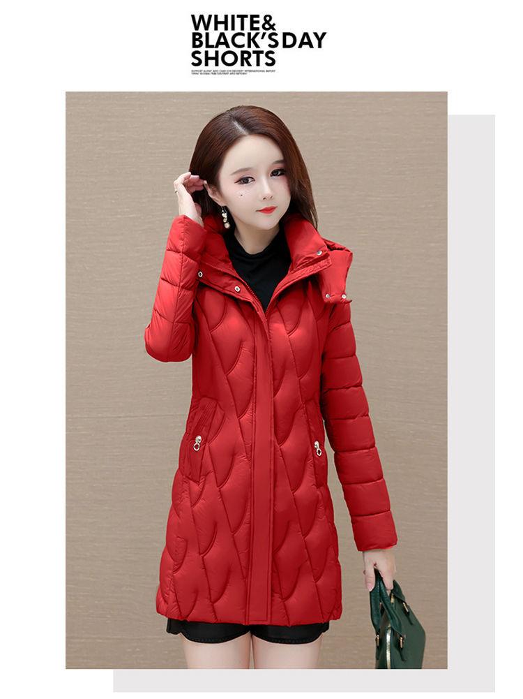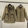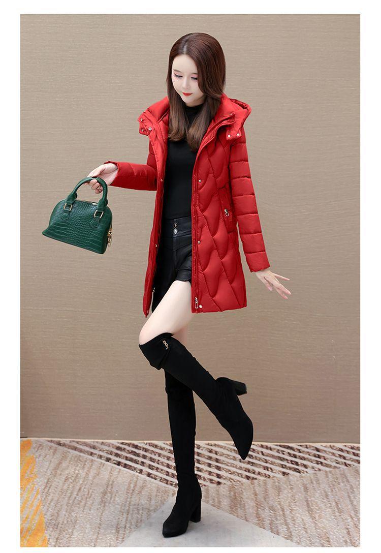 Abrigo informal de algodón acolchado liso para mujer, chaqueta de invierno 2023, cálida, con capucha y largo medio.