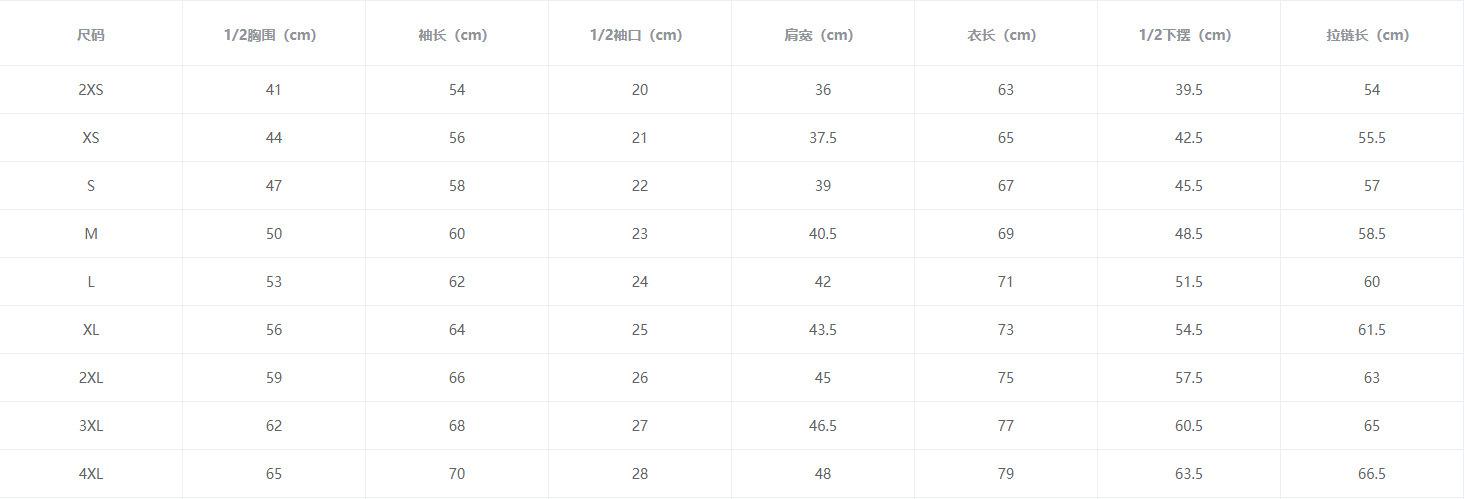 XXS, XS, S, M, L, XL, XXL, XXXL, XXXXL