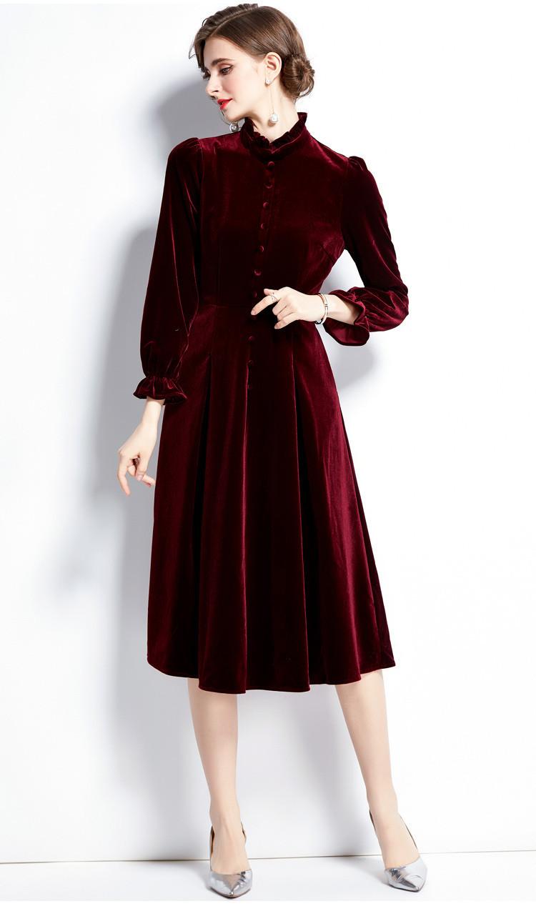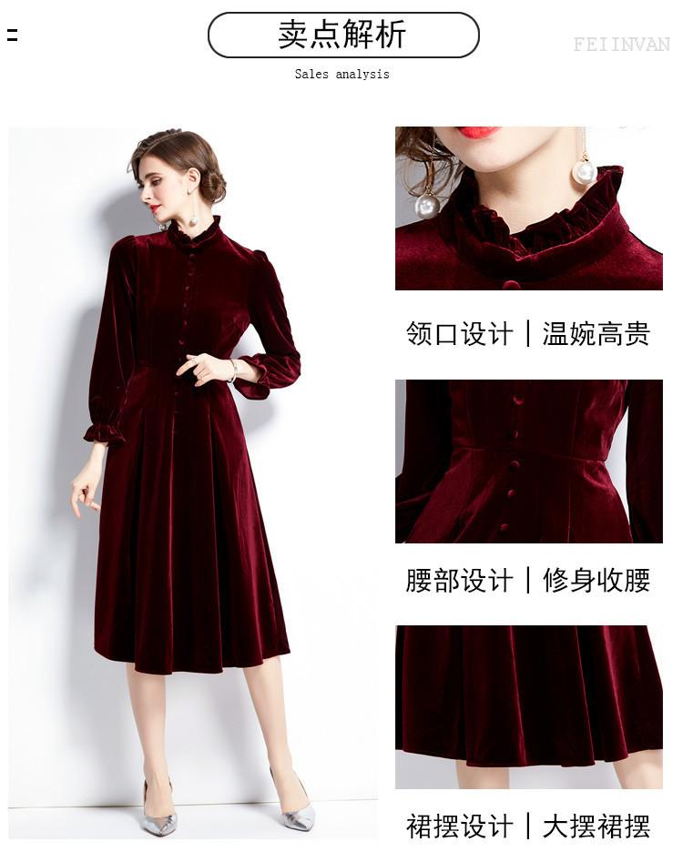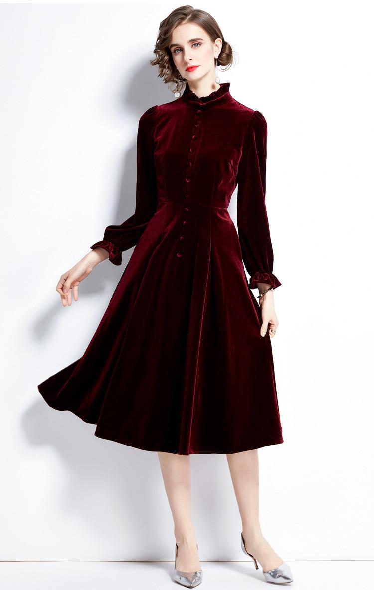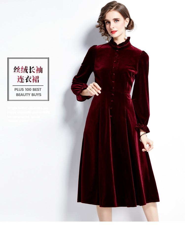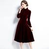 Ropa de mujer transfronteriza 2024 nuevo viento de otoño para damas nuevo vestido de terciopelo con forro estilo palaciego para mujer