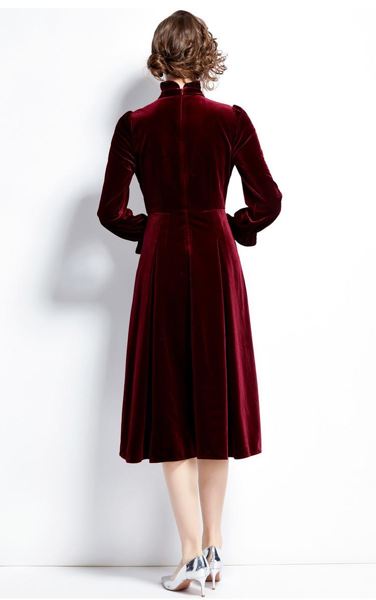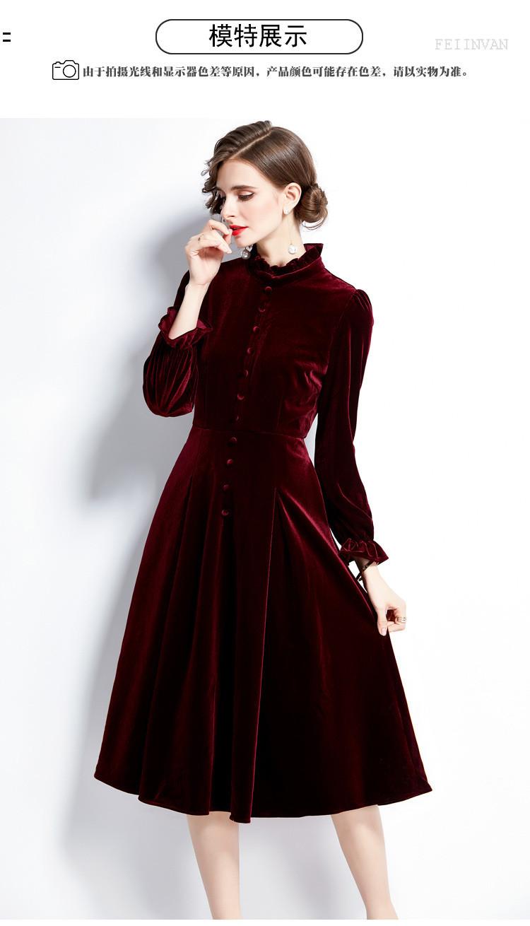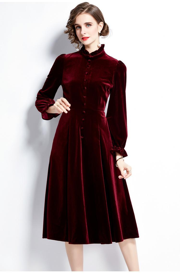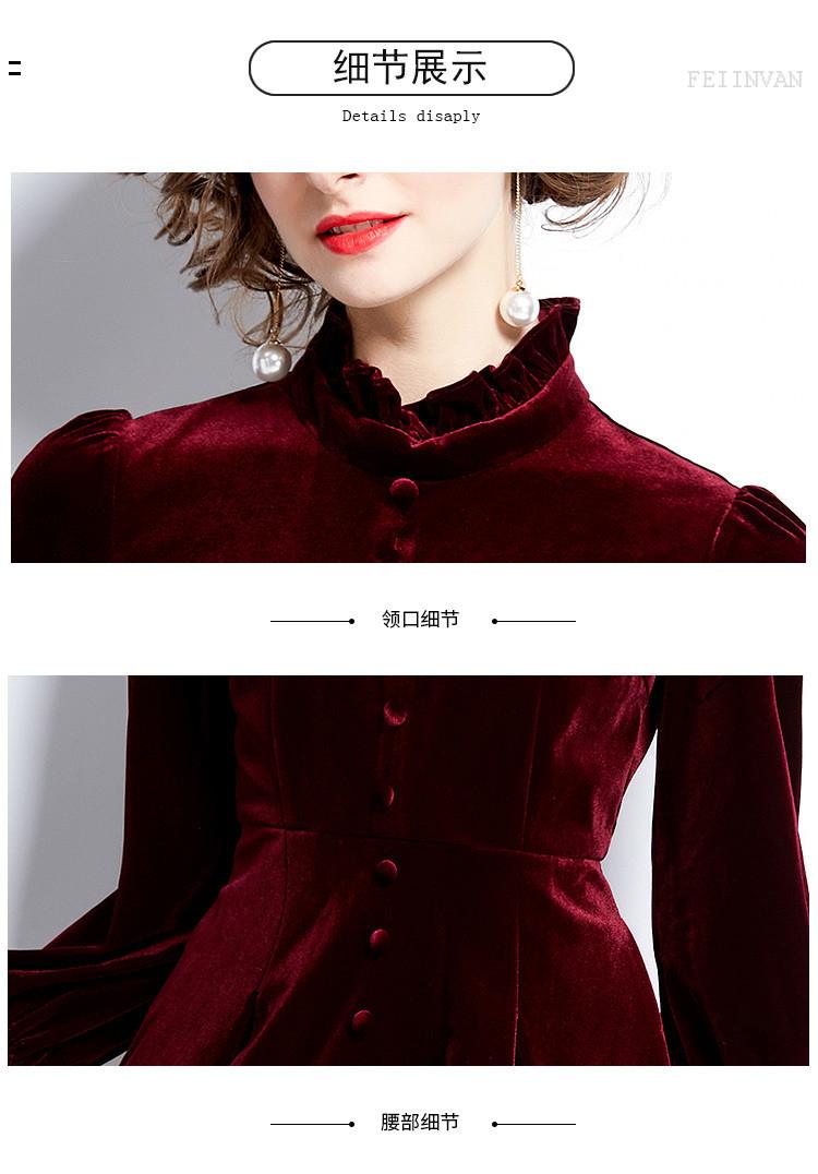 Ropa de mujer transfronteriza 2024 nuevo viento de otoño para damas nuevo vestido de terciopelo con forro estilo palaciego para mujer