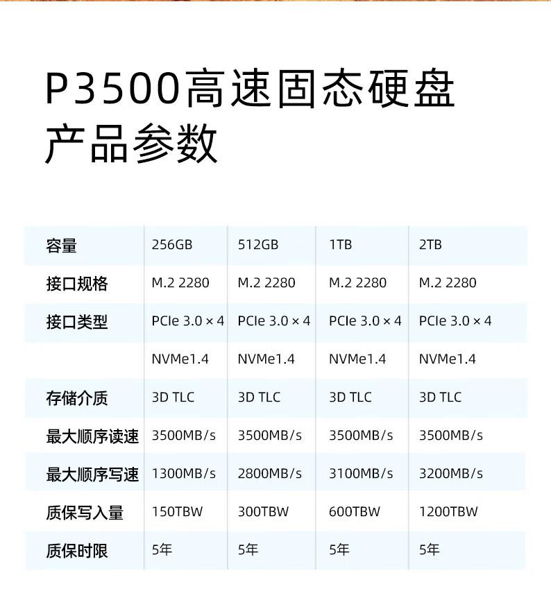 256GB-[P3500] NVMe PCIe3.0*4, 512GB-[P3500] NVMe PCIe3.0*4, 1TB-[P3500] NVMe PCIe3.0*4, 2TB-[P3500] NVMe PCIe3.0*4