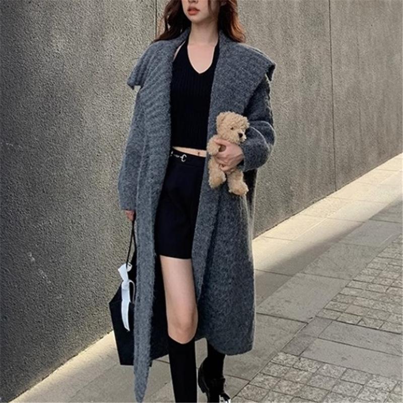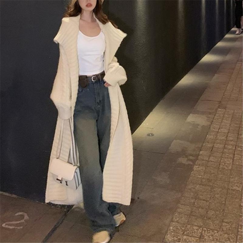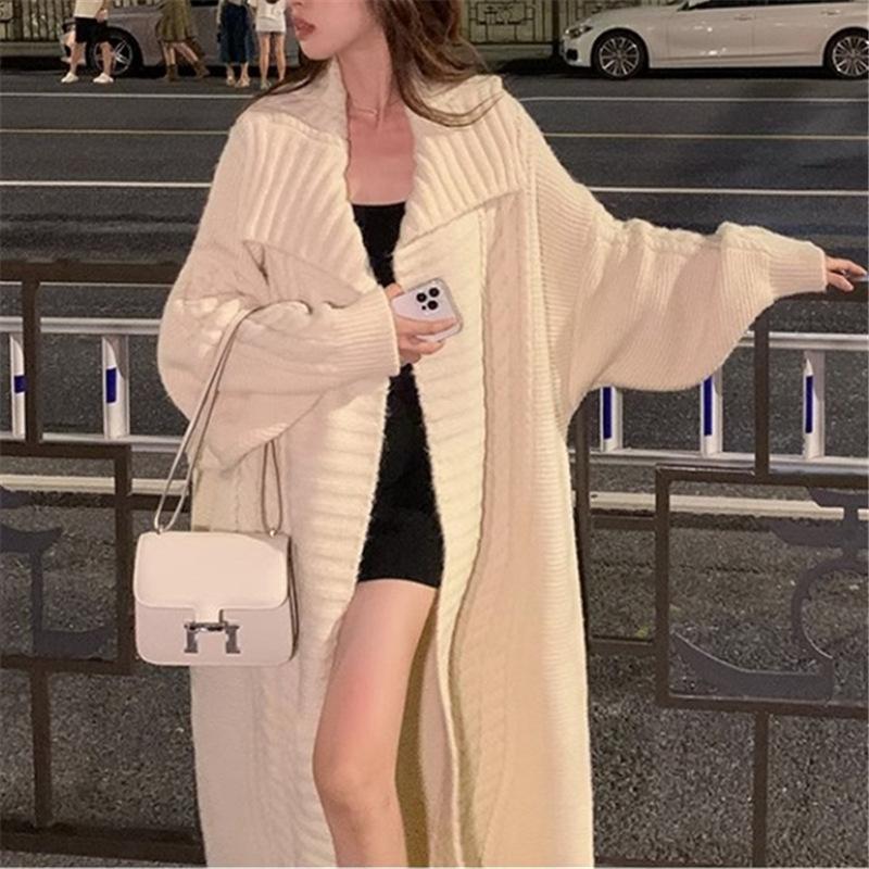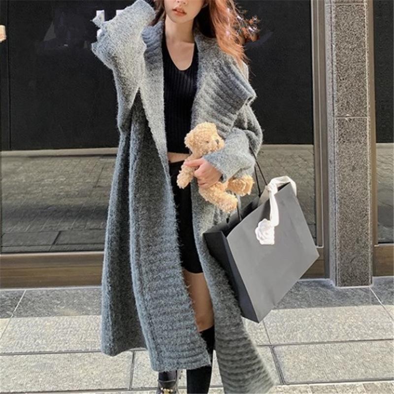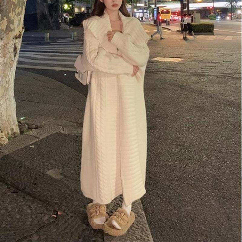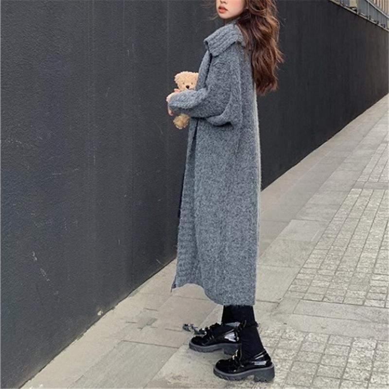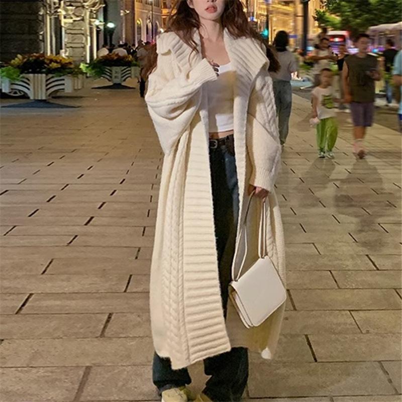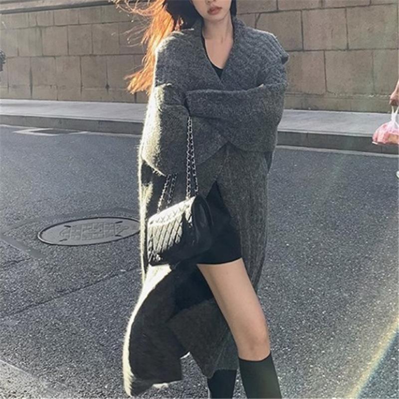 Suéter suave ceroso, chaqueta tejida para mujer 2025, principios de otoño, nuevo, elegante, casual, cárdigan de longitud media, top tipo vestido para mujer