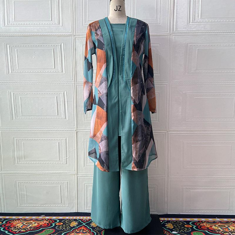 Pantalones y chaquetas de cintura alta transpirables, informales, con estampado de moda transfronteriza europea y americana para mujer, 3 piezas