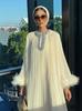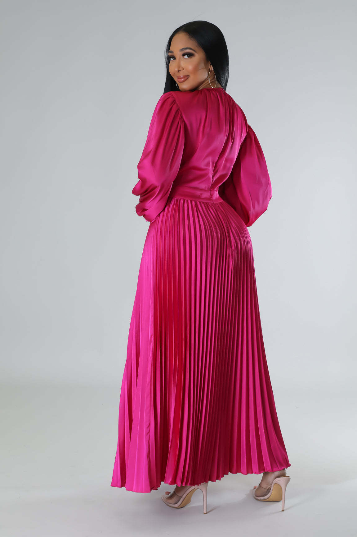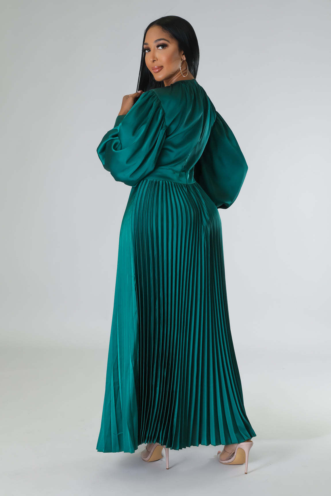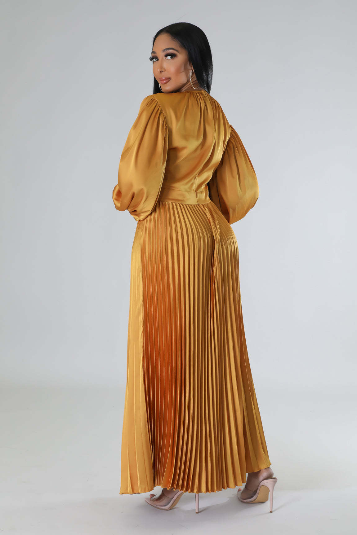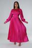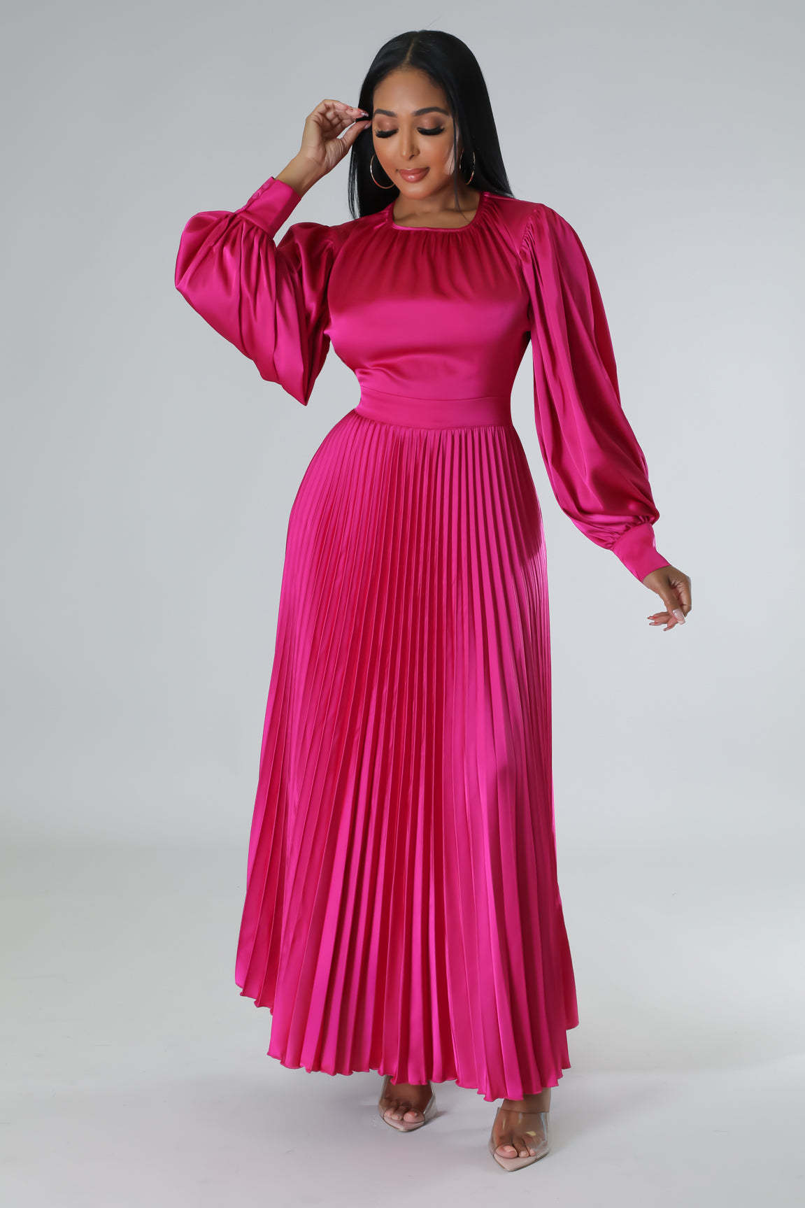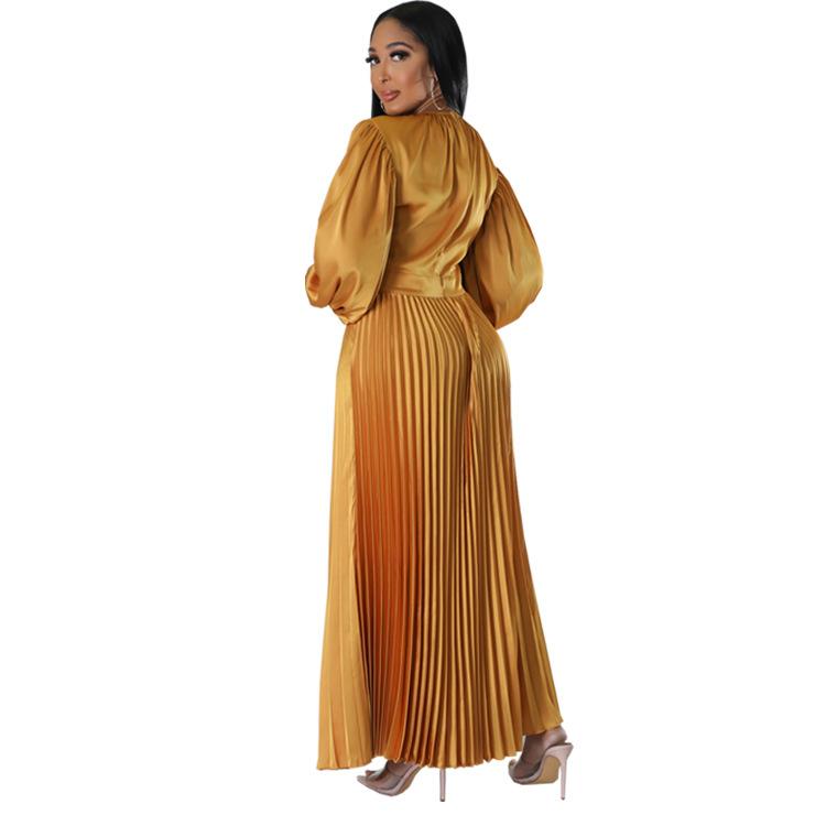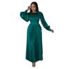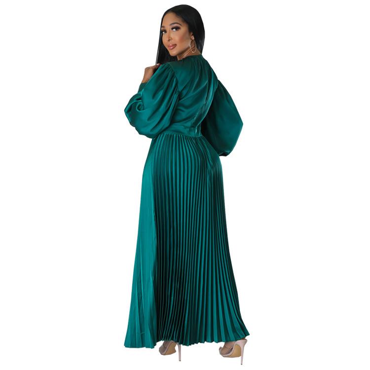 Ropa Europea y Americana Transfronteriza Amazon Otoño e Invierno Wish Venta Caliente Nuevo Vestido Largo Plisado de Cuello Redondo para Mujer