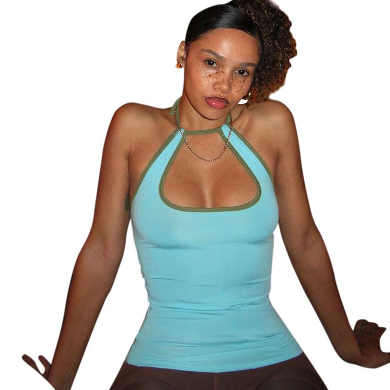 Camiseta informal de verano con cuello en contraste, cordones y espalda descubierta para mujer europea y americana de Amazon transfronteriza