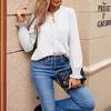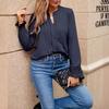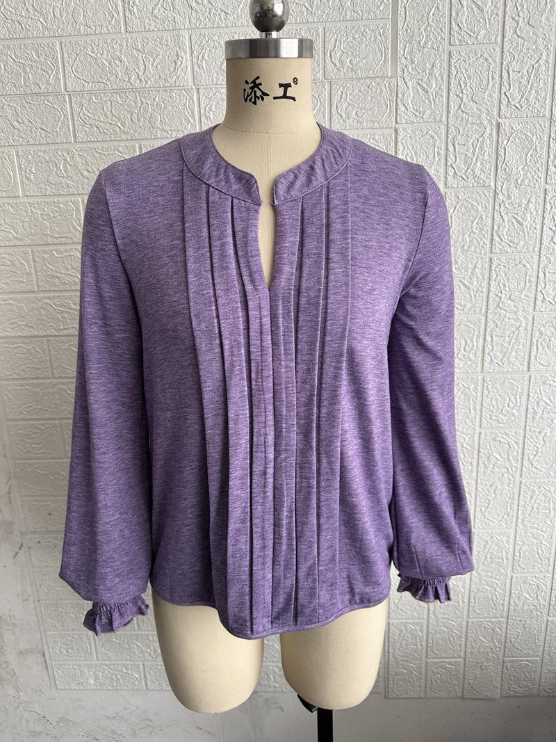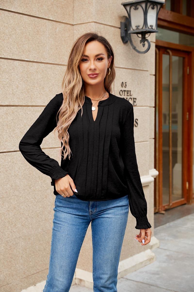 Comercio Exterior Europeo y Americano Amazon Transfronterizo Ropa de Mujer Otoño e Invierno Nuevo Elegante Plisado Cuello en V Tops de Mujer t