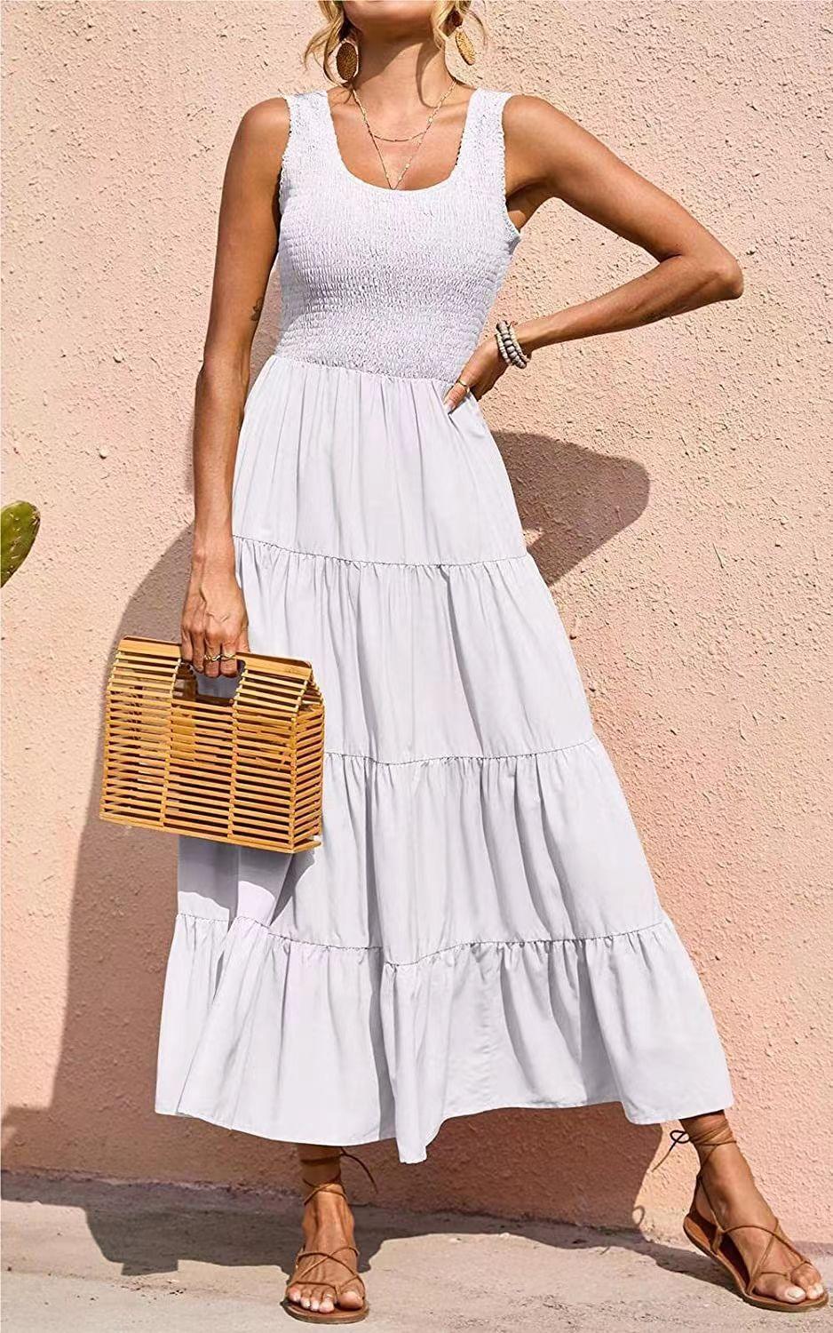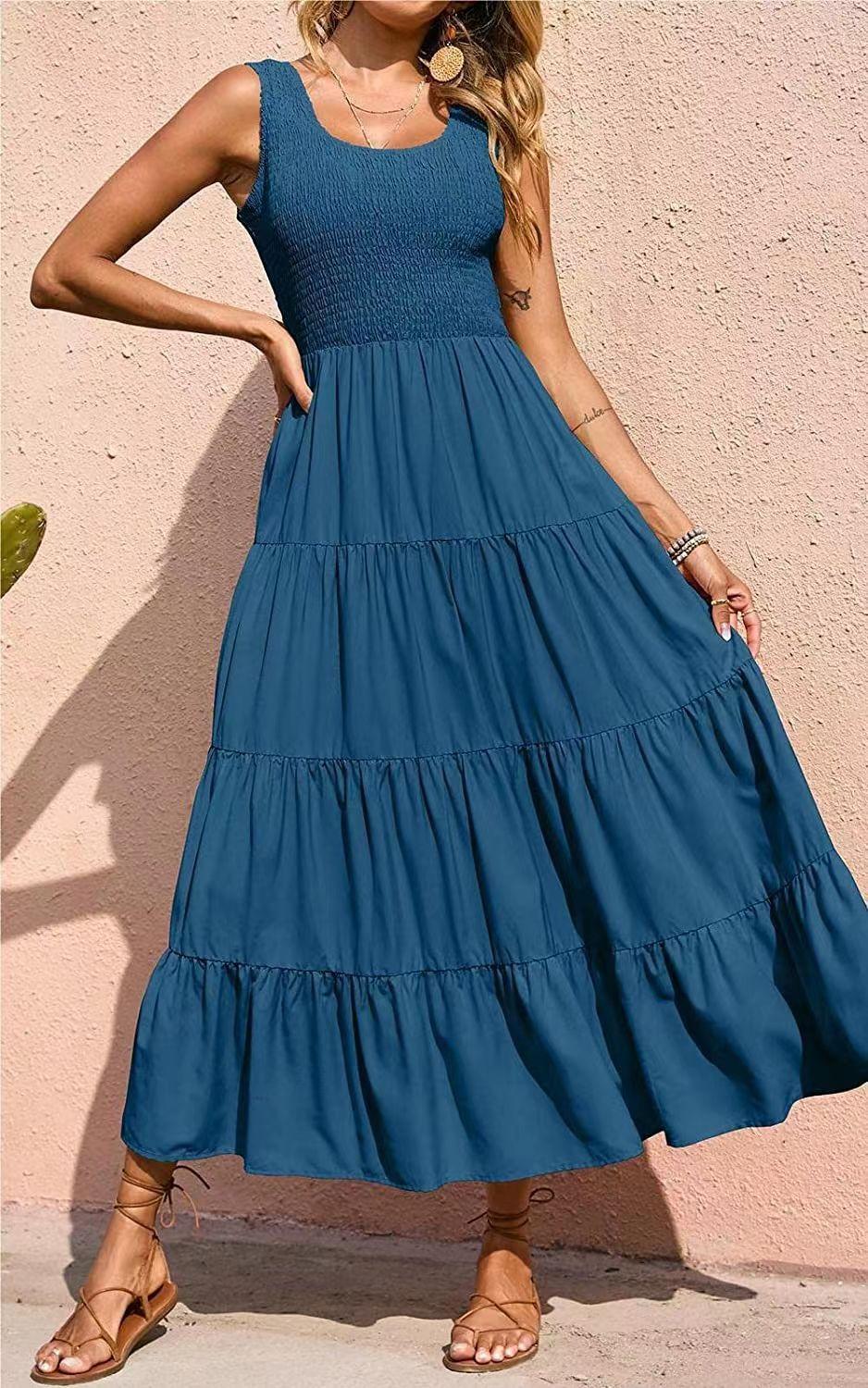 Comercio Exterior Amazon Ropa Europea y Americana Falda Larga Ins Transfronterizo Sin Mangas Tirantes Plisado Vestido de Dobladillo Grande