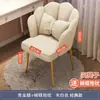 Main image: petal chair, off-white with gold legs, White low stool, Main image: petal chair - gray with gold l...