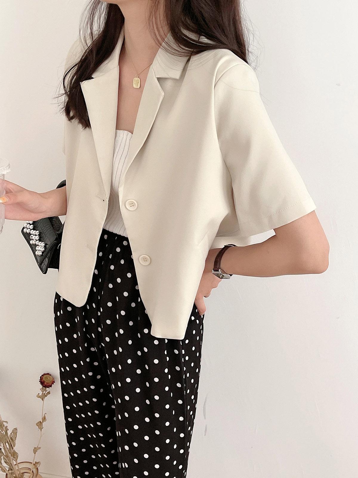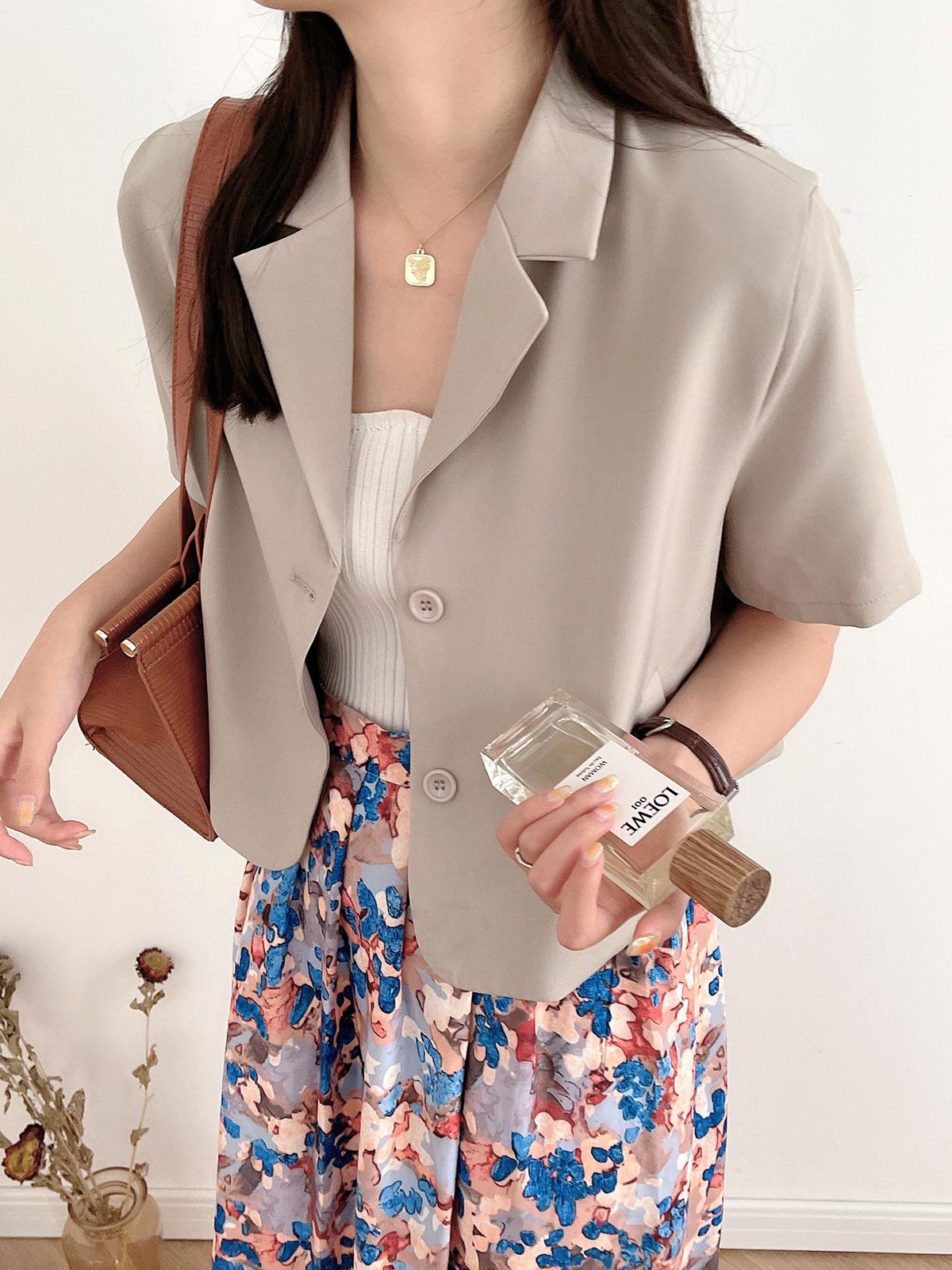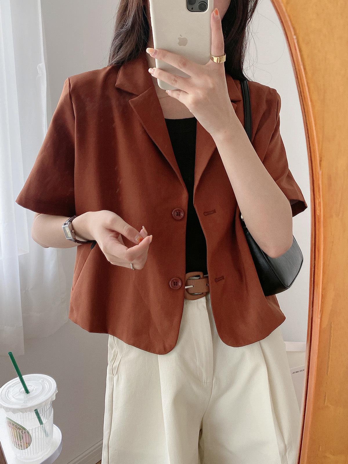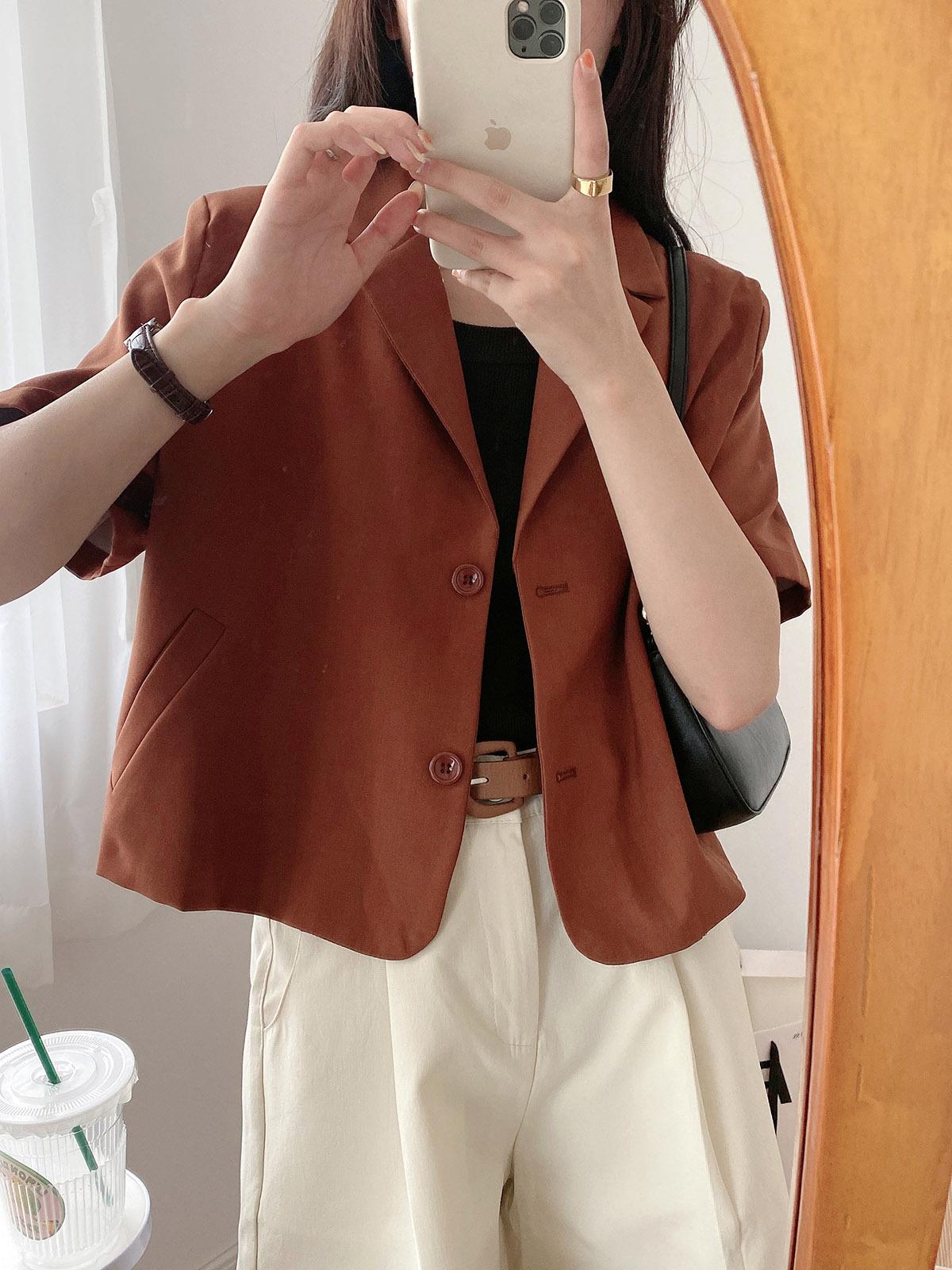 Chaqueta de Traje Corta Lizhiqi para Mujer Verano Nuevo Diseño de Manga Corta Sentido Suelto Traje Delgado Top 110953