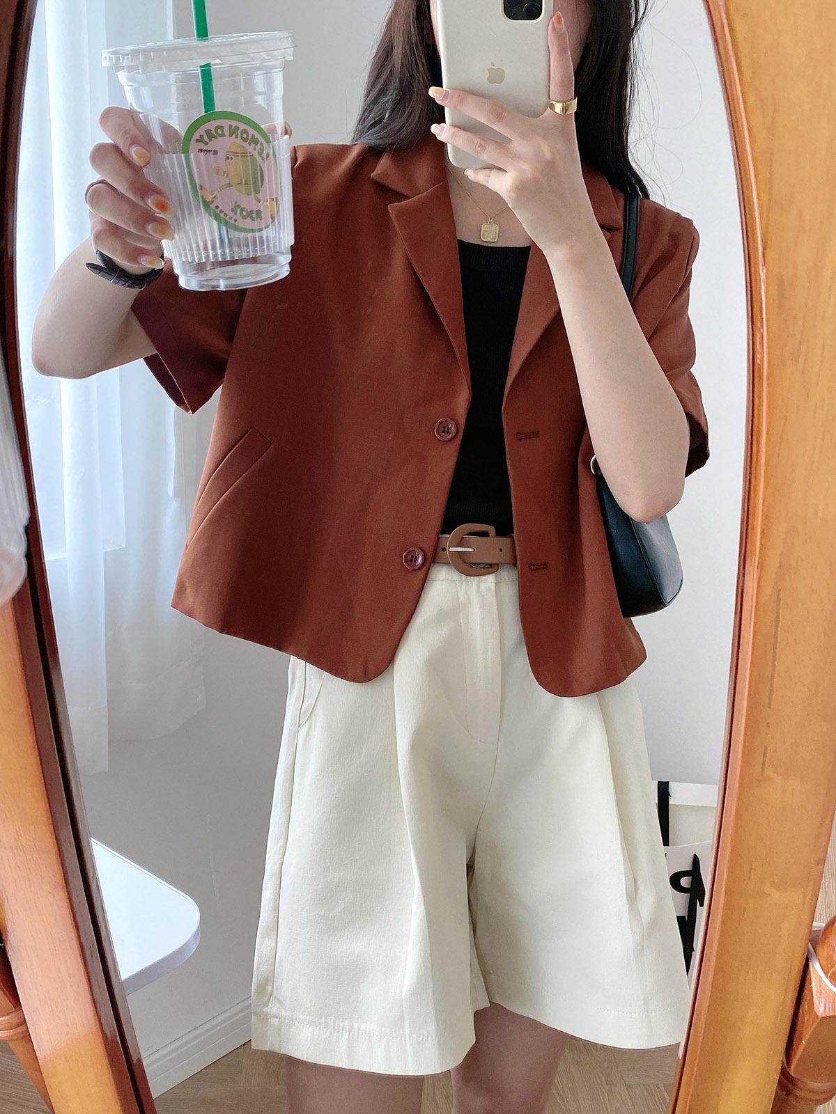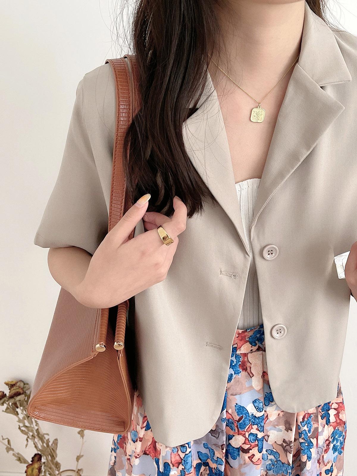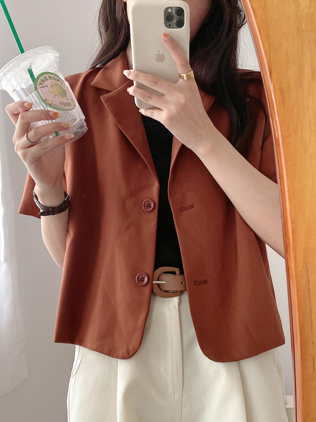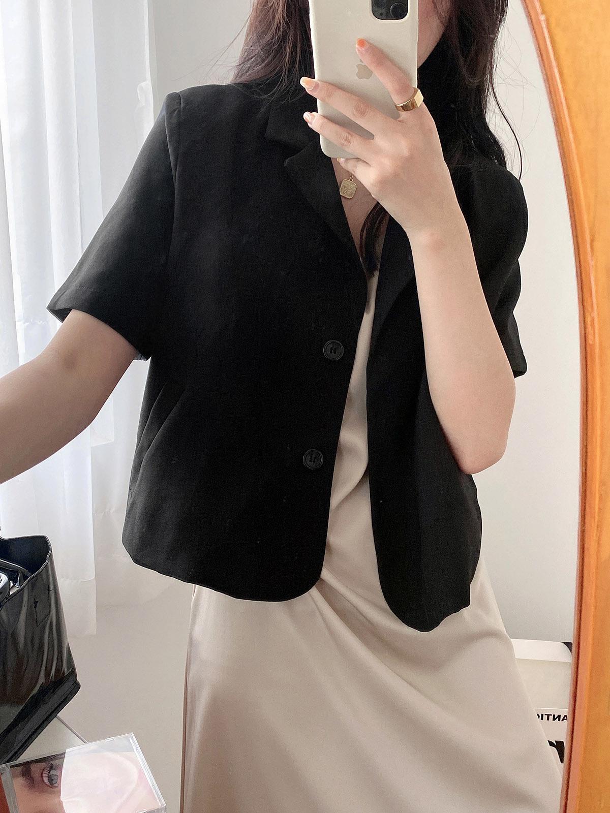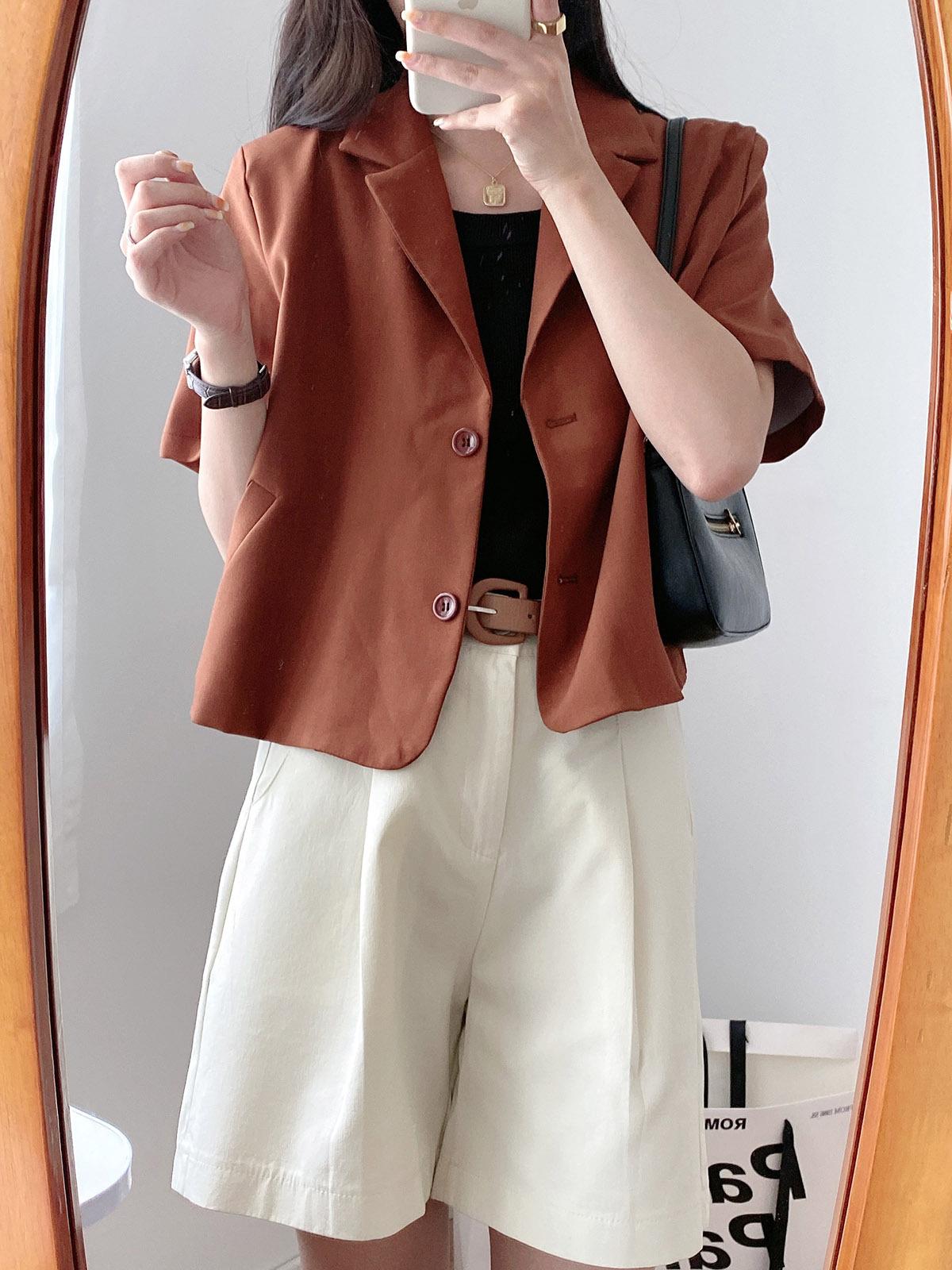 Chaqueta de Traje Corta Lizhiqi para Mujer Verano Nuevo Diseño de Manga Corta Sentido Suelto Traje Delgado Top 110953
