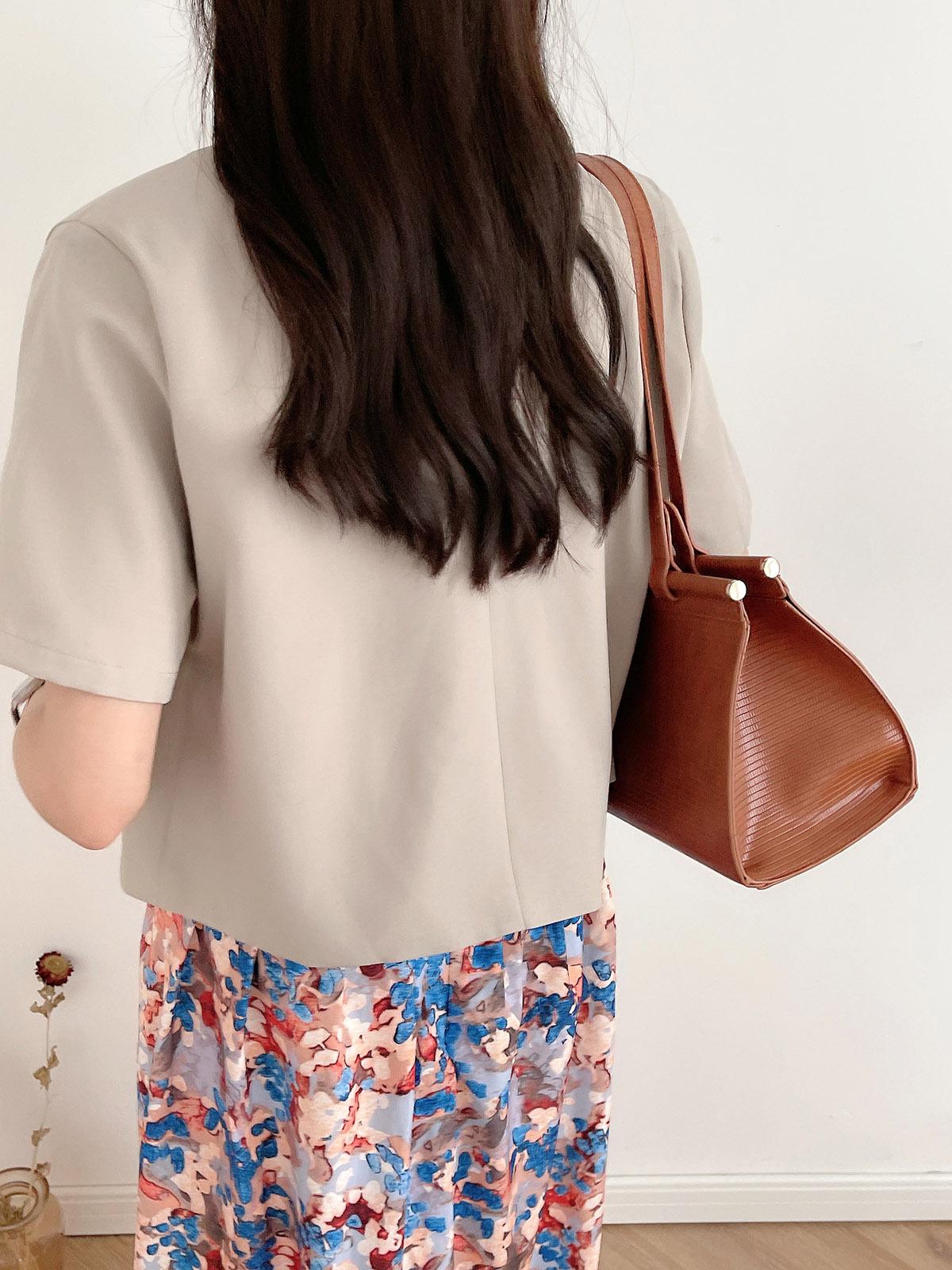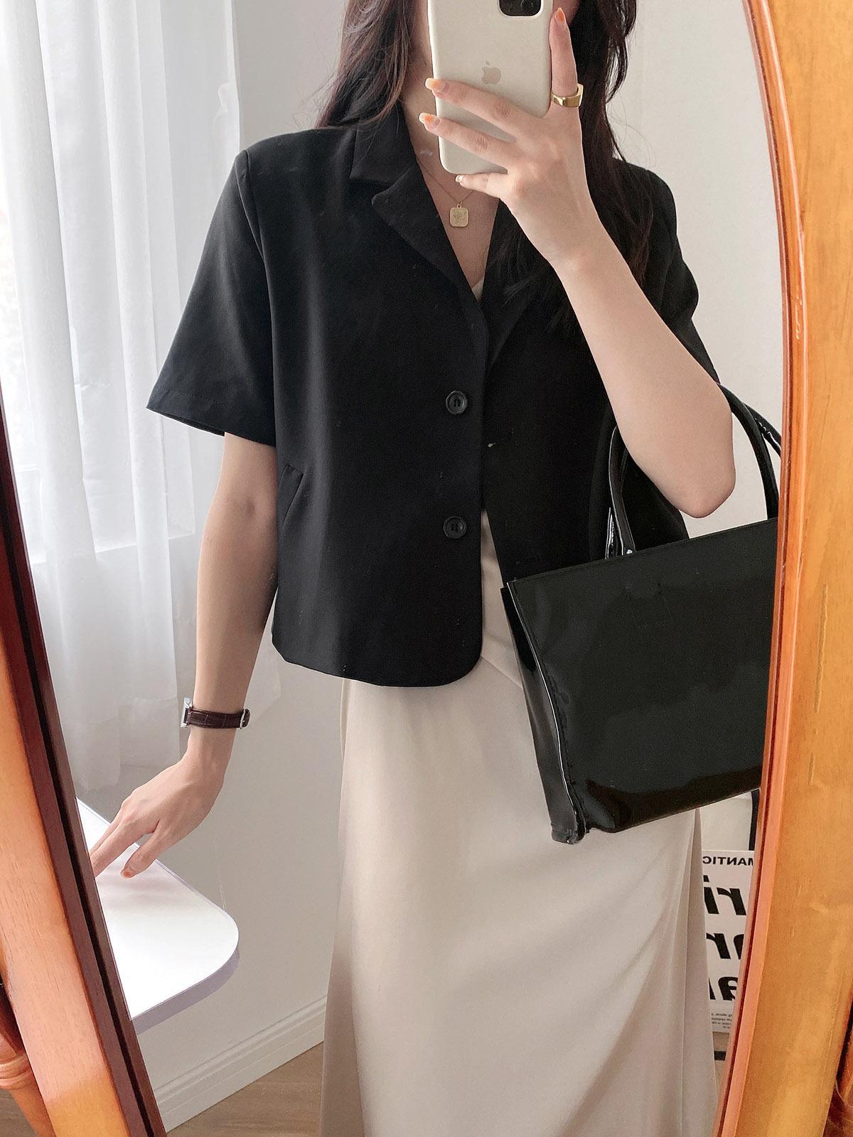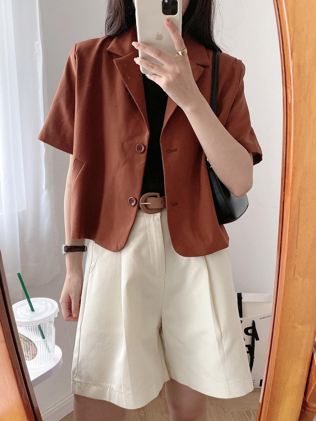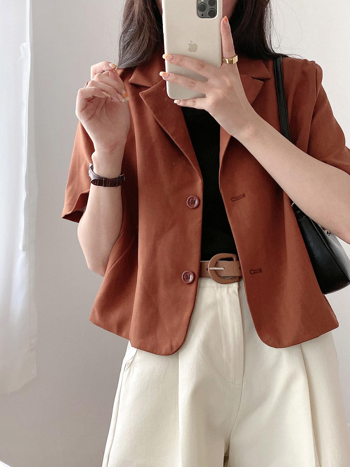 Chaqueta de Traje Corta Lizhiqi para Mujer Verano Nuevo Diseño de Manga Corta Sentido Suelto Traje Delgado Top 110953