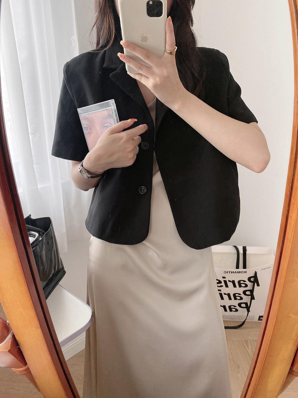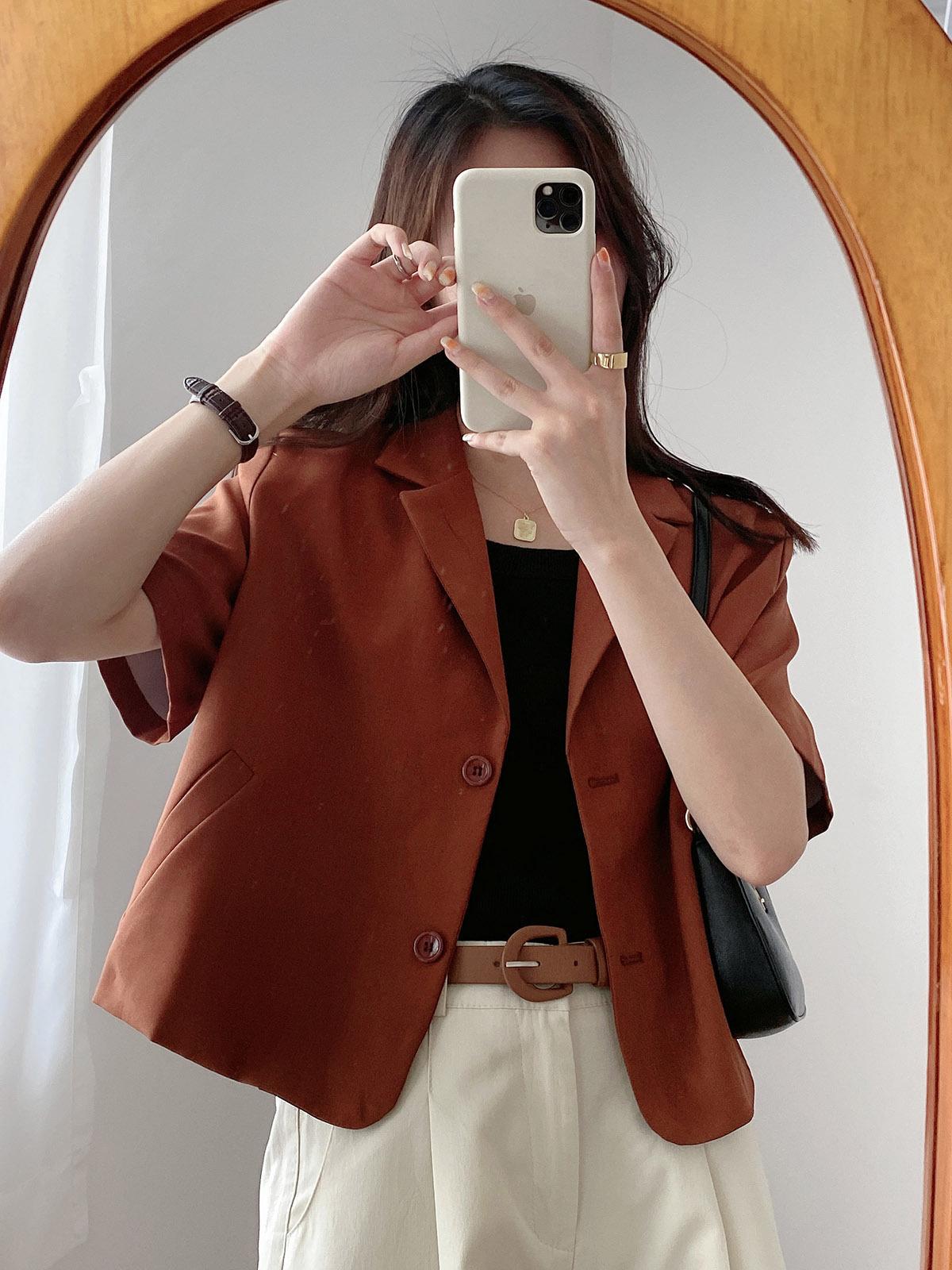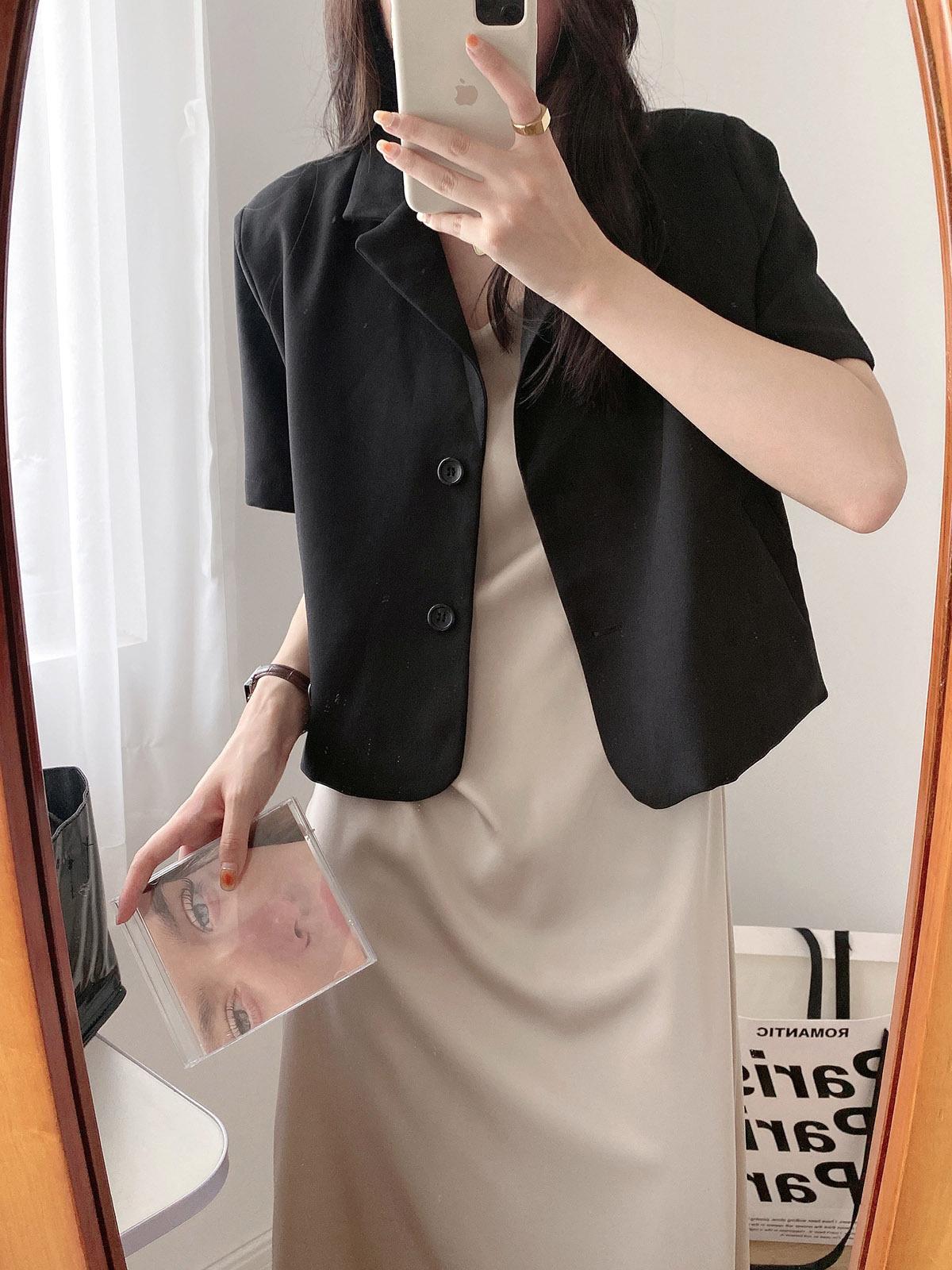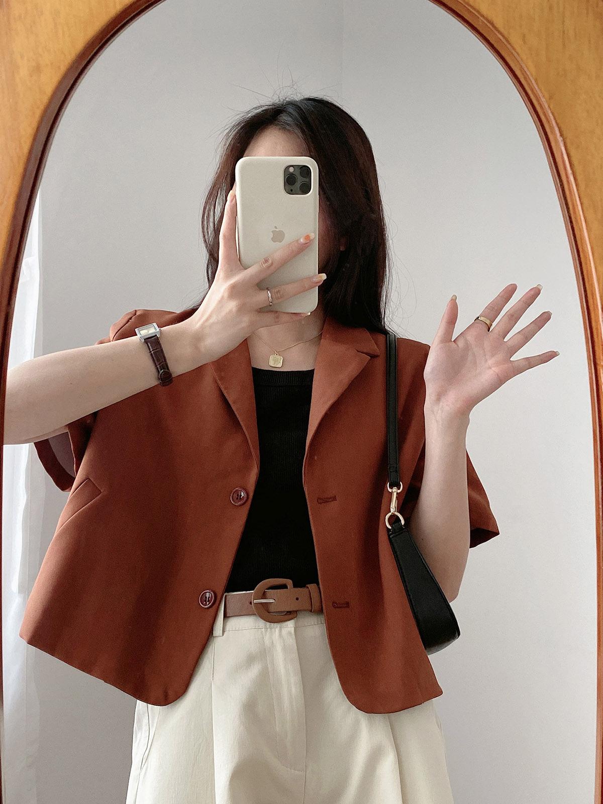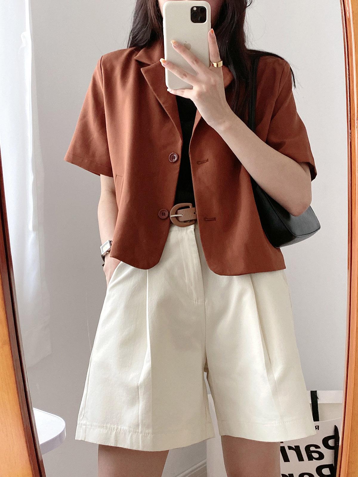 Chaqueta de Traje Corta Lizhiqi para Mujer Verano Nuevo Diseño de Manga Corta Sentido Suelto Traje Delgado Top 110953