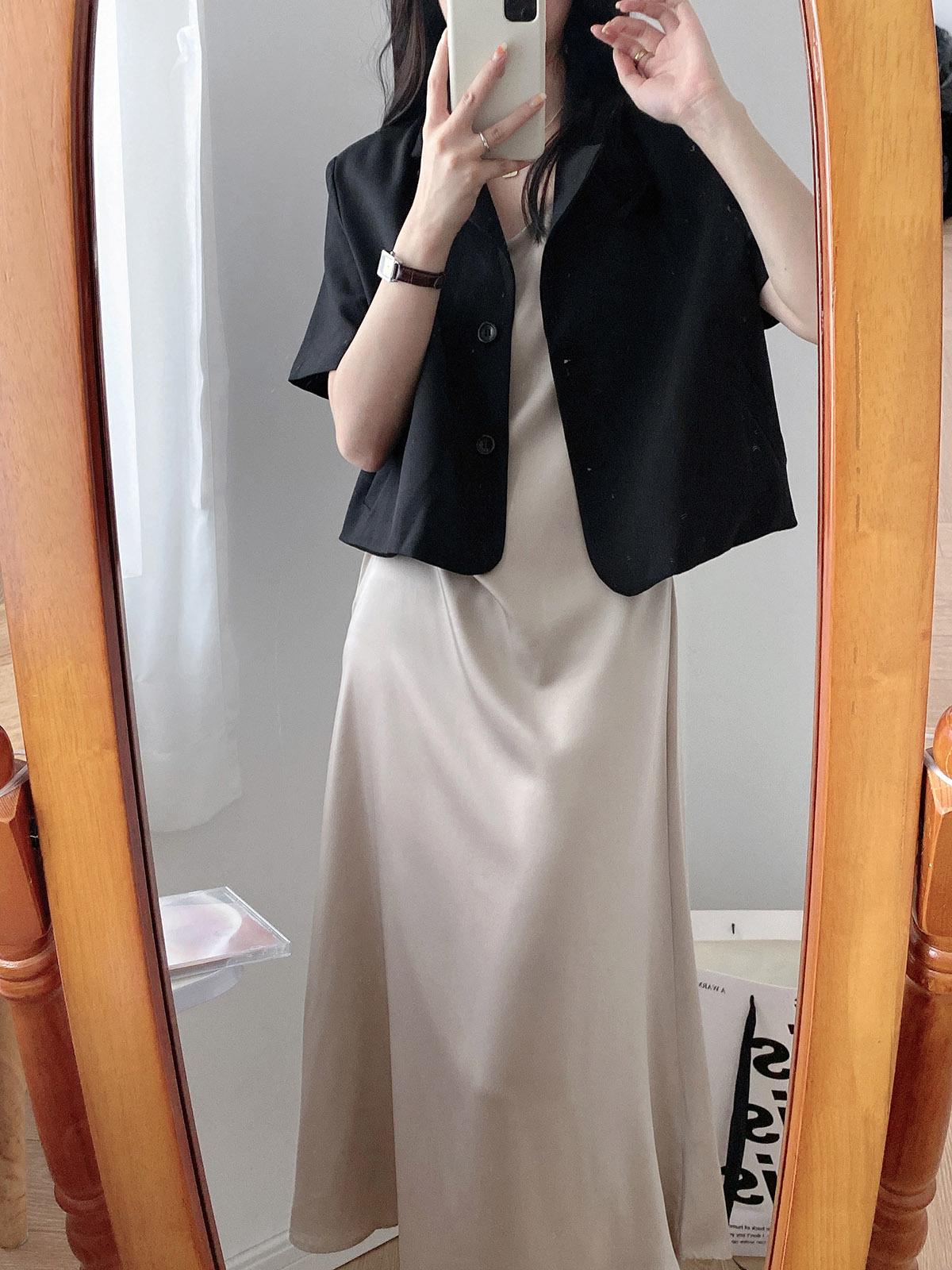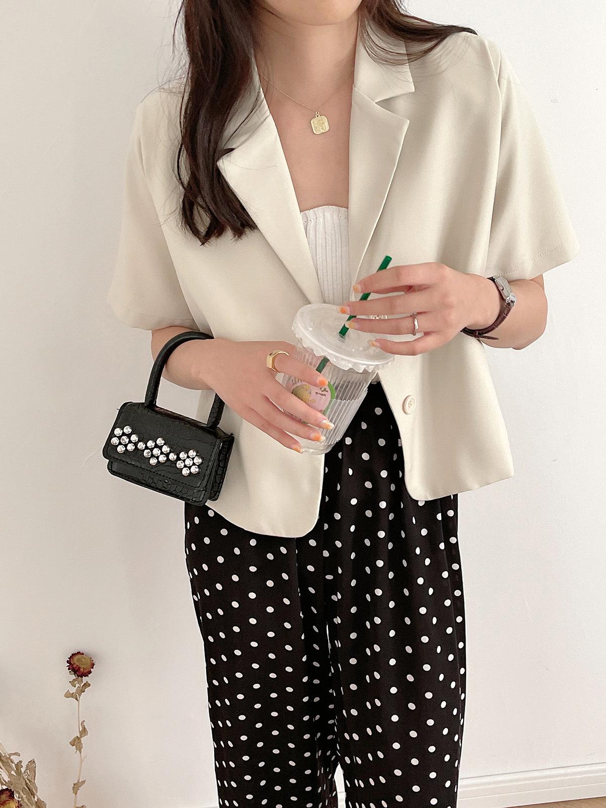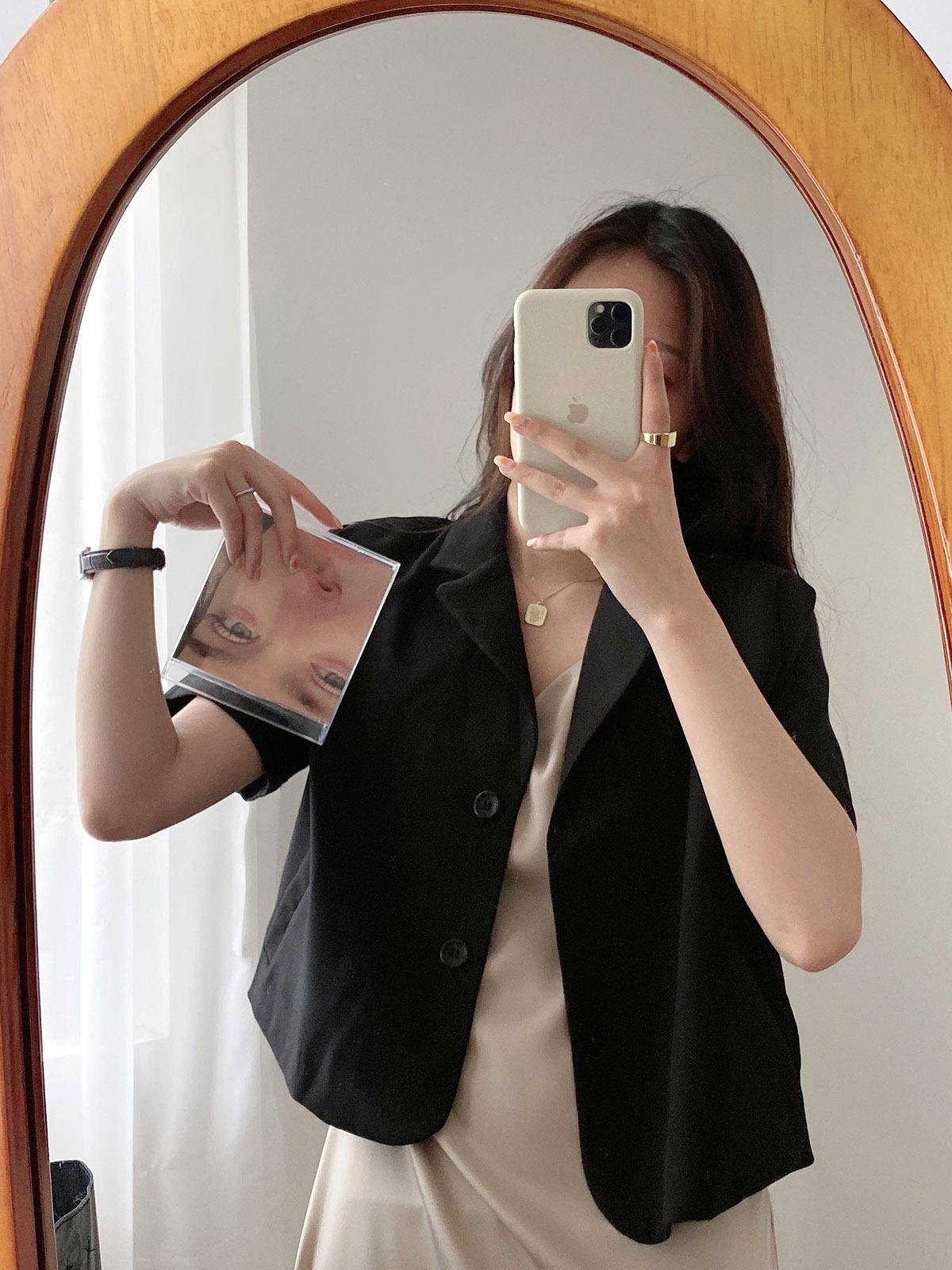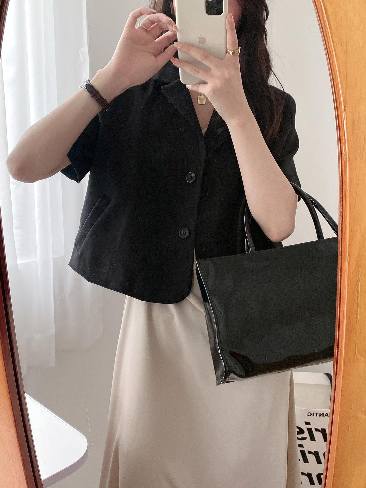Chaqueta de Traje Corta Lizhiqi para Mujer Verano Nuevo Diseño de Manga Corta Sentido Suelto Traje Delgado Top 110953