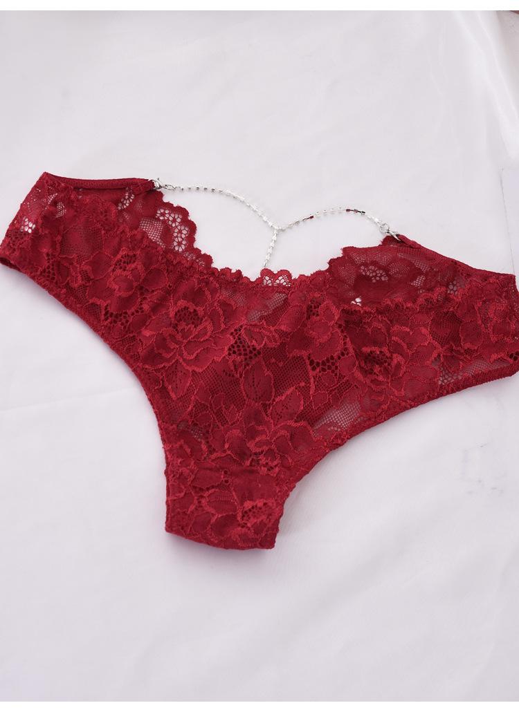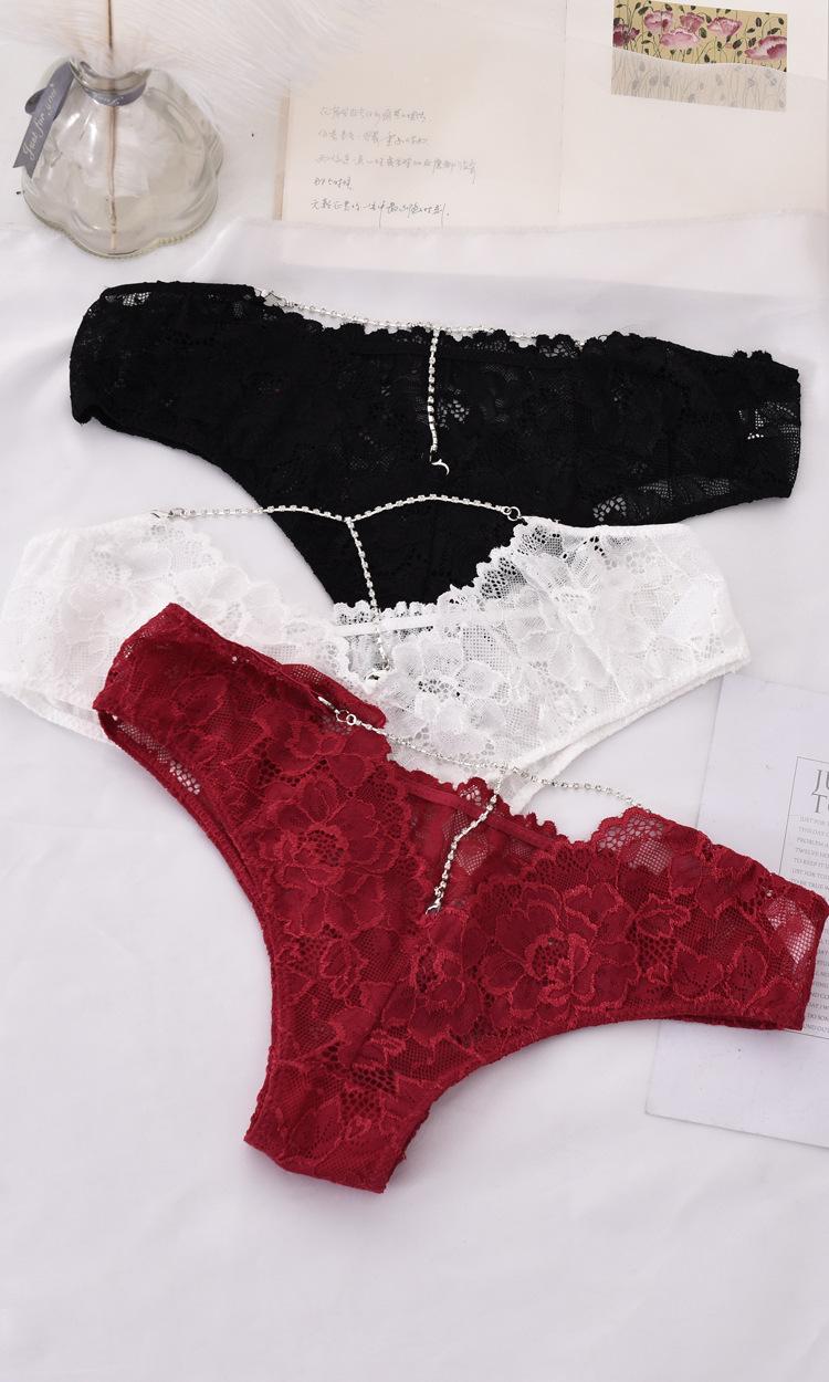 Encaje Ropa Interior Sexy de Mujer Cintura Baja Transparente Cadena Metálica Decorativa Sexy Calzones Puros de Mujer Cabeza
