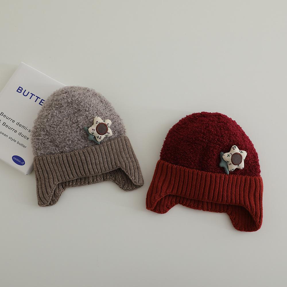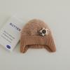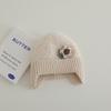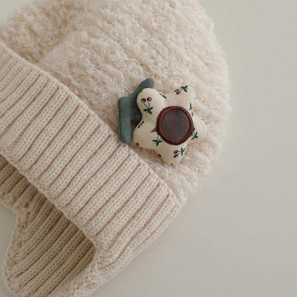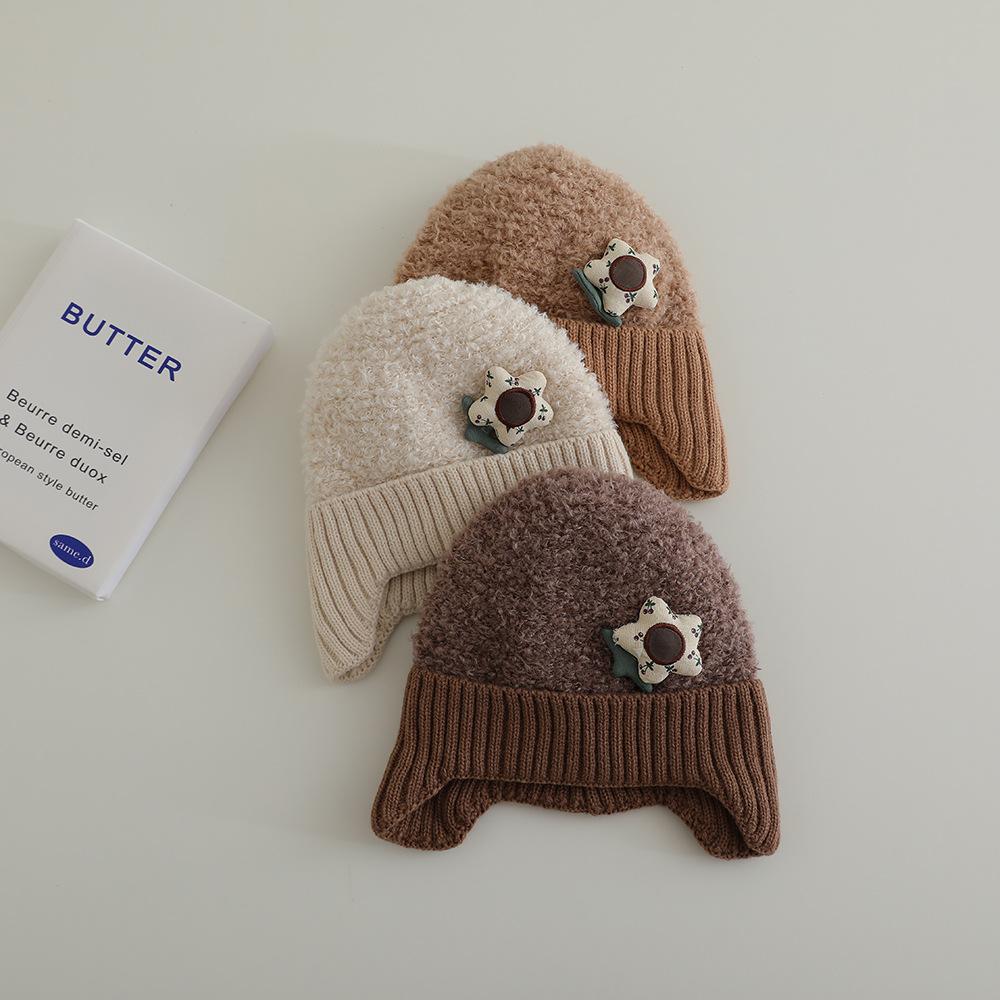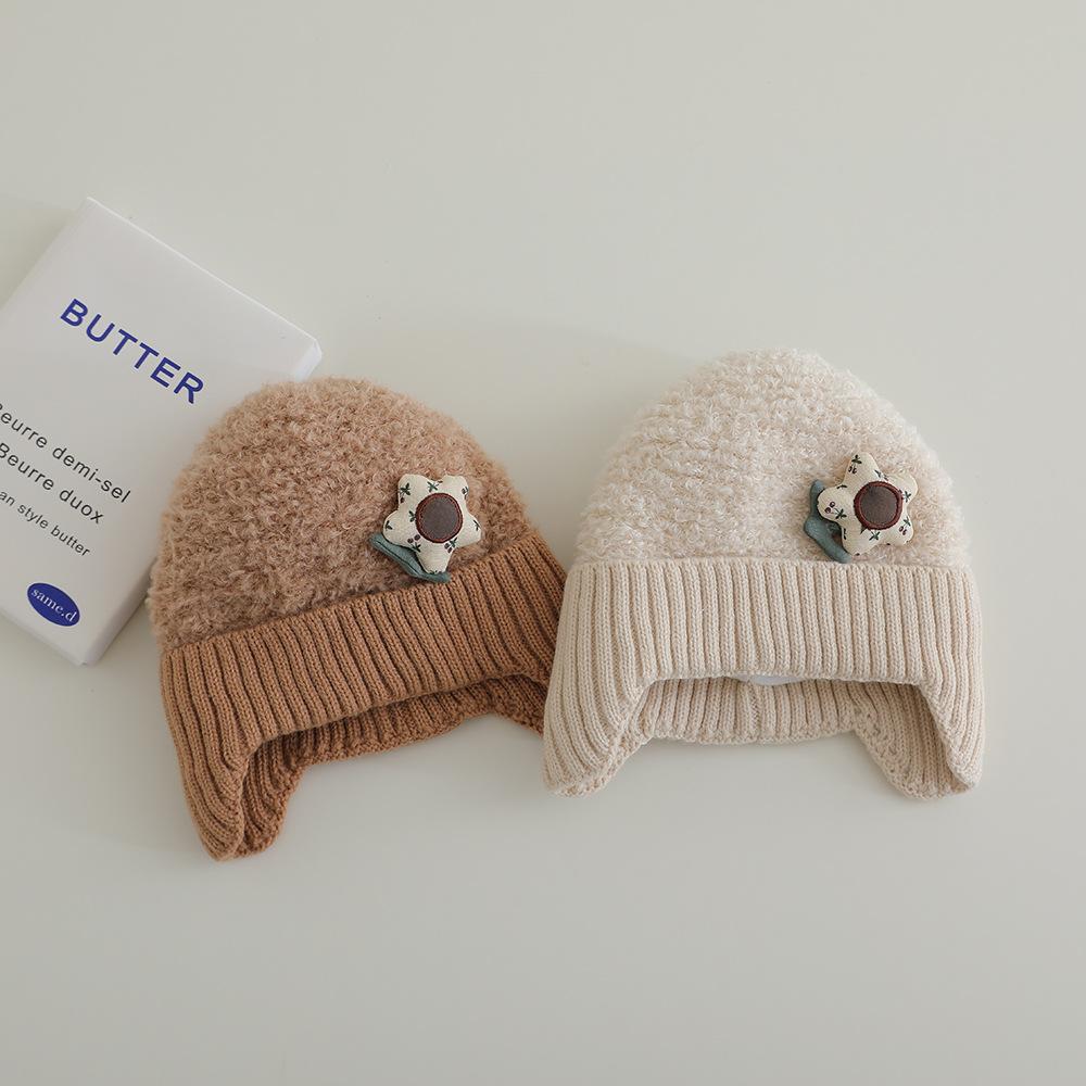 Nuevo gorro de punto de invierno para niños, gorro de algodón de felpa con diseño de oso de flores y protección para los oídos, gorro cálido para niños y niñas de 2 a 7 años