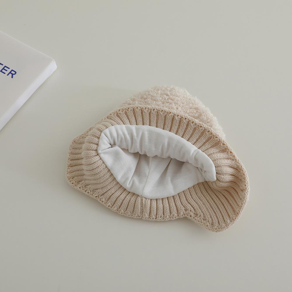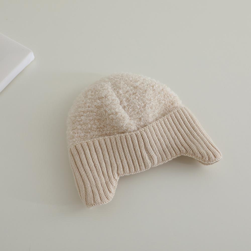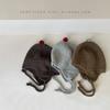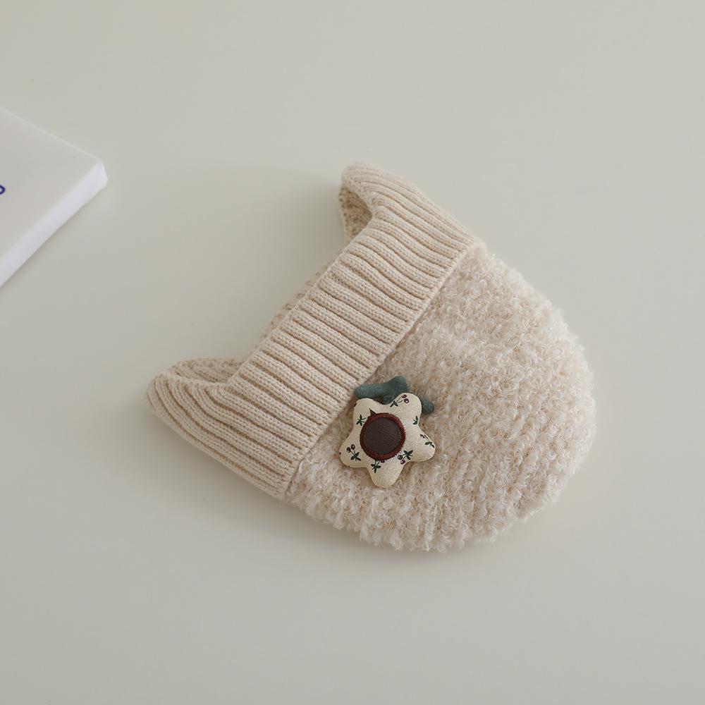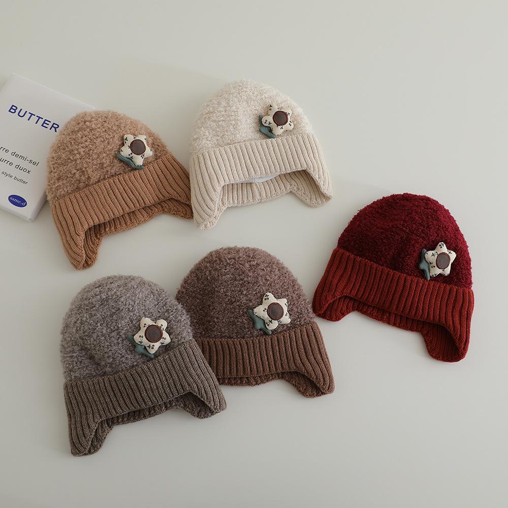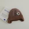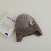 Nuevo gorro de punto de invierno para niños, gorro de algodón de felpa con diseño de oso de flores y protección para los oídos, gorro cálido para niños y niñas de 2 a 7 años