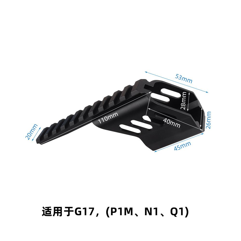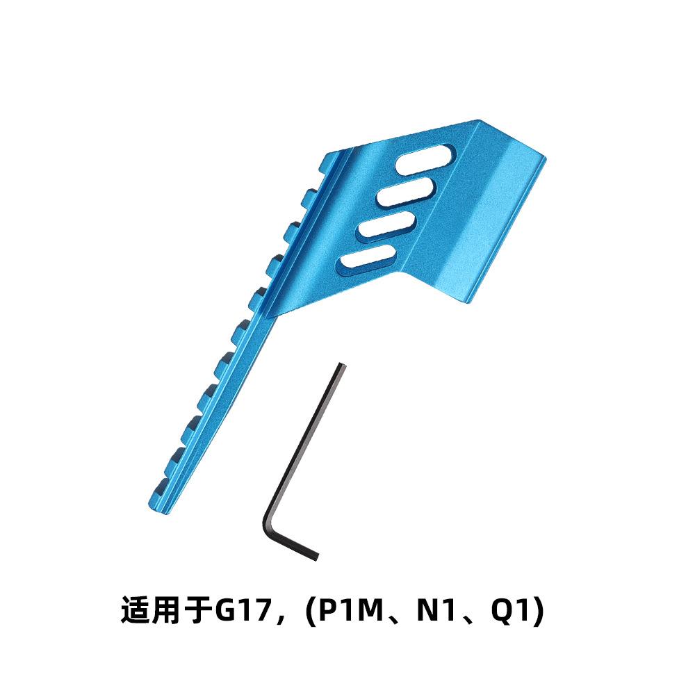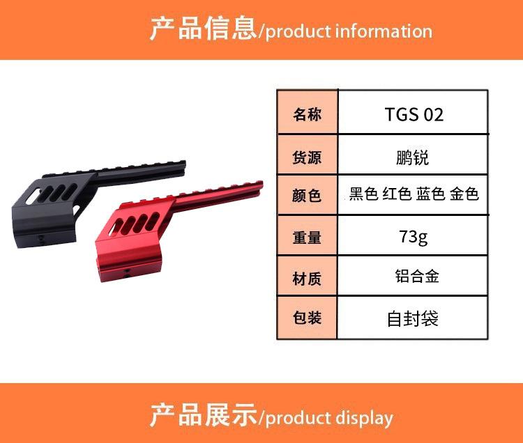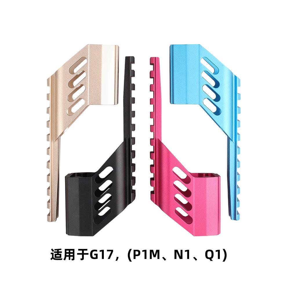 Descripción: Aluminio anodizado de alta calidad para mecanizado, adecuado para entrenamiento serie G, con un accesorio inferior de 20 mm Material: aleación de aluminio Peso bruto: 73g Colores: Negro, Dorado, Rojo, Azul