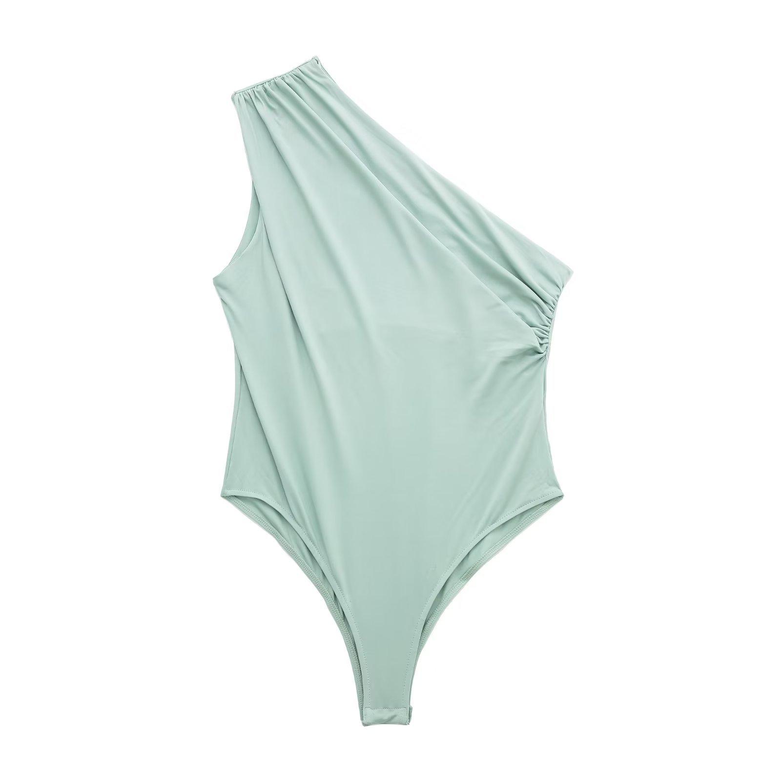 ZR Comercio Exterior Venta al por mayor Ropa de mujer estilo europeo y americano Mono de diseño asimétrico con decoración de pliegues franceses 0264062