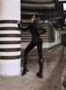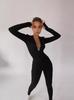 Mono de color sólido de moda con cuello alto, manga larga y hombros descubiertos con diseño de chica sexy europea y americana
