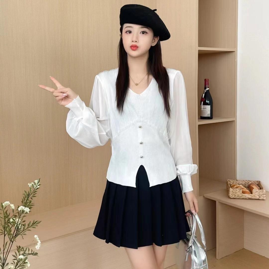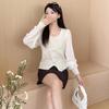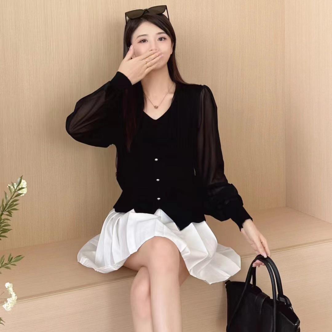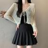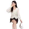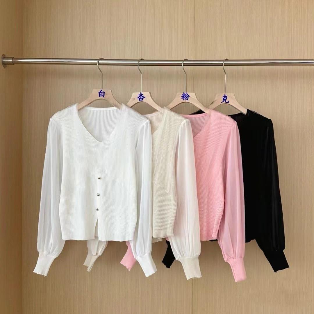 Suéter de punto de verano nuevo estilo coreano de moda elegante cuello en V hebilla costura de malla manga corta chica sexy top mujer moda