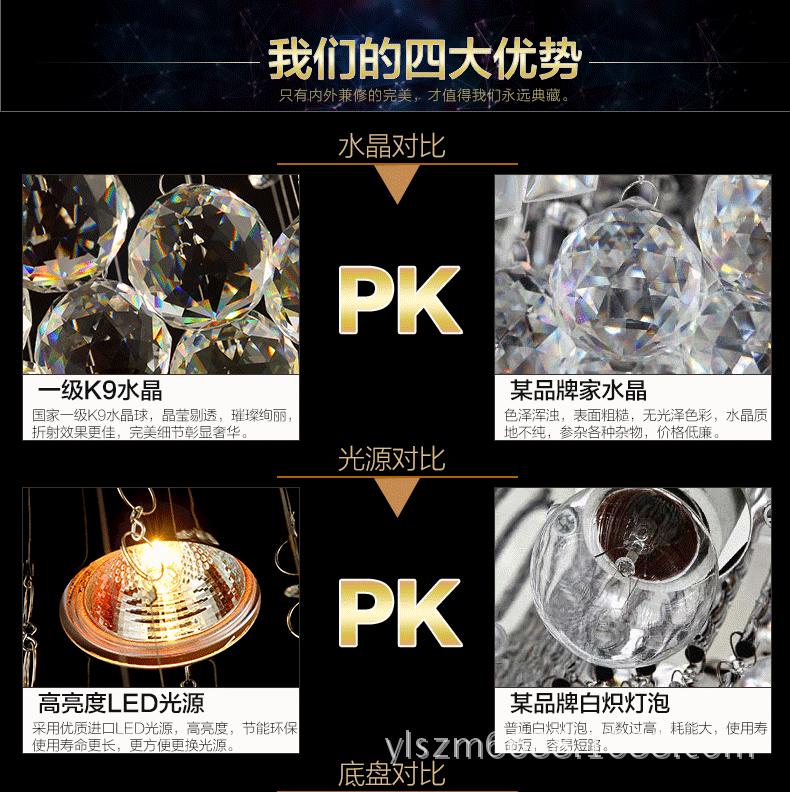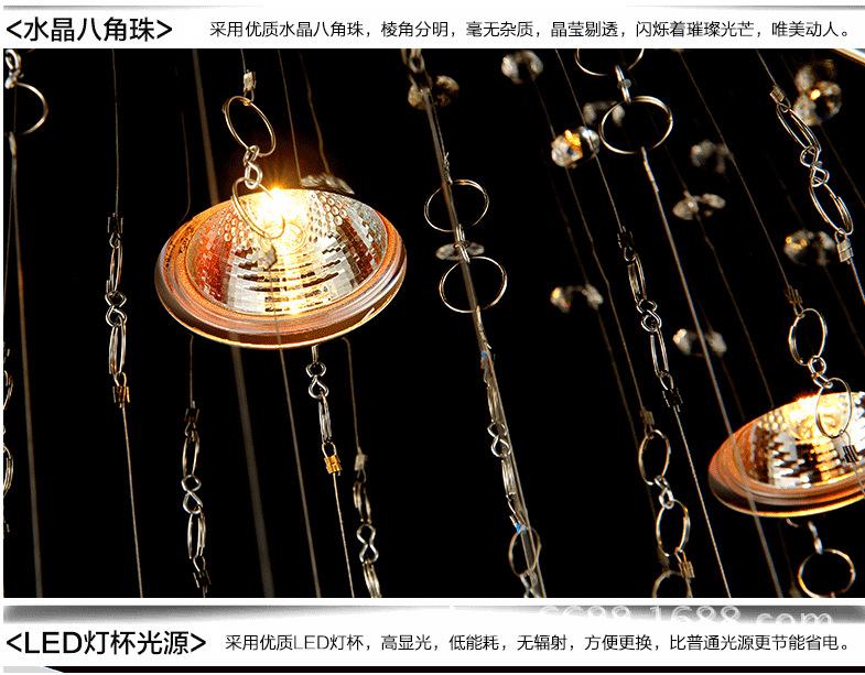 Material: Cristal K9 de grado 1 + acero inoxidable de alta calidad + cable de acero