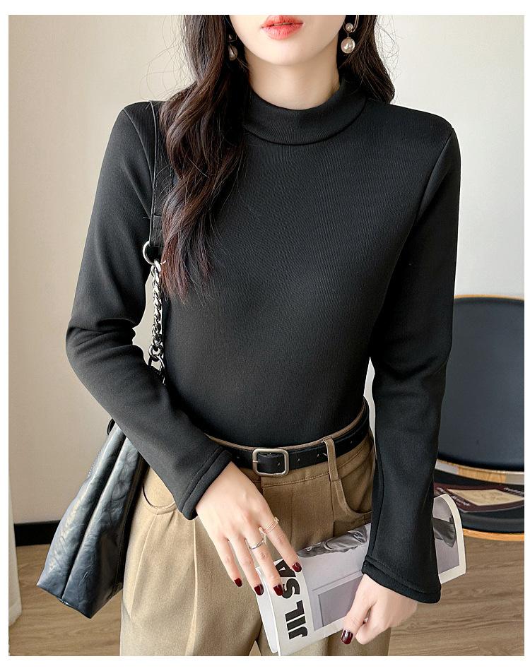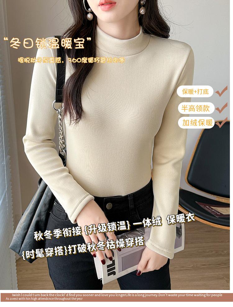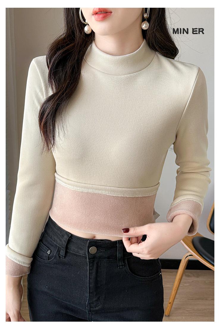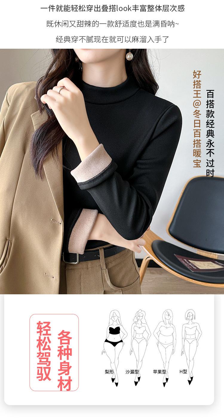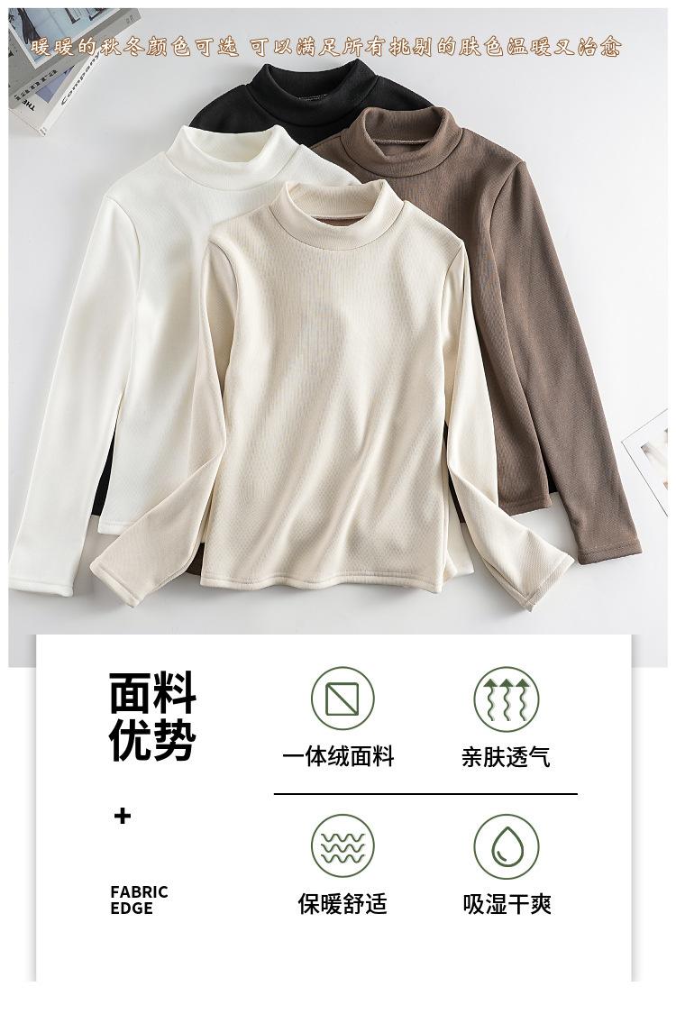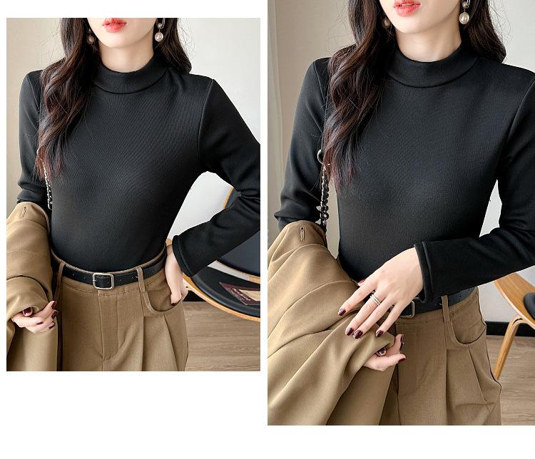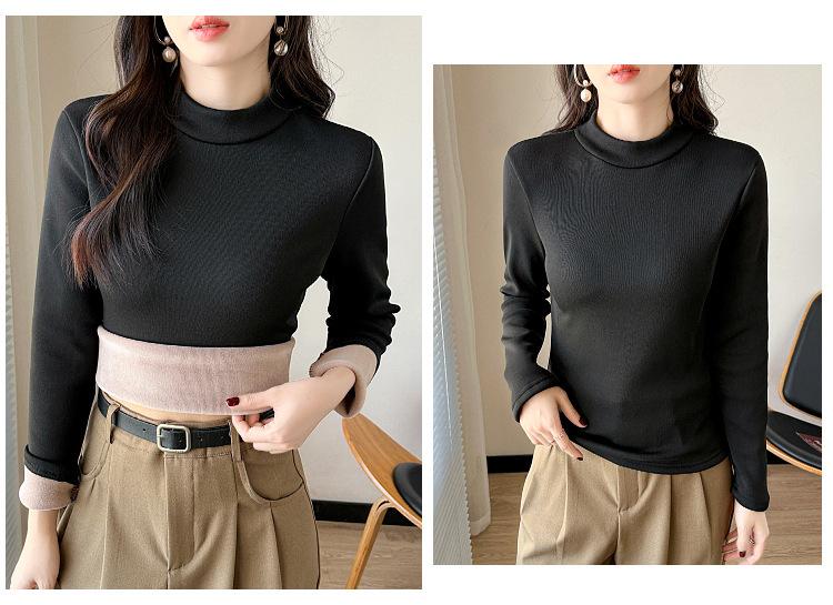 Camiseta de Fondo de Terciopelo para Mujer, Otoño e Invierno Cuello Alto Medio, Ropa Térmica Engrosada, Estilo Pequeño Fragante Interior Manga Larga Nuevo Top 2025