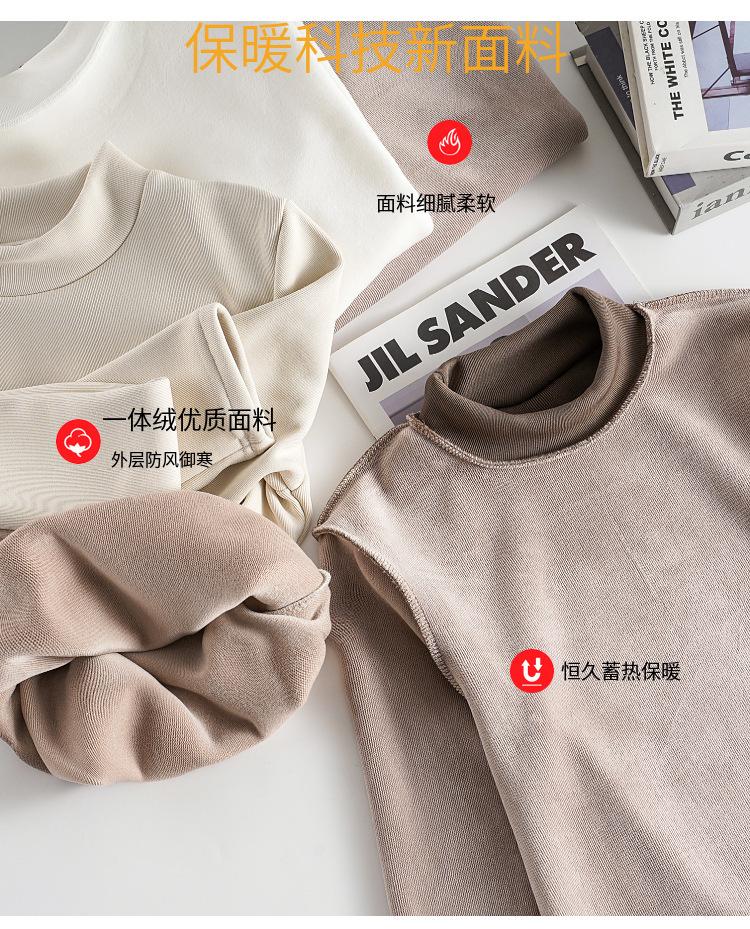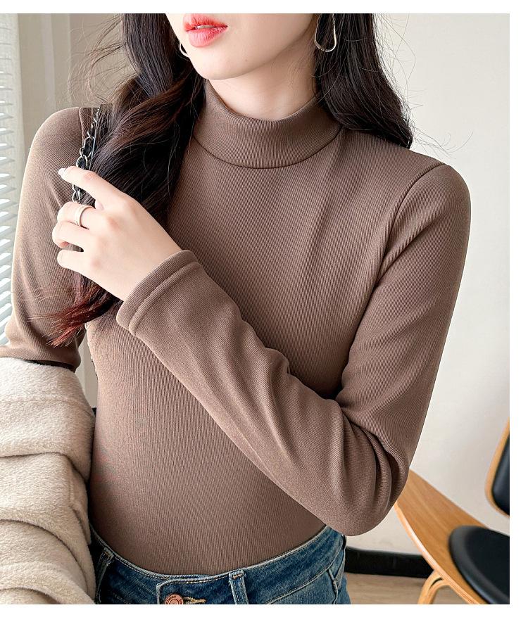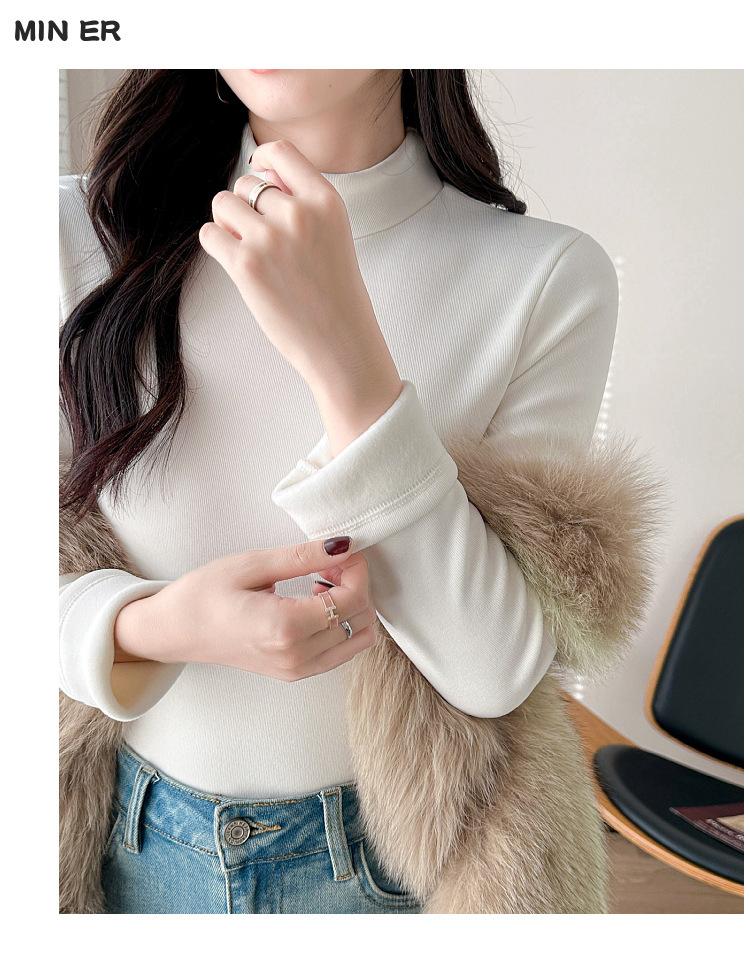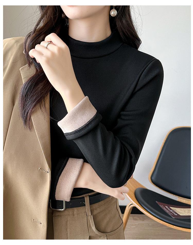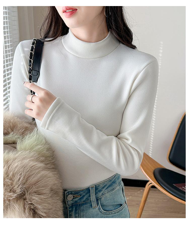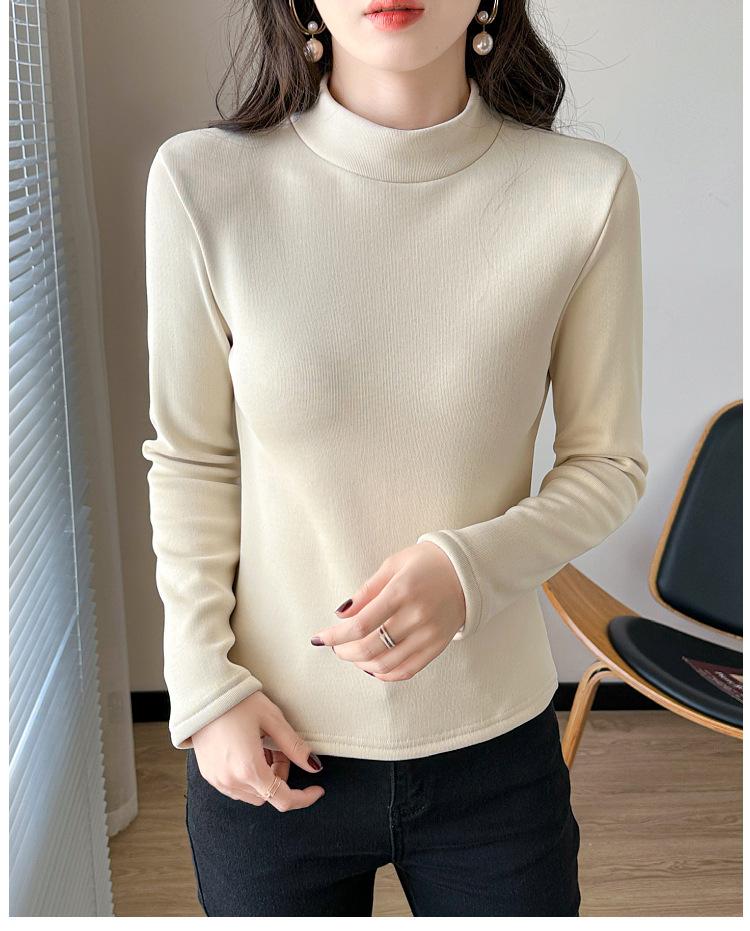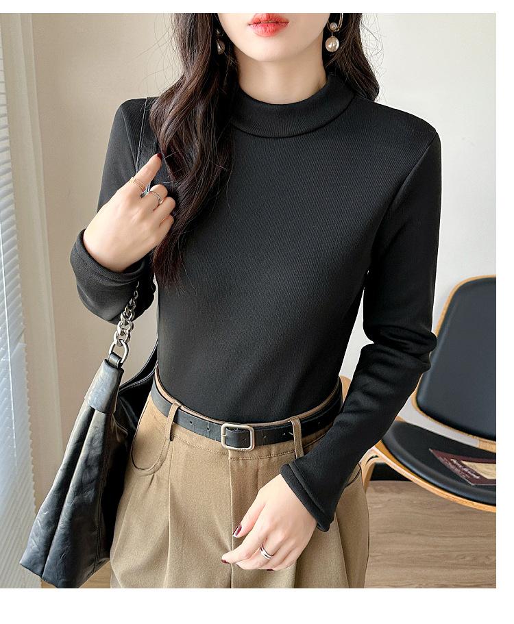 Camiseta de Fondo de Terciopelo para Mujer, Otoño e Invierno Cuello Alto Medio, Ropa Térmica Engrosada, Estilo Pequeño Fragante Interior Manga Larga Nuevo Top 2025