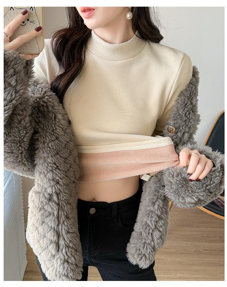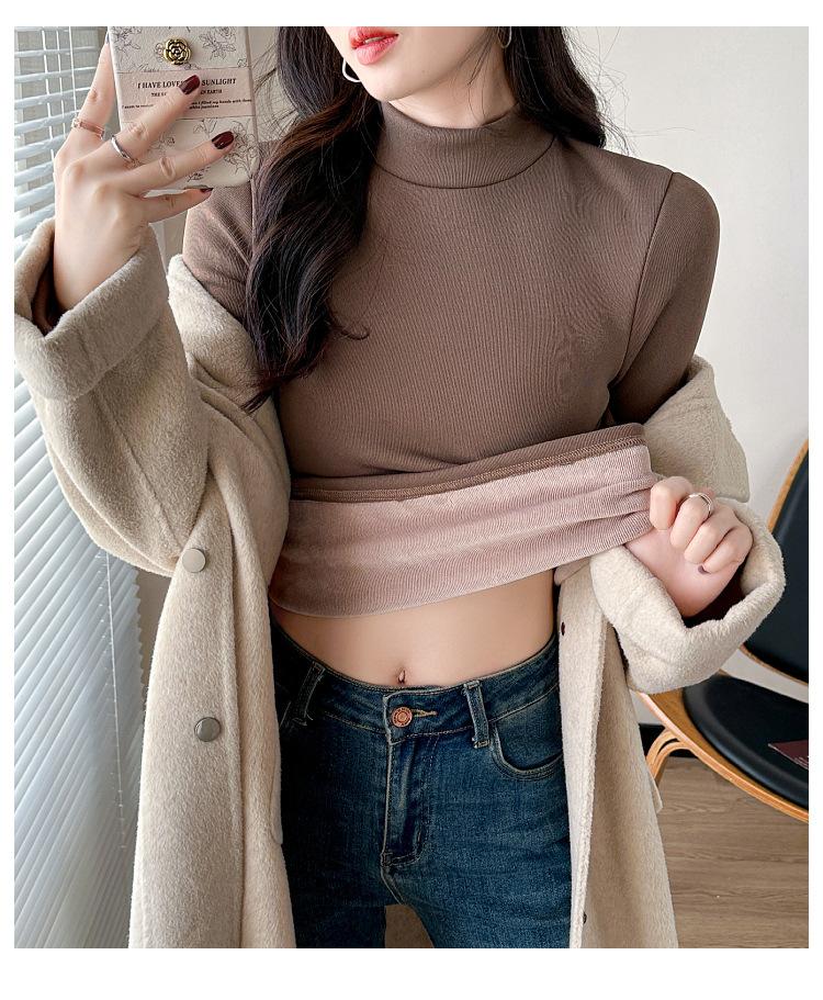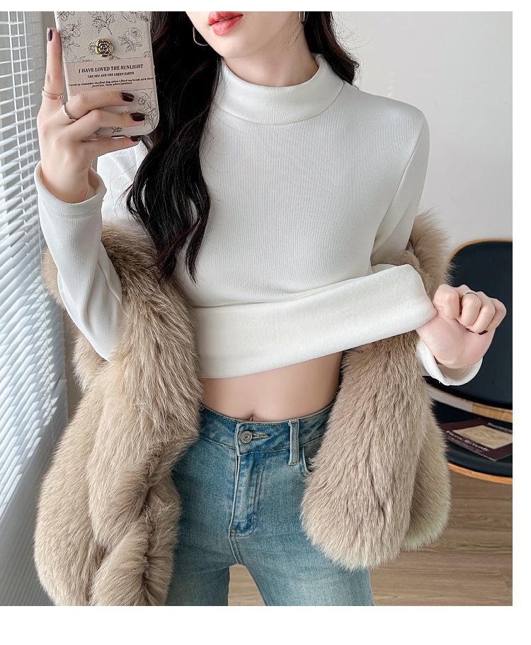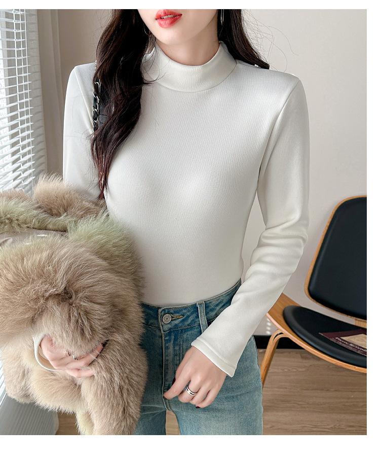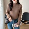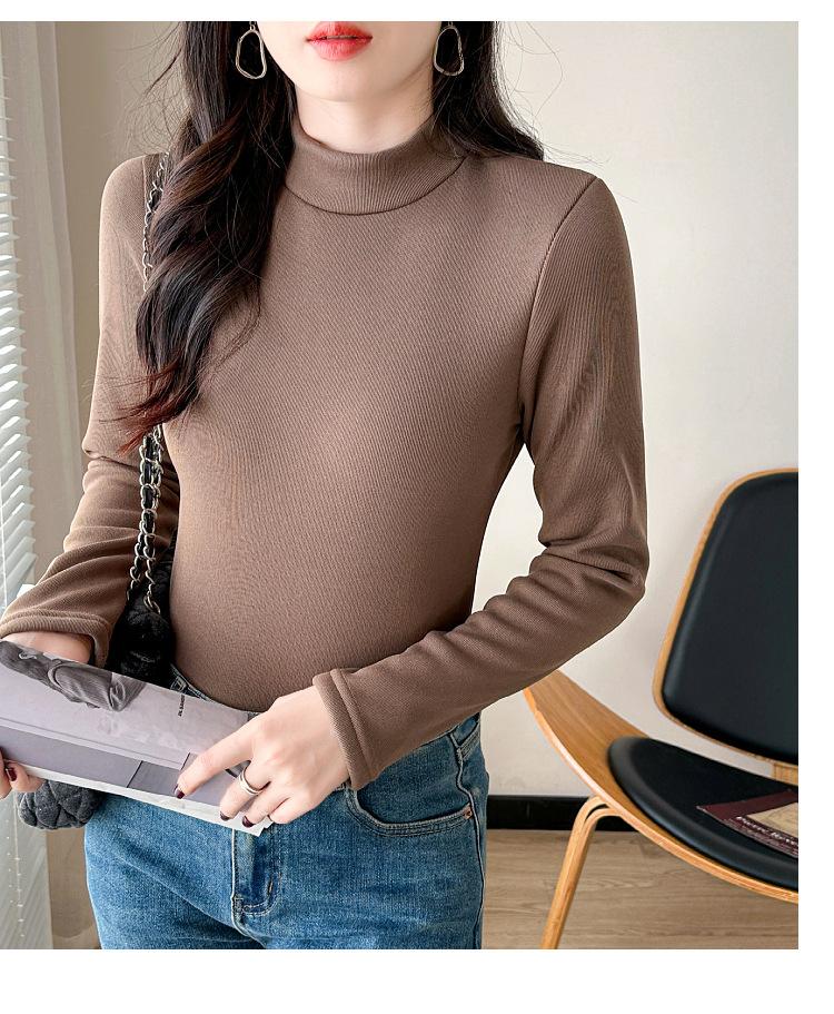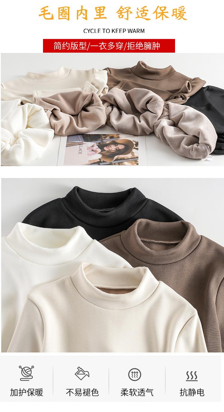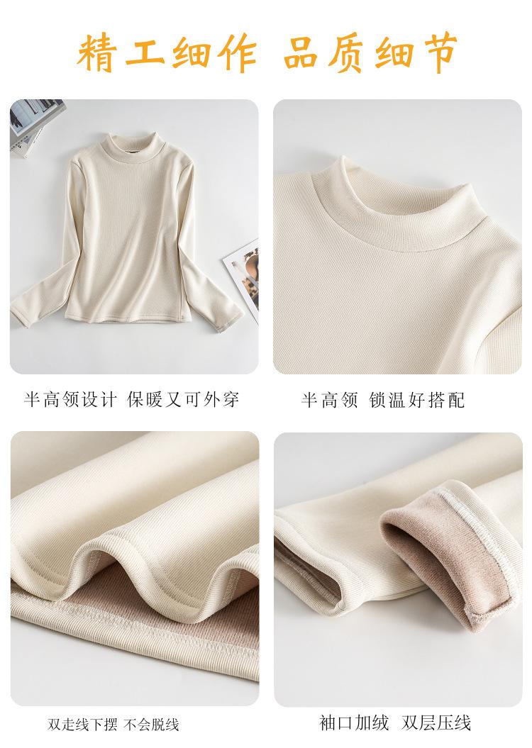 Camiseta de Fondo de Terciopelo para Mujer, Otoño e Invierno Cuello Alto Medio, Ropa Térmica Engrosada, Estilo Pequeño Fragante Interior Manga Larga Nuevo Top 2025
