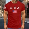 Camiseta estampada de manga corta con cuello redondo y bandera estadounidense para hombre (2023)