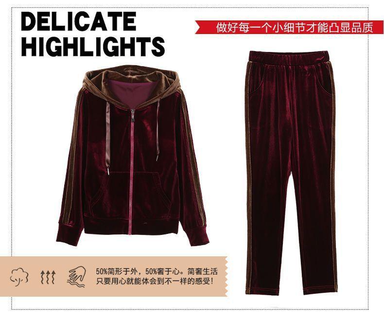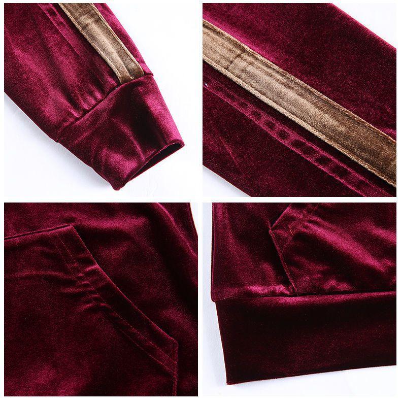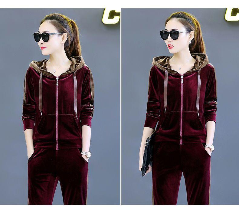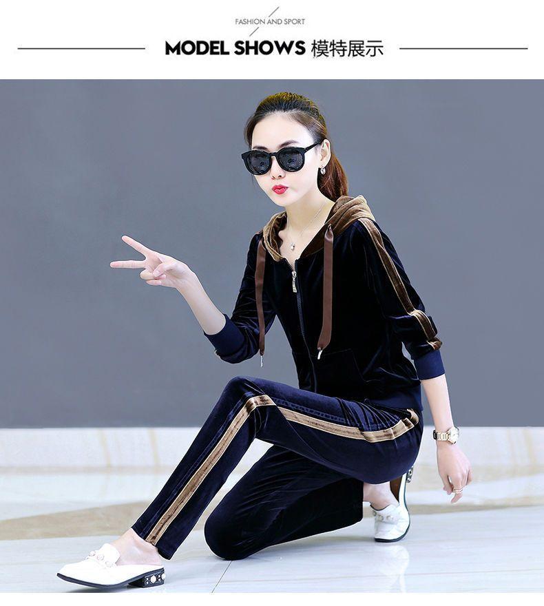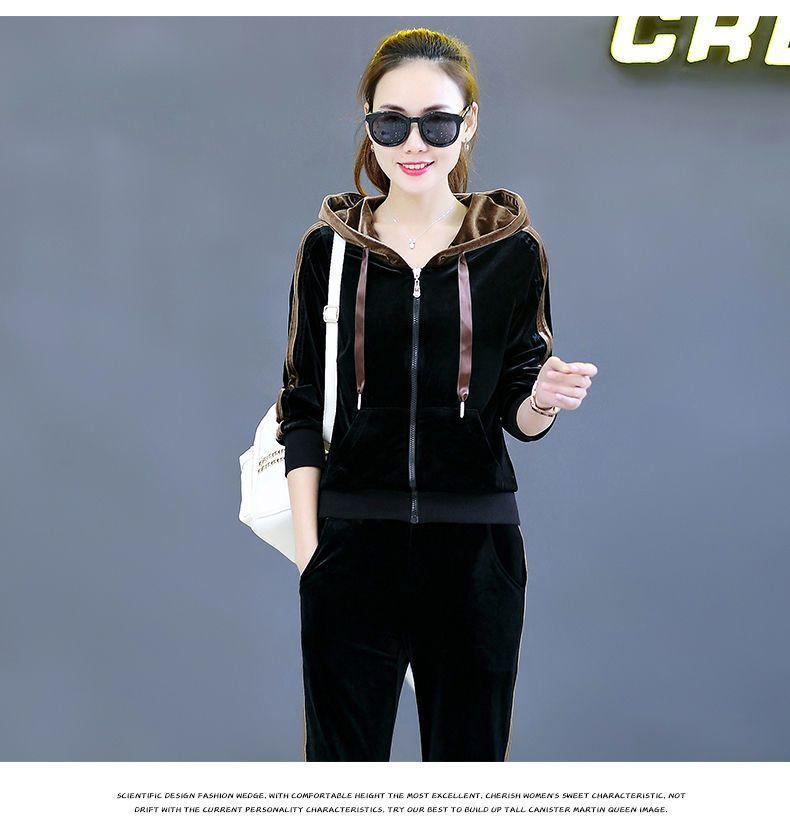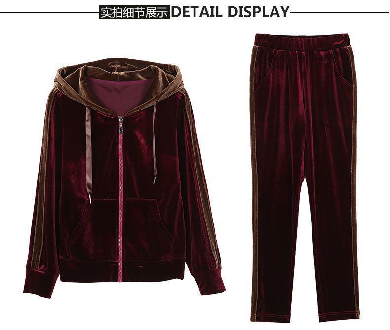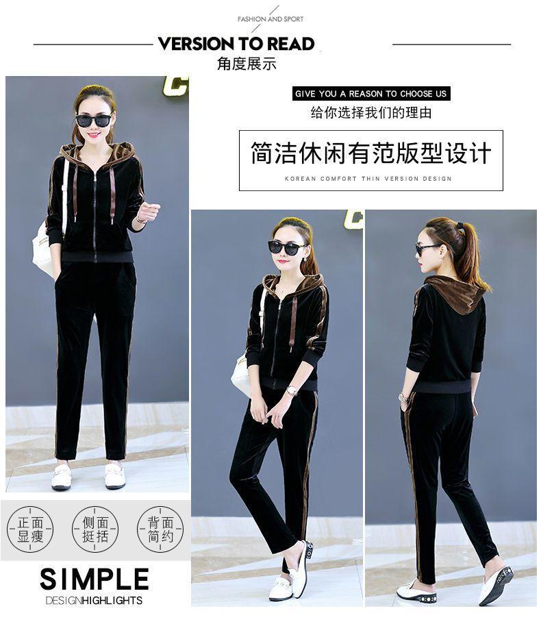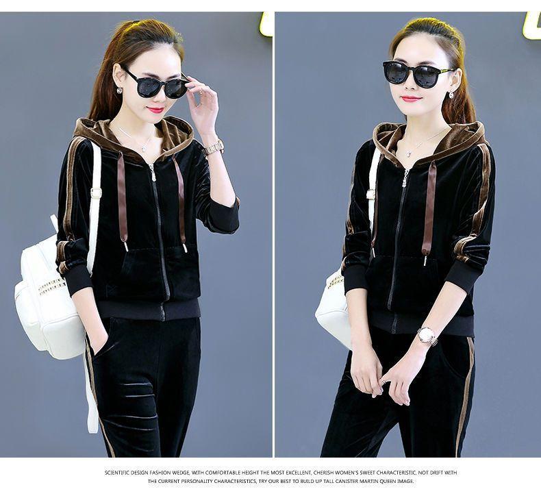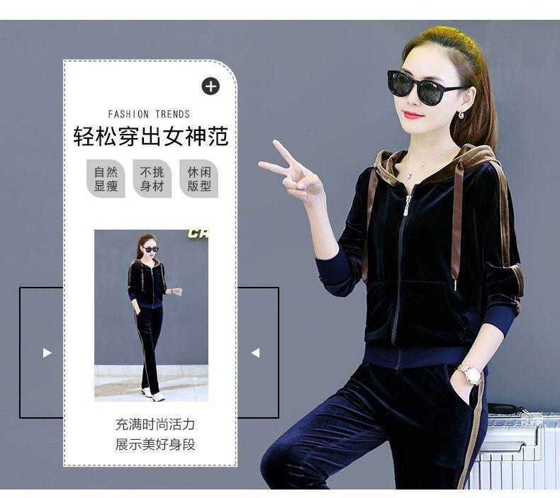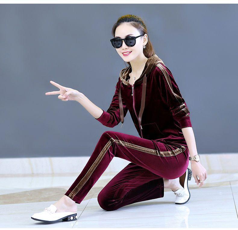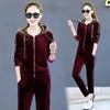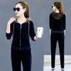 Traje de terciopelo dorado para mujer, primavera y otoño de 2024, nuevo estilo coreano, talla grande, holgado, informal, con capucha, ropa deportiva de dos piezas a la moda.