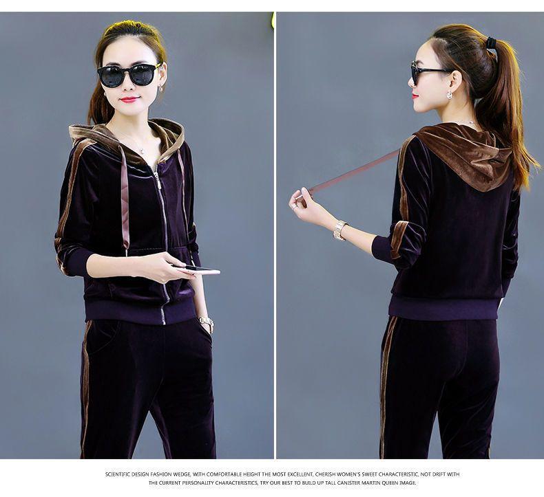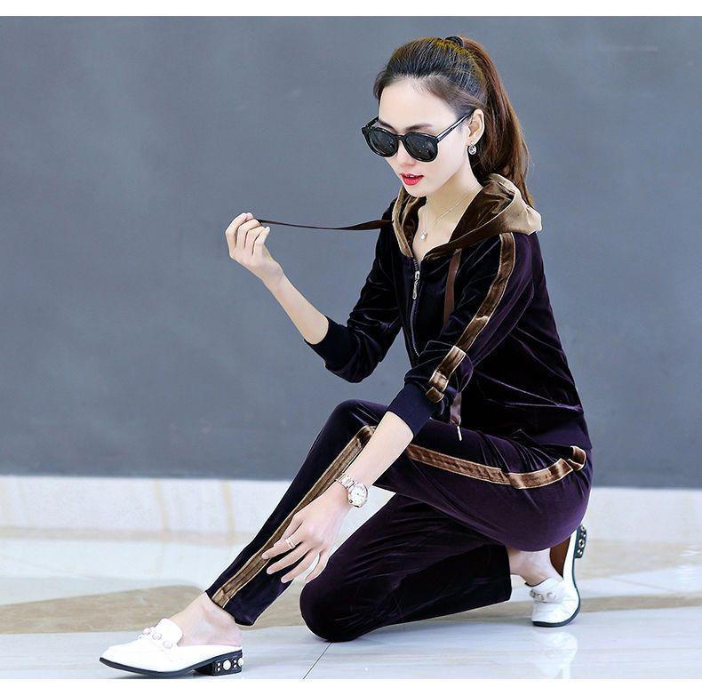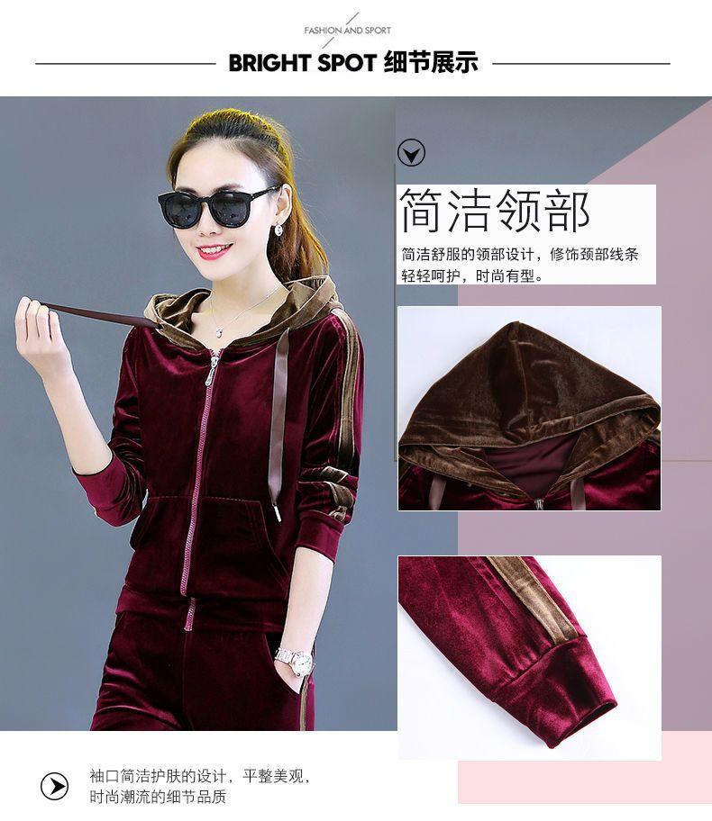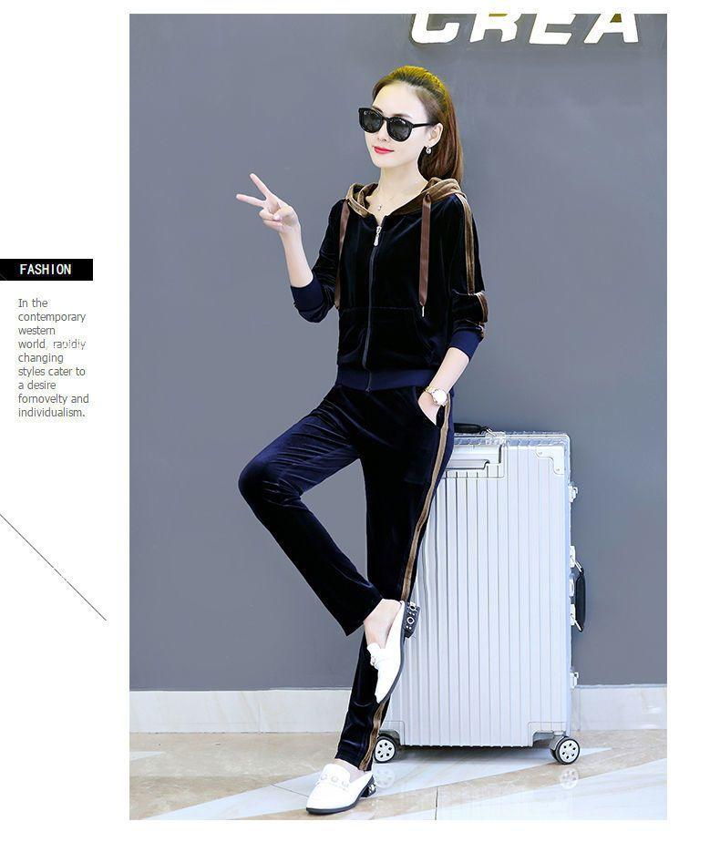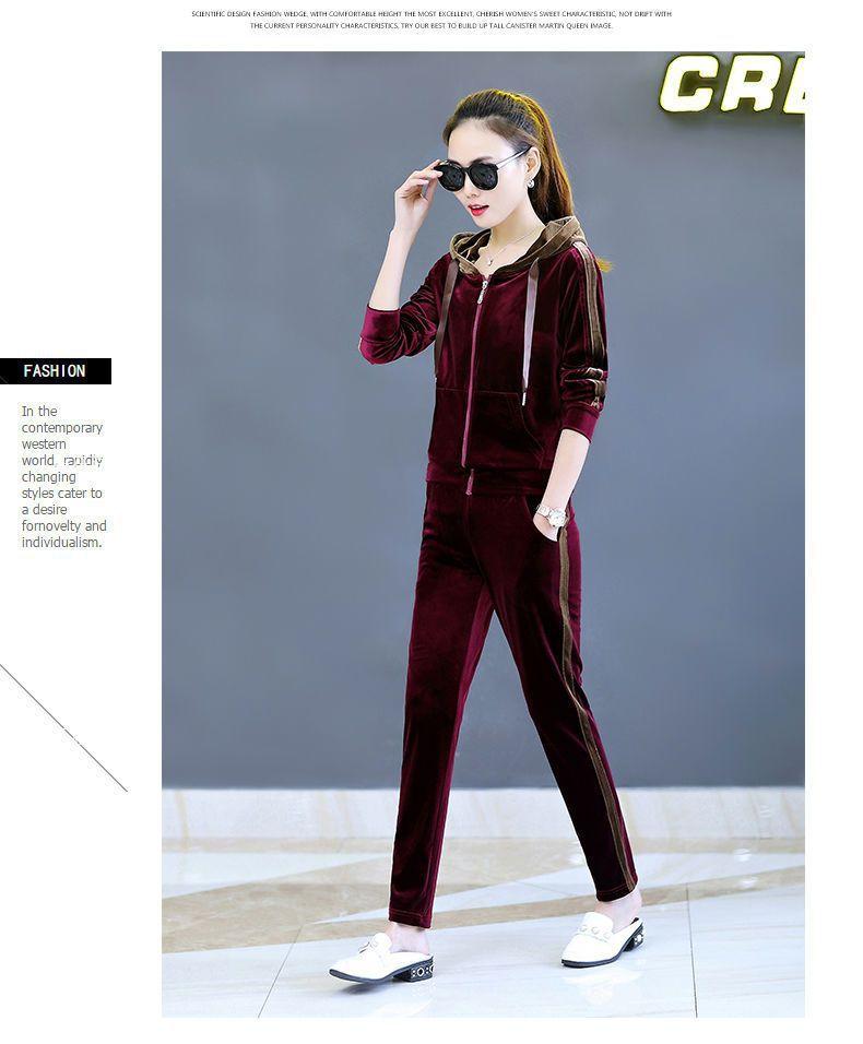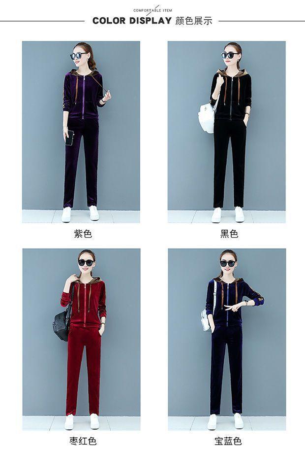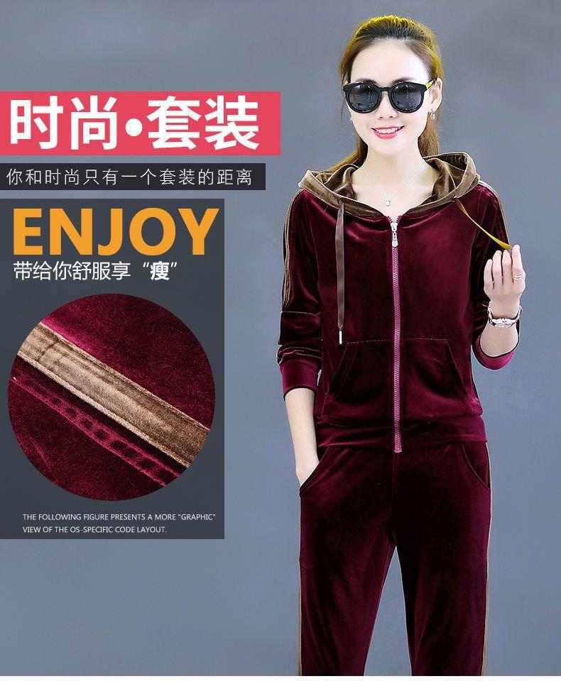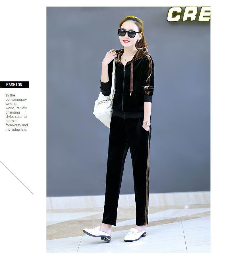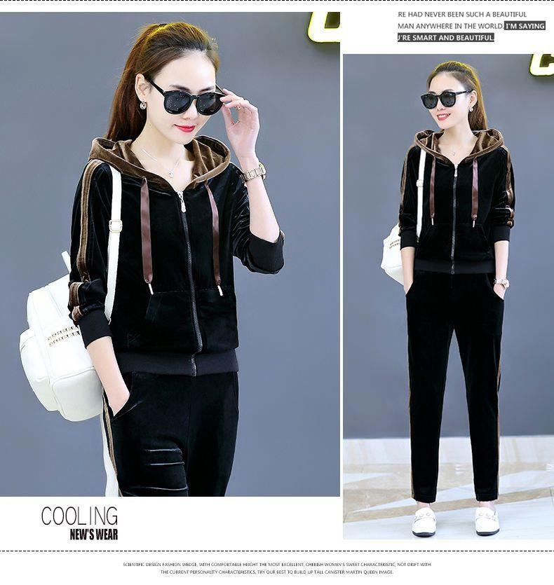 Traje de terciopelo dorado para mujer, primavera y otoño de 2024, nuevo estilo coreano, talla grande, holgado, informal, con capucha, ropa deportiva de dos piezas a la moda.
