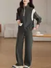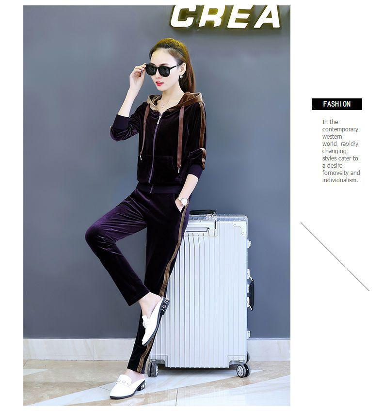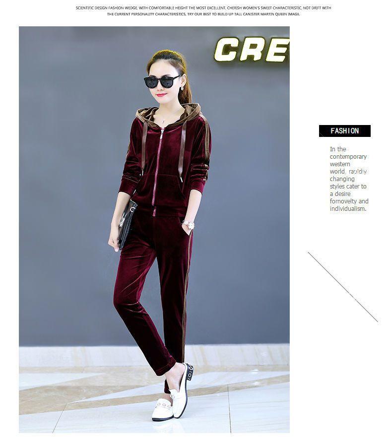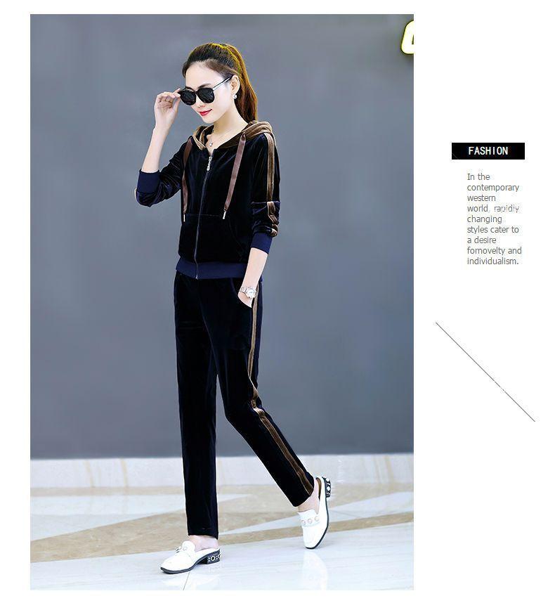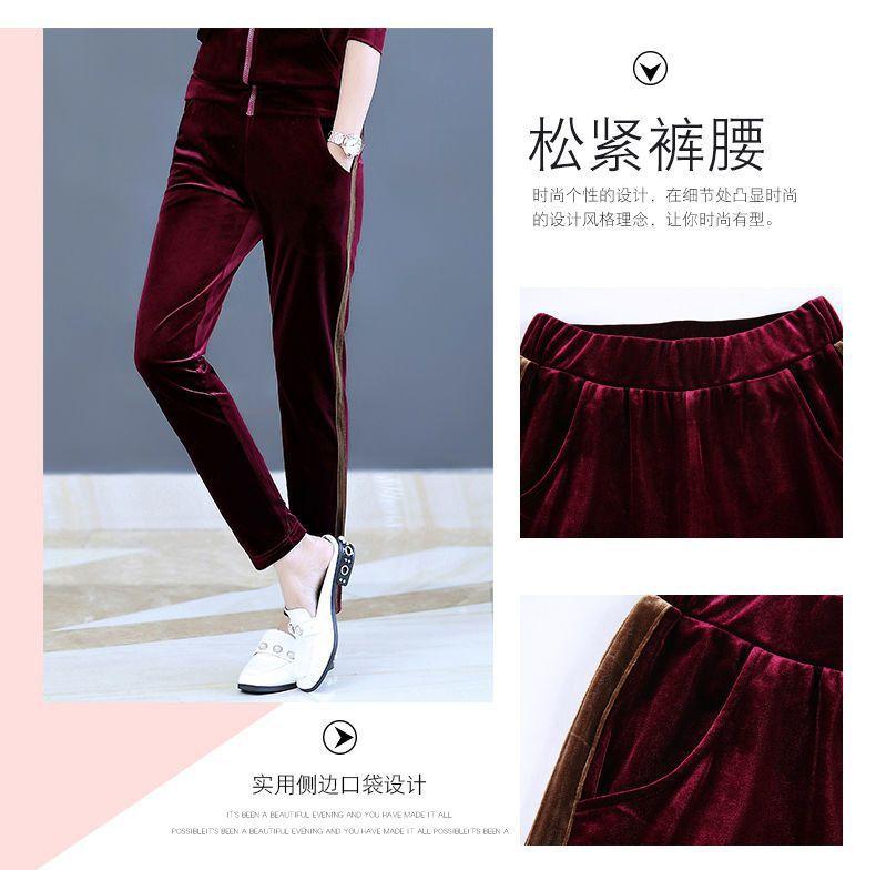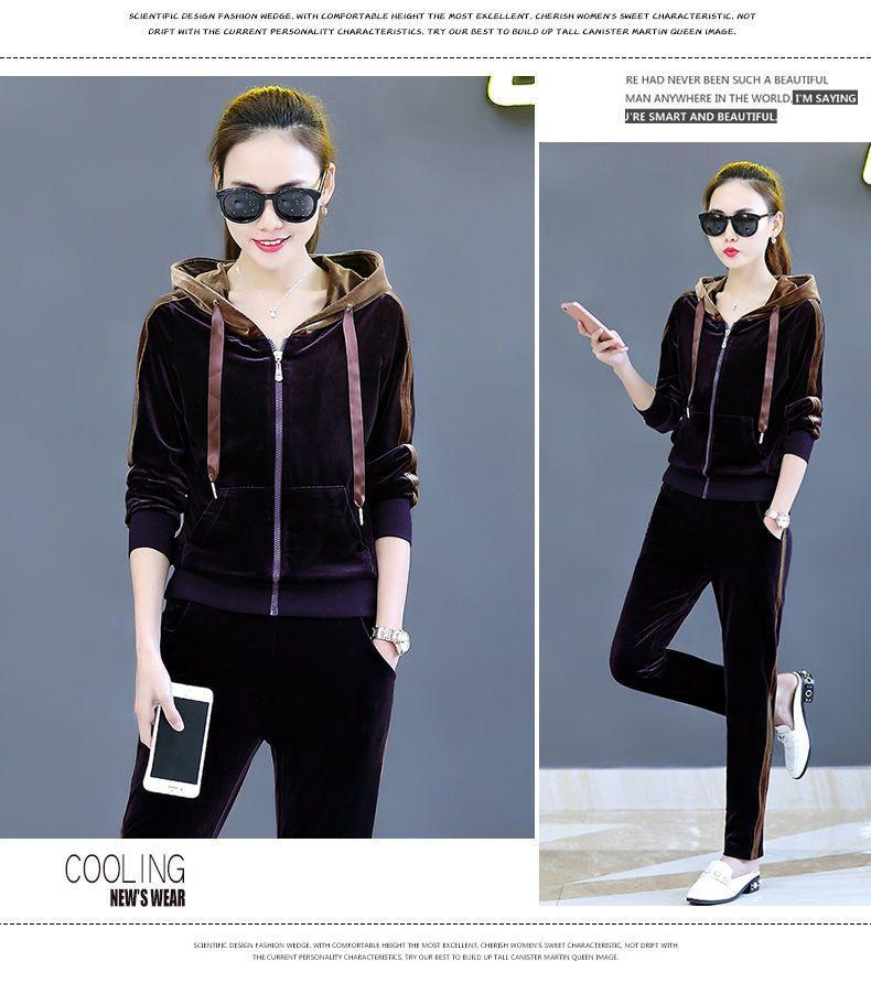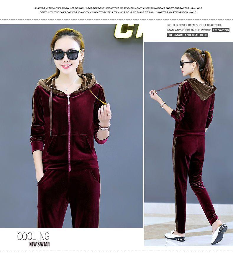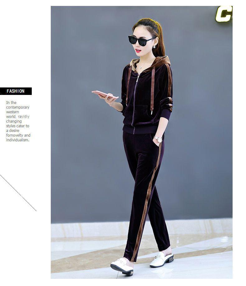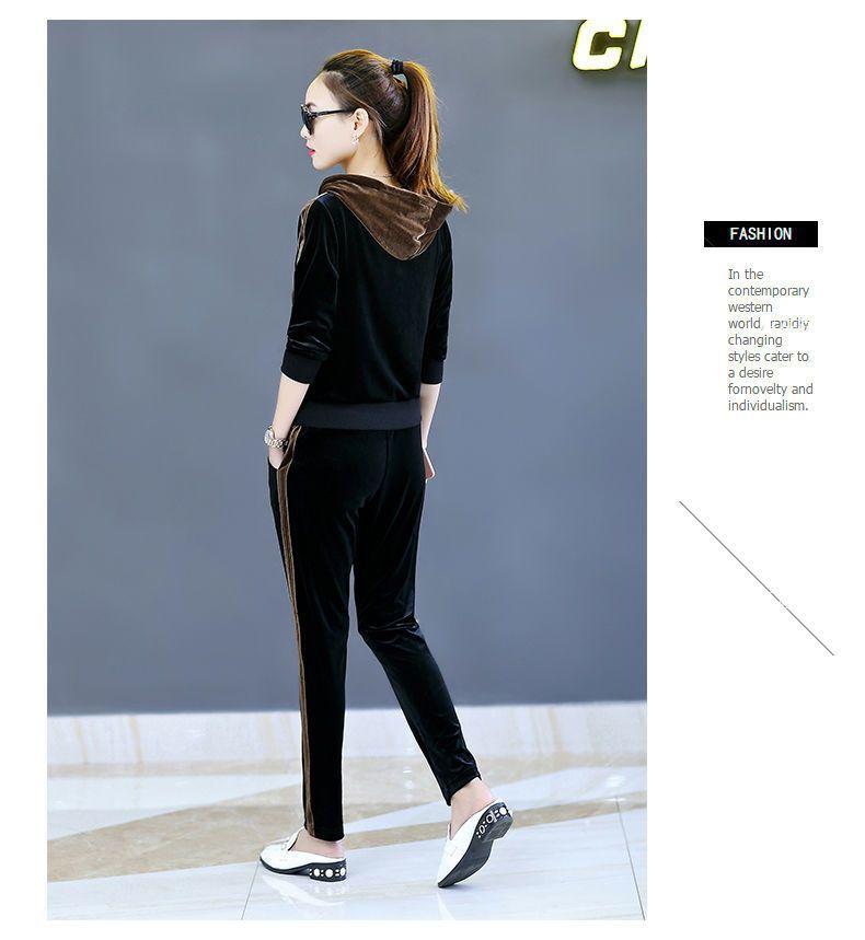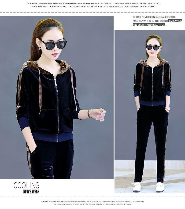 Traje de terciopelo dorado para mujer, primavera y otoño de 2024, nuevo estilo coreano, talla grande, holgado, informal, con capucha, ropa deportiva de dos piezas a la moda.