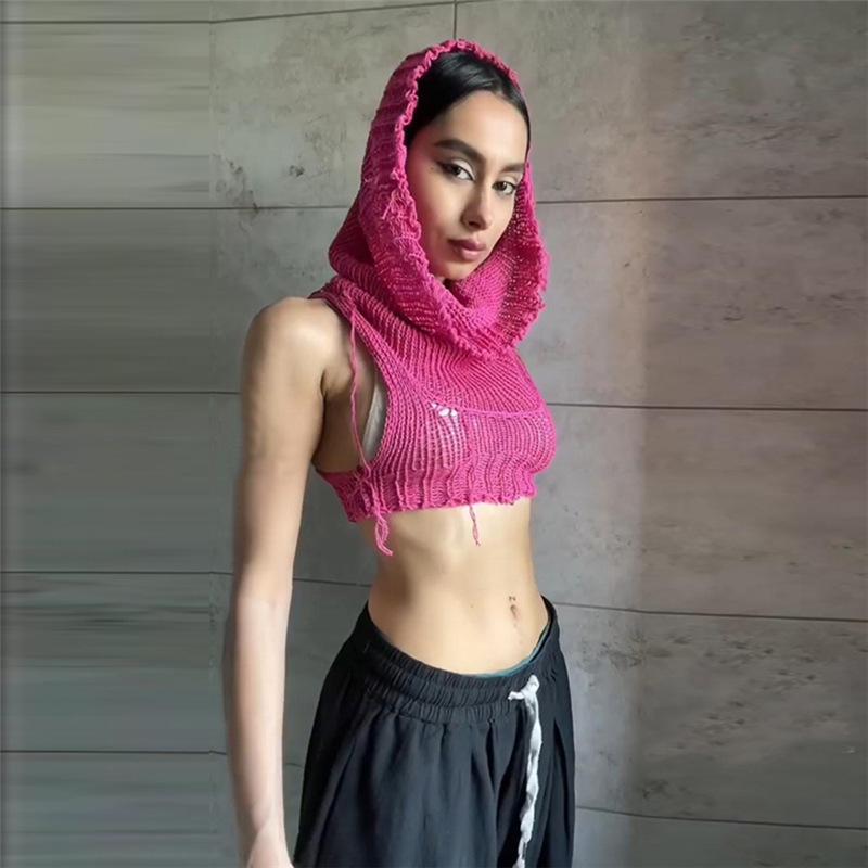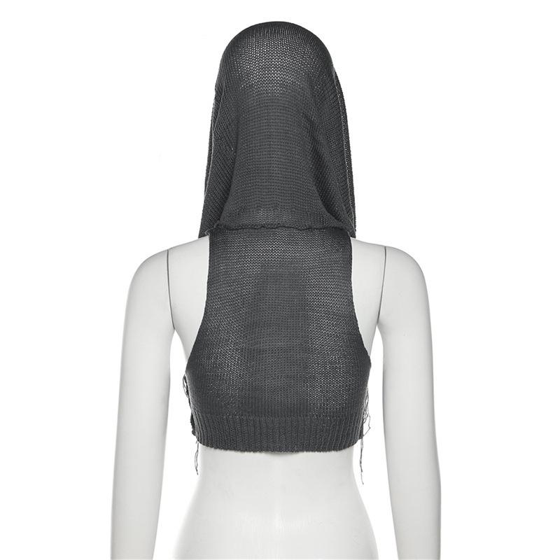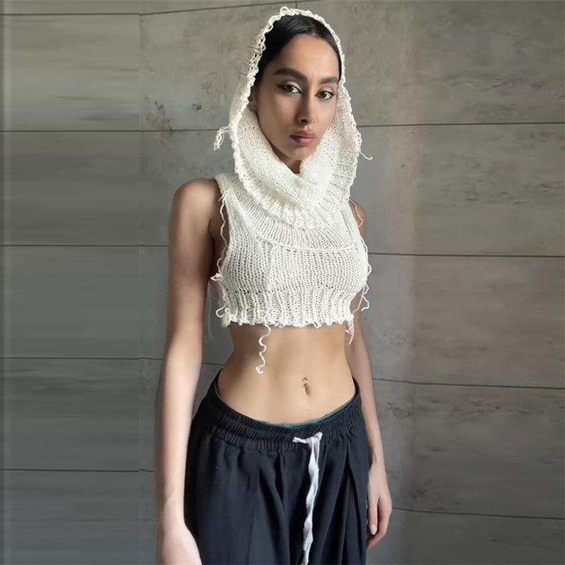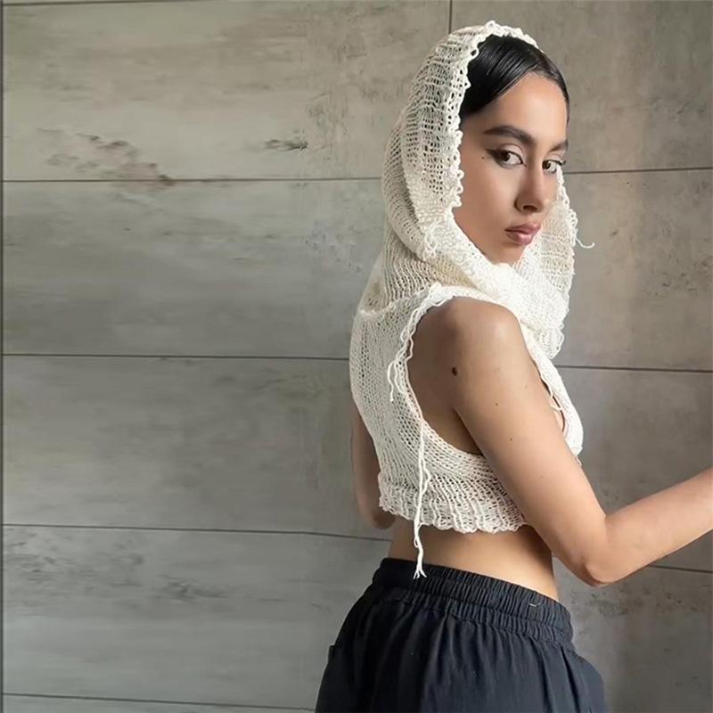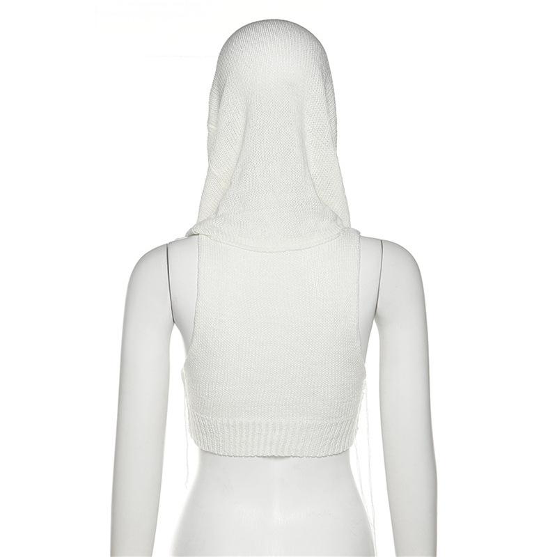 Suéter interior de punto liso sin mangas con capucha para mujer, tendencia de moda de otoño 2024, transfronterizo europeo y americano
