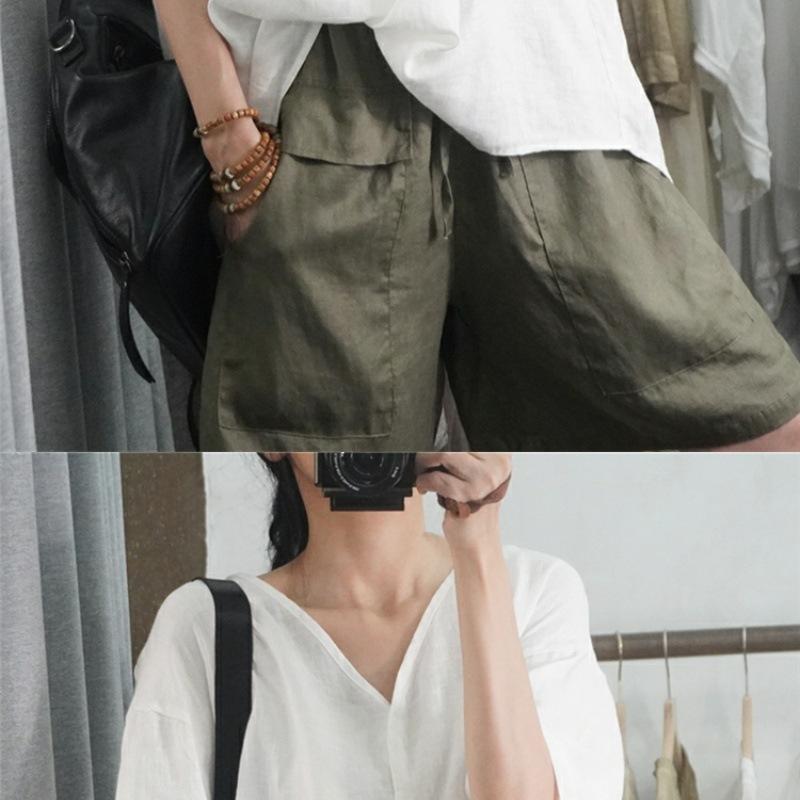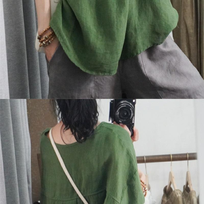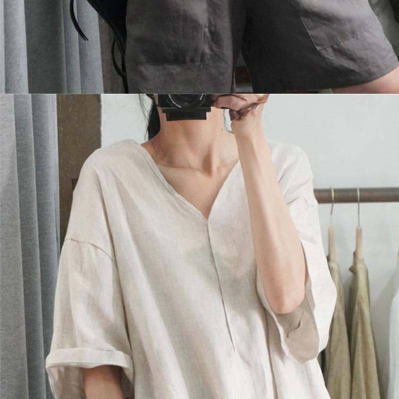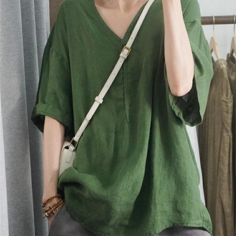 Camisa informal de media manga para mujer, blusa holgada de algodón y lino de talla grande, novedad de verano de 2024, venta al por mayor de comercio exterior para mujer