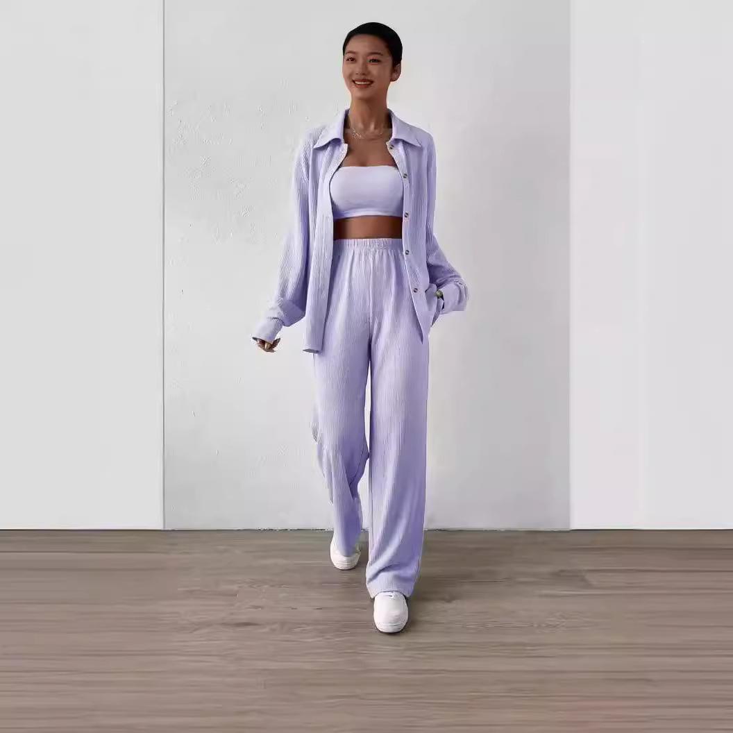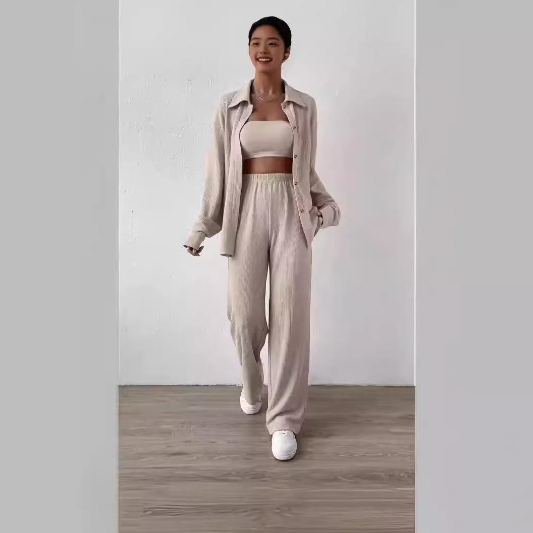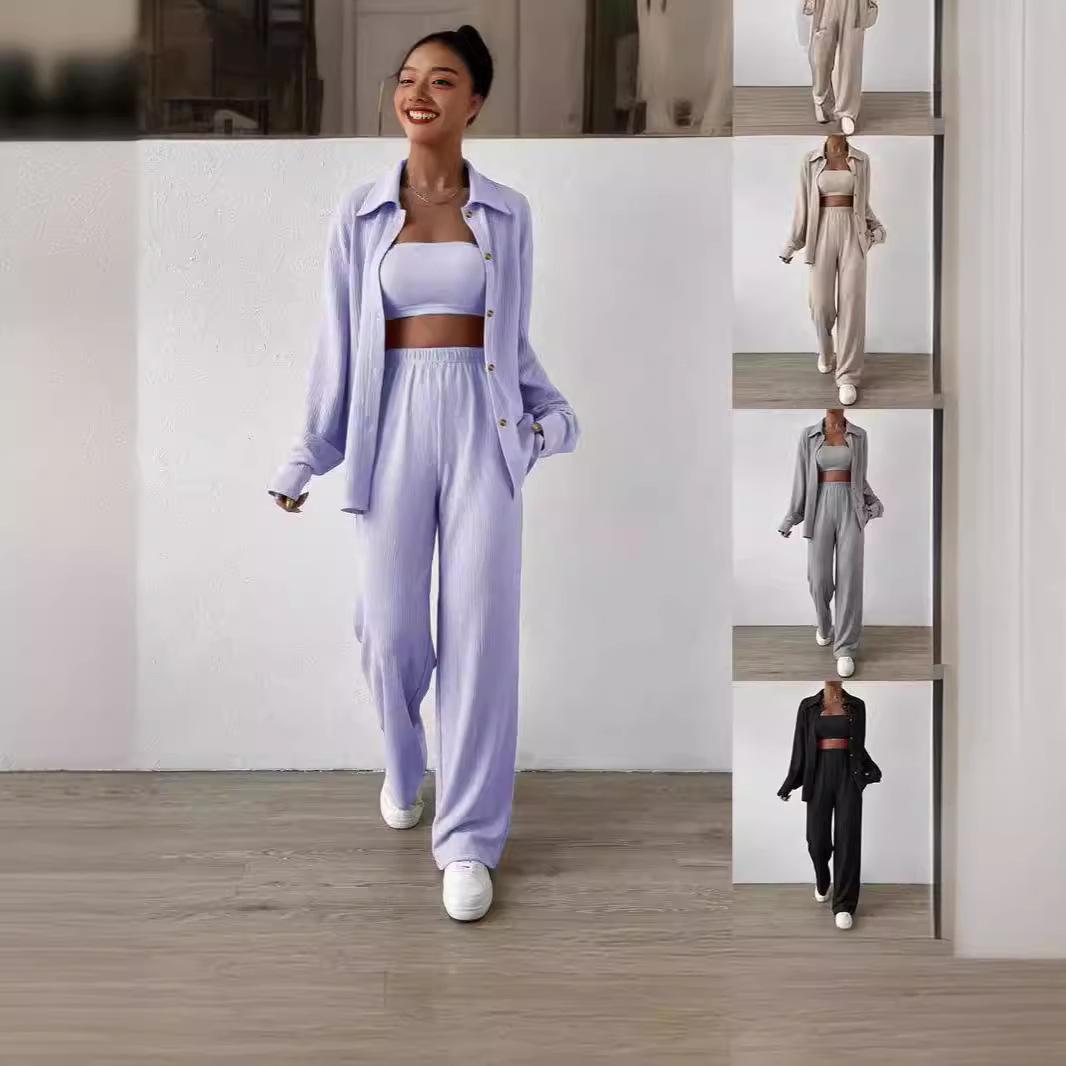 2024 Europeo y Americano Amazon TEMU Traje Cárdigan de Botones de Color Sólido para Mujer Moda Casual para Mujer Conjunto de Dos Piezas para Mujer Lote de Comercio Exterior para Mujer