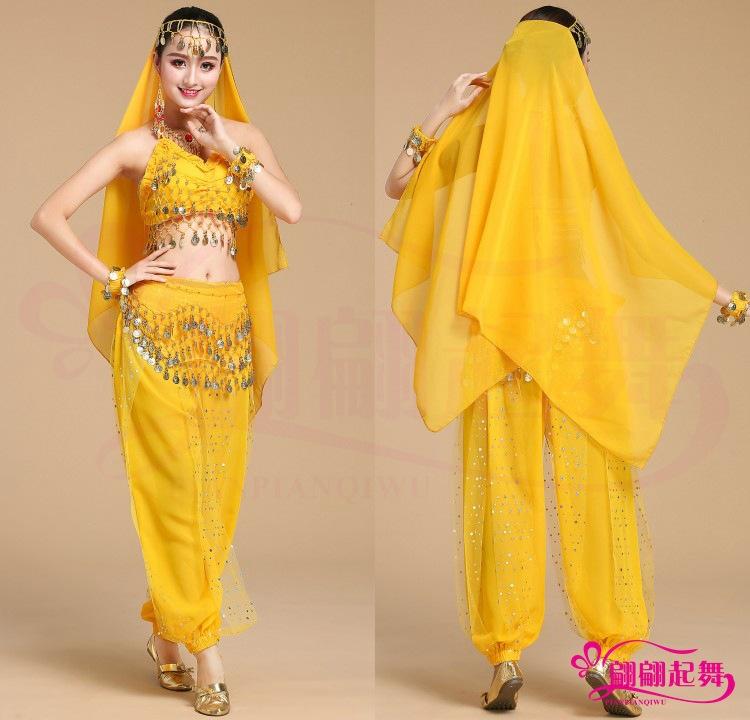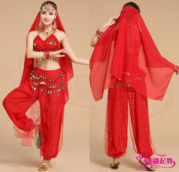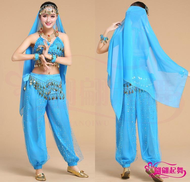 juego de cuatro piezas= Top + Pantalones + Cadena de Cintura + Velo para la Cabeza