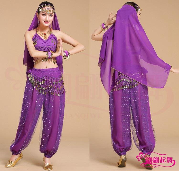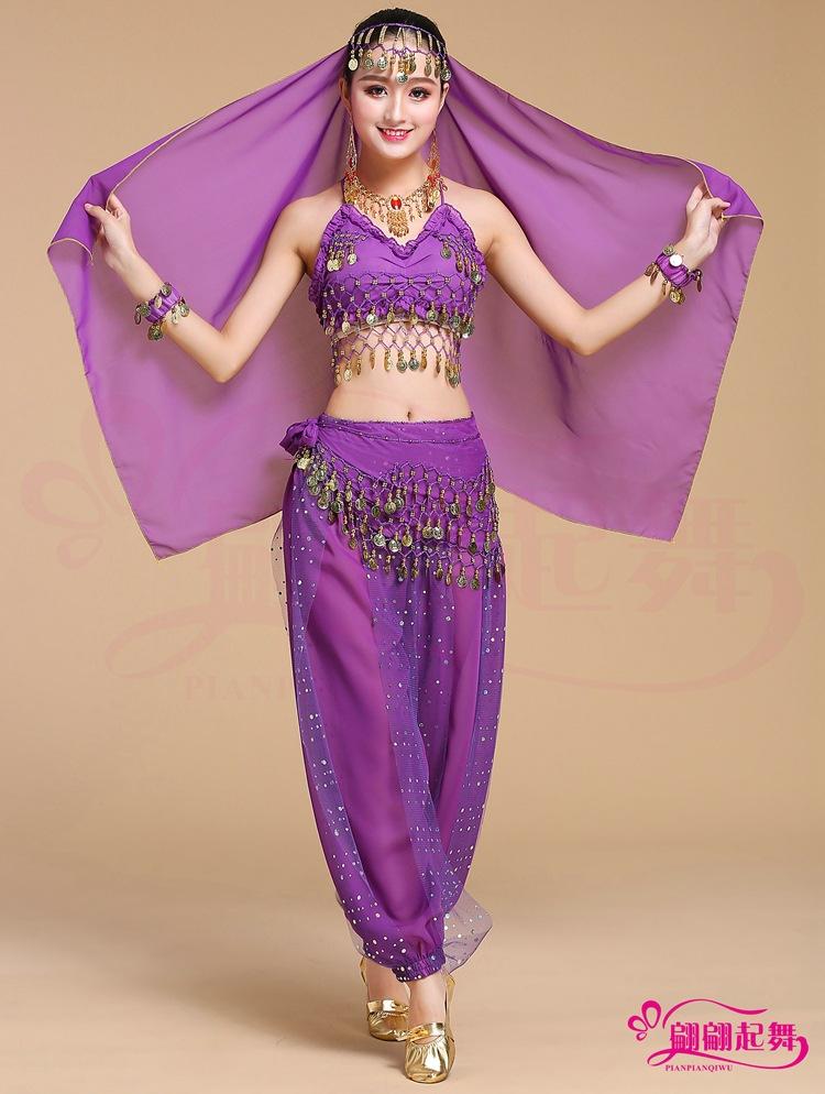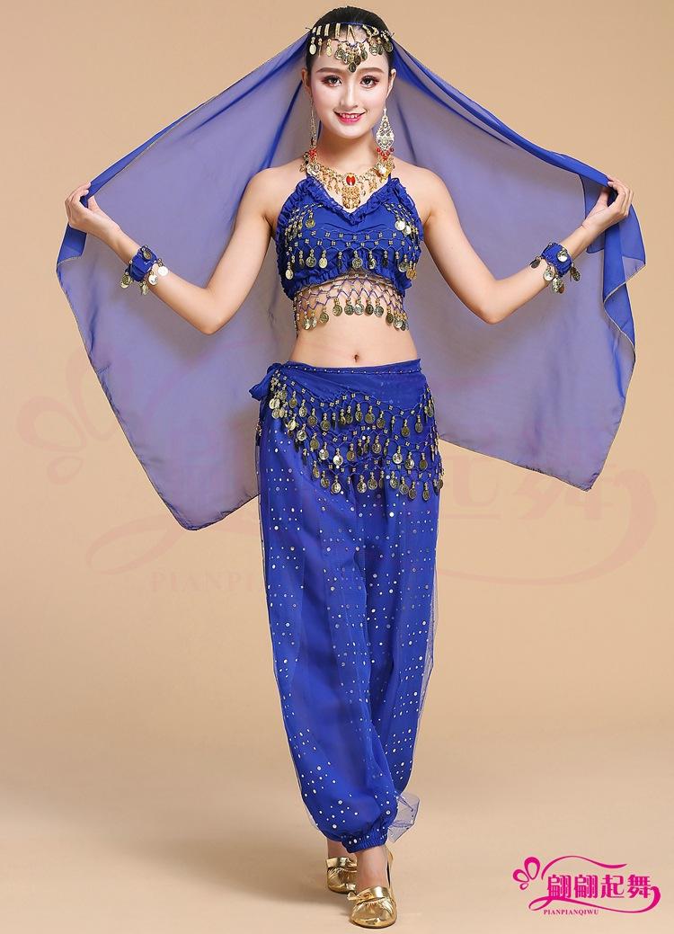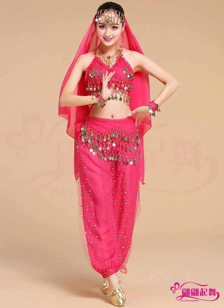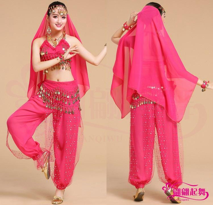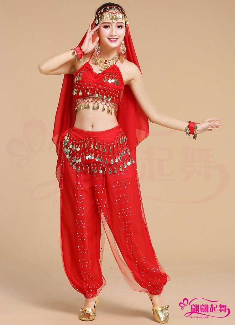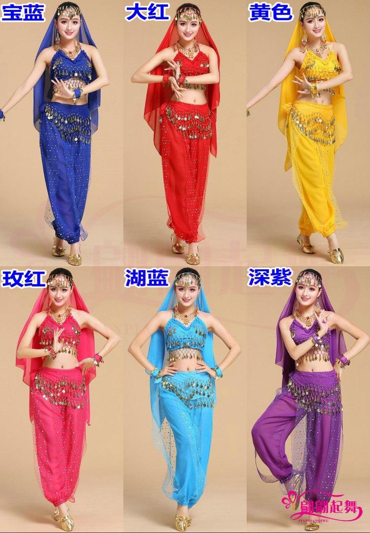 [Nombre]: Traje de danza del vientre traje de actuación indio pantalones coloridos disfraz de práctica