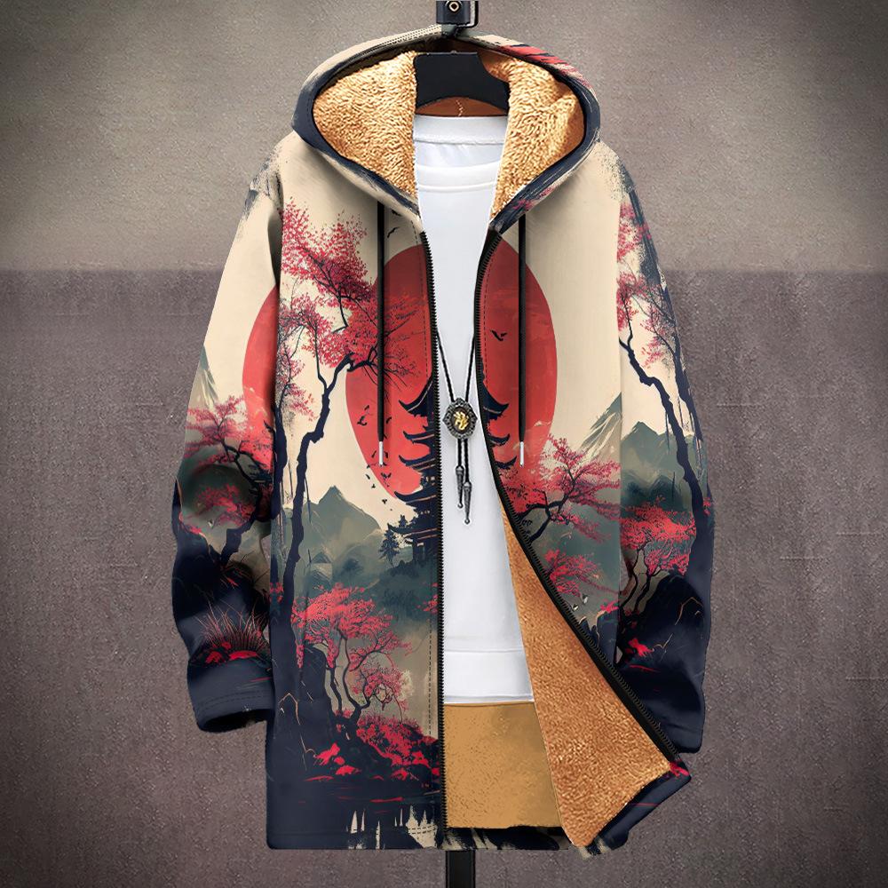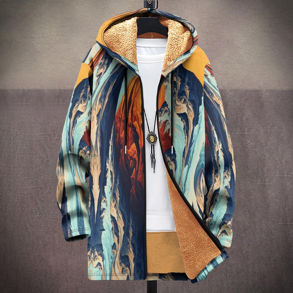Abrigo nuevo transfronterizo patrón multicolor 40 elementos cárdigan con capucha y cremallera engrosado invierno terciopelo chaqueta acolchada de algodón forro amarillo