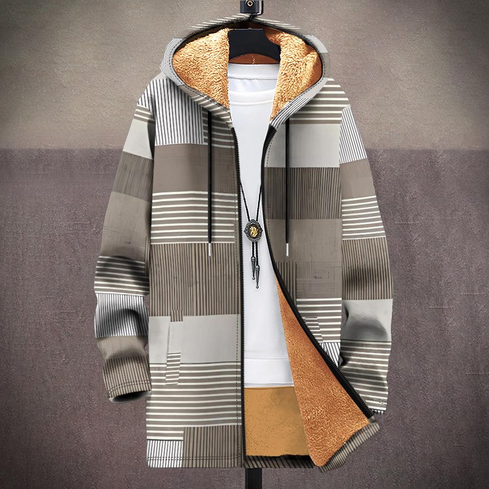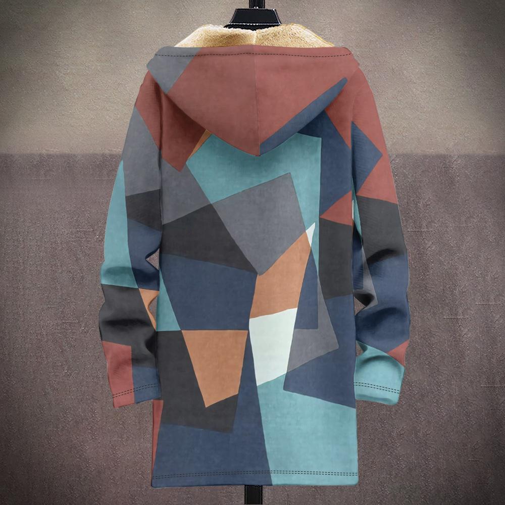 Abrigo nuevo transfronterizo con estampado multicolor, cárdigan con capucha y cremallera de 31 elementos, chaqueta acolchada de algodón y terciopelo de invierno gruesa con forro amarillo