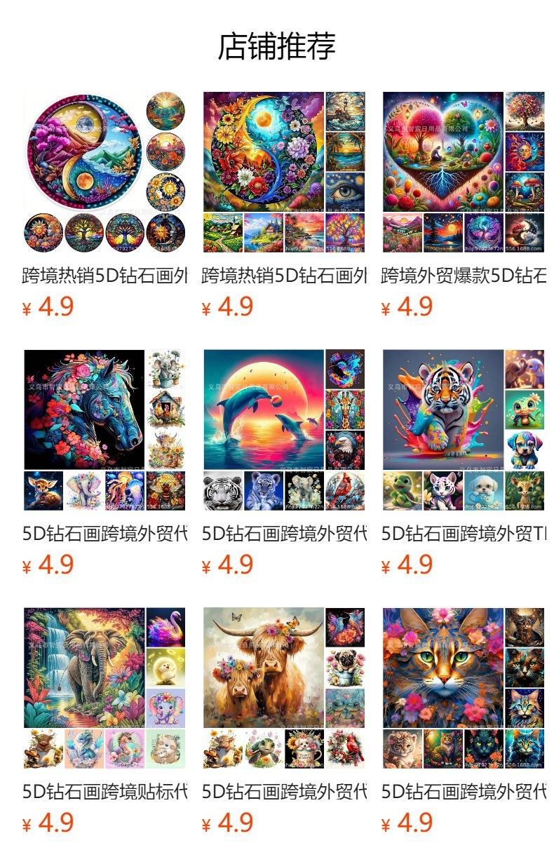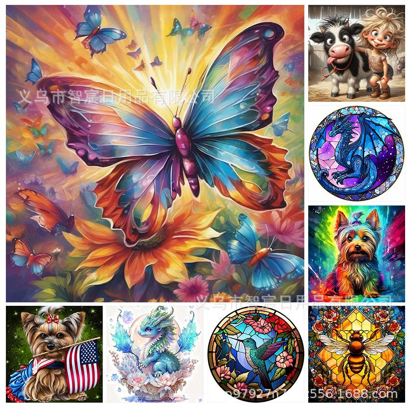 Pintura de diamante 5D, comercio exterior transfronterizo, personalizada, dibujo de animal, bricolaje, pegatina, mosaico, diamante redondo, decoración del hogar, pintura
