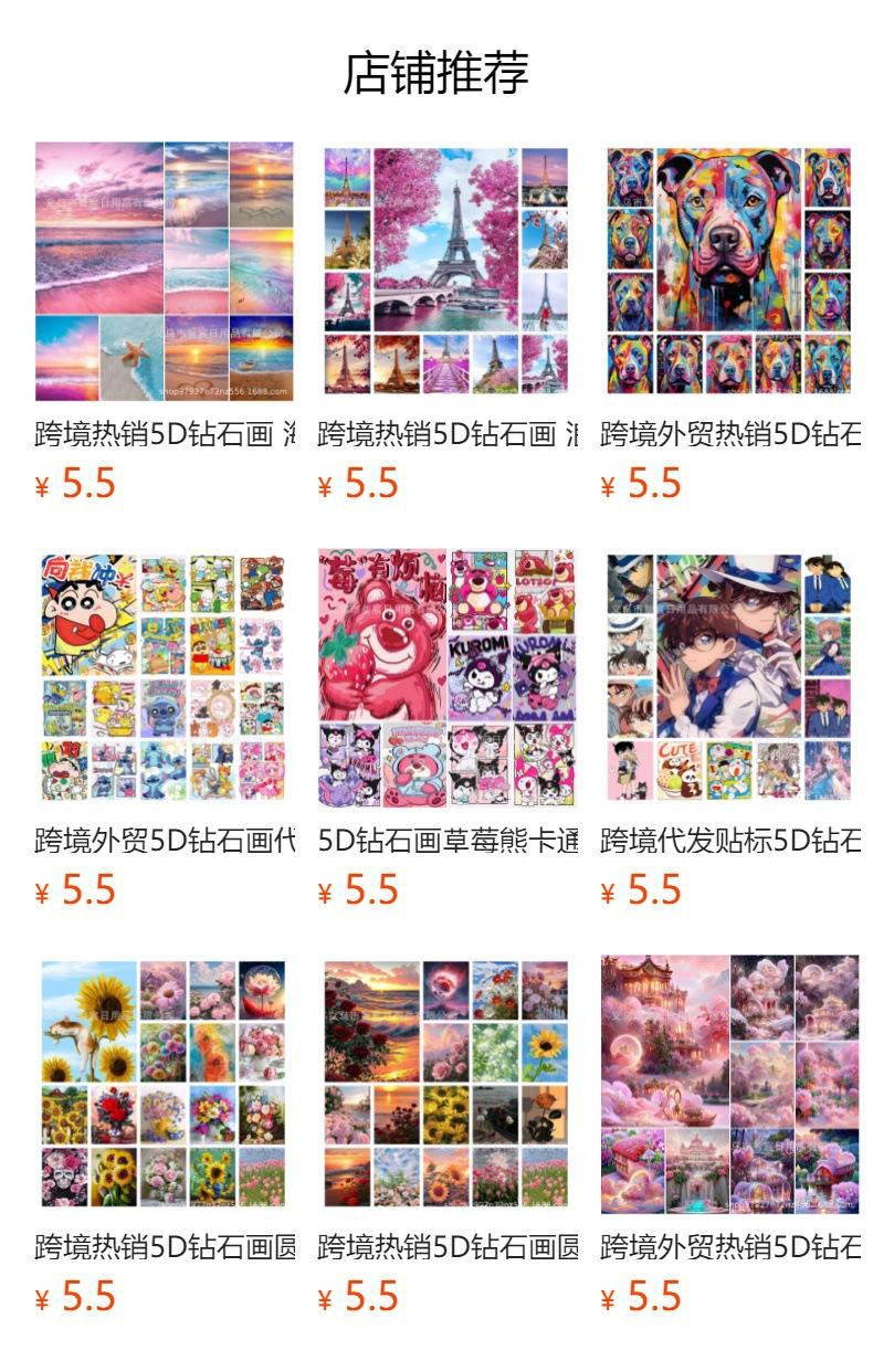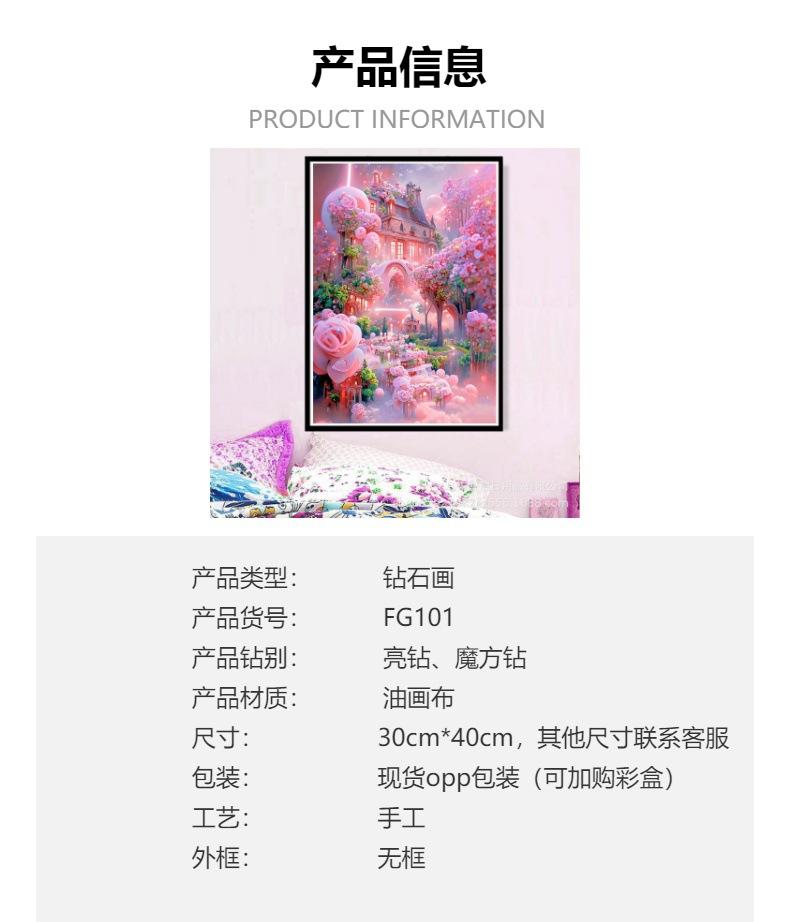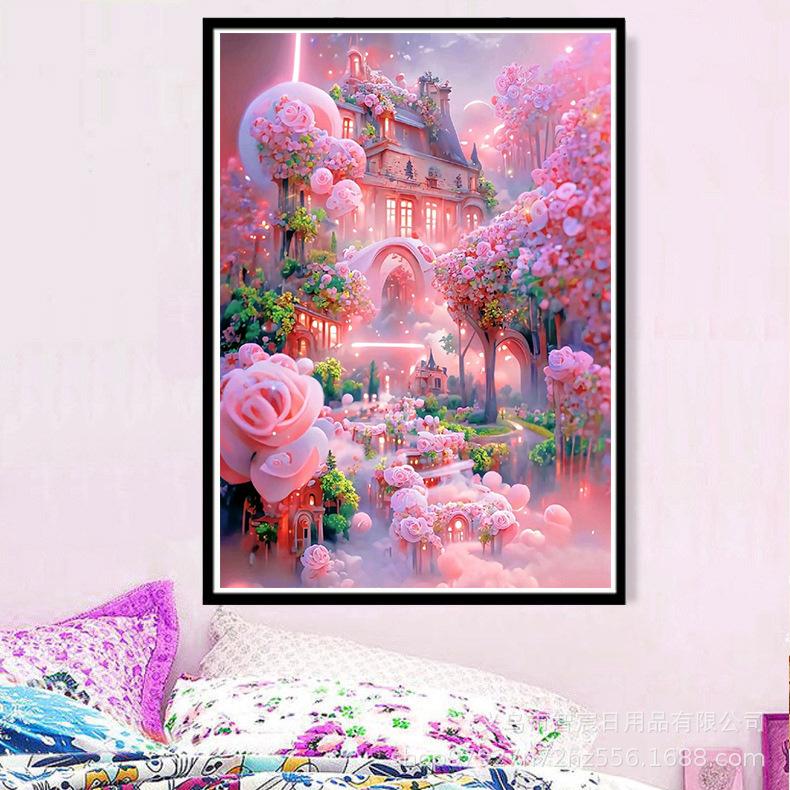 Nuevo paisaje transfronterizo, pintura de diamante artesanal, pintura decorativa de diamante completa, fabricantes al por mayor, animación personalizada, dibujos animados de diamante de cristal