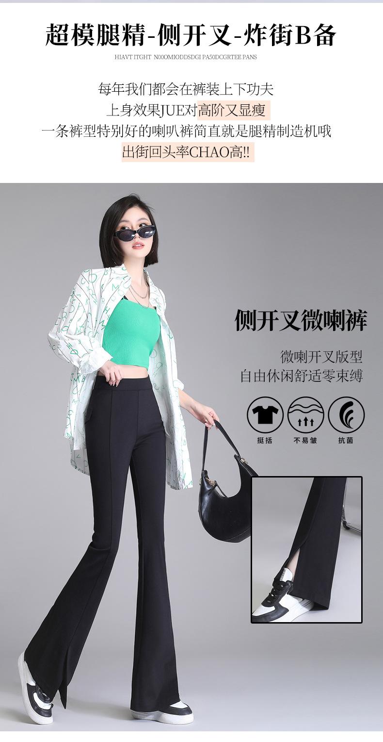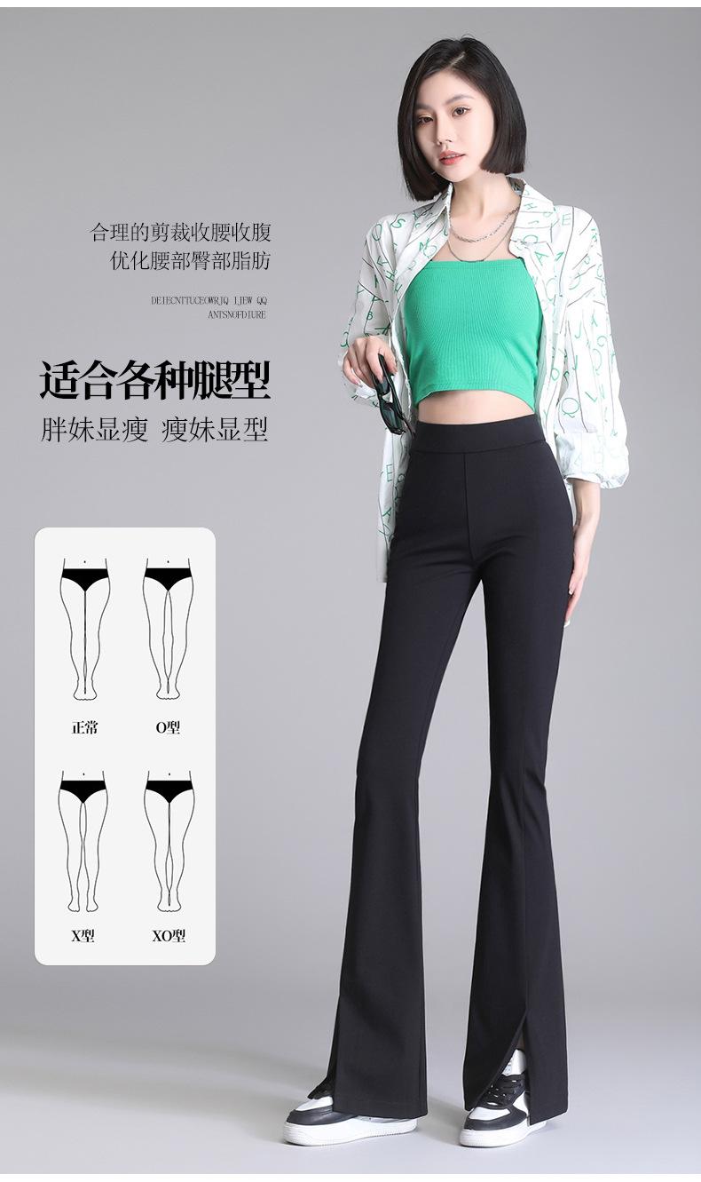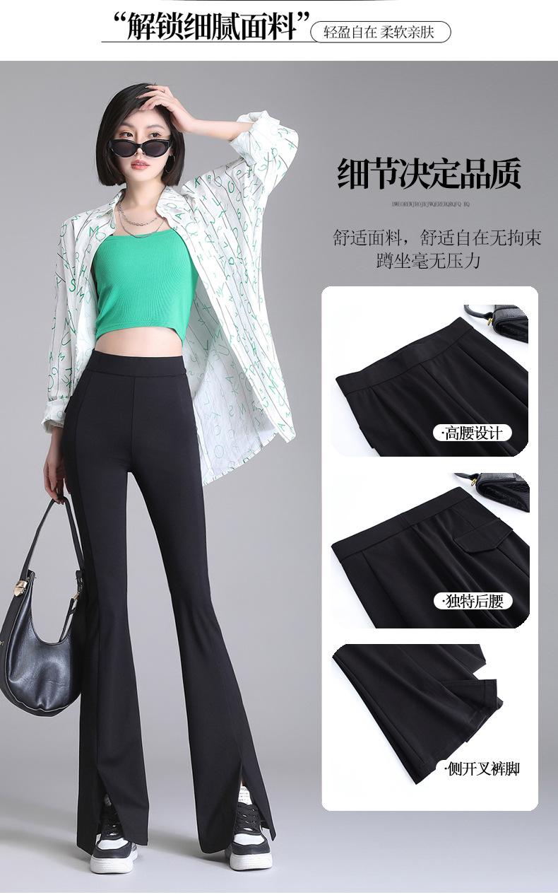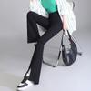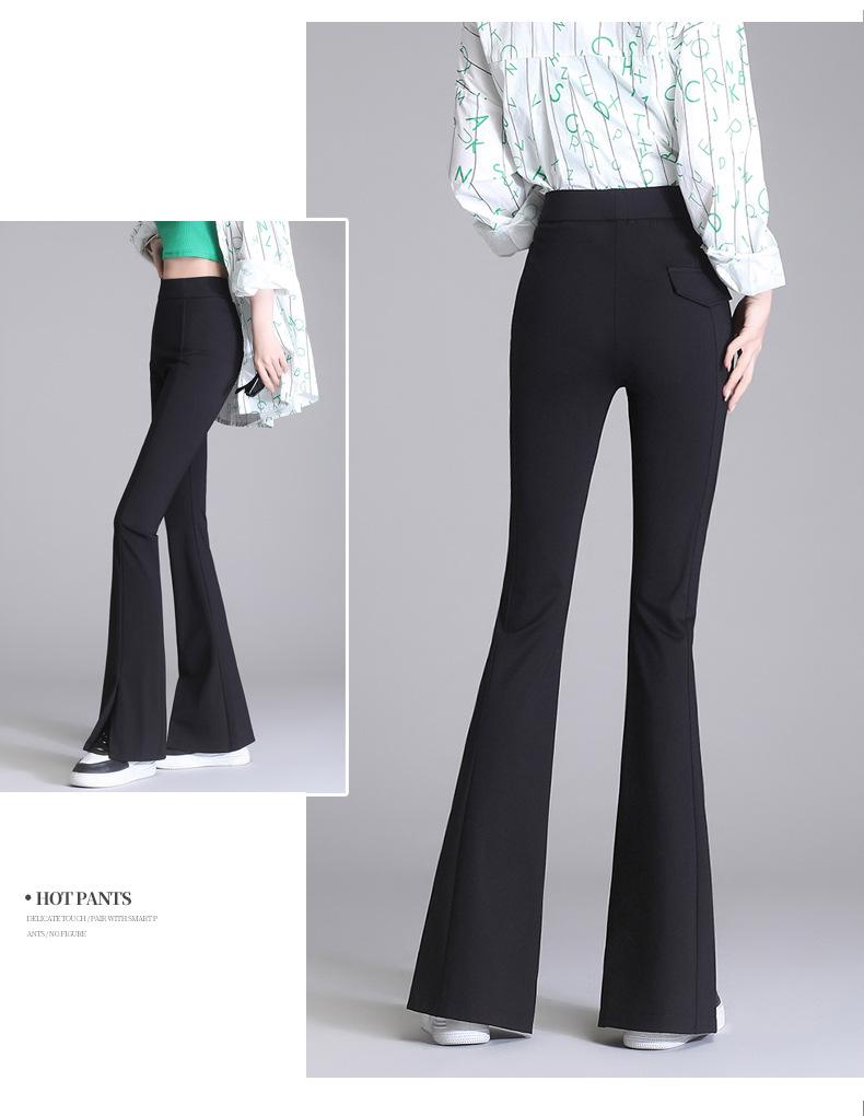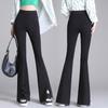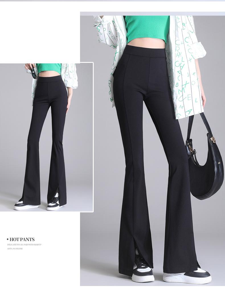 Pantalones acampanados de talle alto europeos y americanos de talla grande para adelgazar piernas 2023 otoño e invierno elásticos negros con abertura pantalones de moda